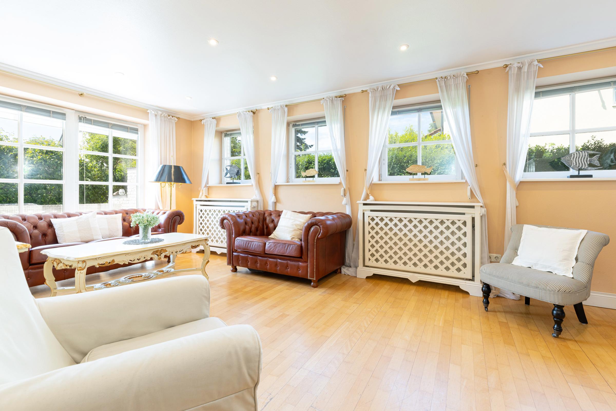 Zwei herrliche Sonnenterrassen mit hochwertigen Gartenmöbeln und der aufwendig gestaltete Garten laden zum verweilen ein. Oder Sie machen es sich im Garten im Strandkorb gemütlich.