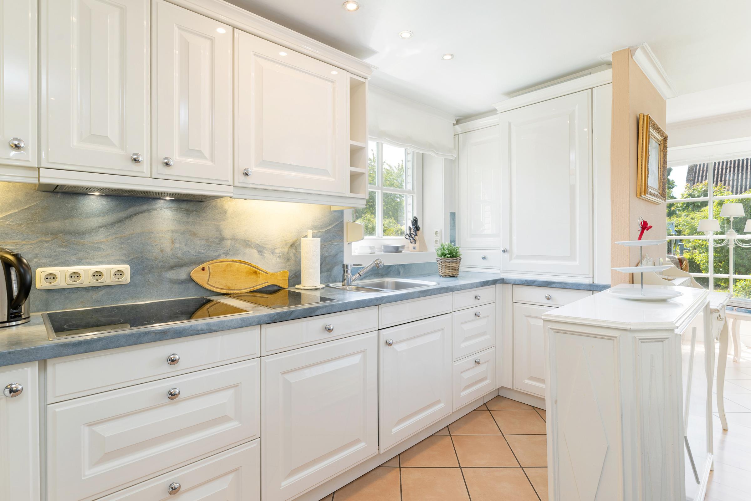 Ausgesuchte Möbel und liebevolle Dekoration bieten ein besonderes Ambiente. Für das Plus an Gemütlichkeit sorgt der Kachelofen im lichtdurchfluteten Wohnzimmer, der in den Essbereich und die voll ausgestattete Wohnküche übergeht.