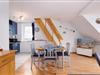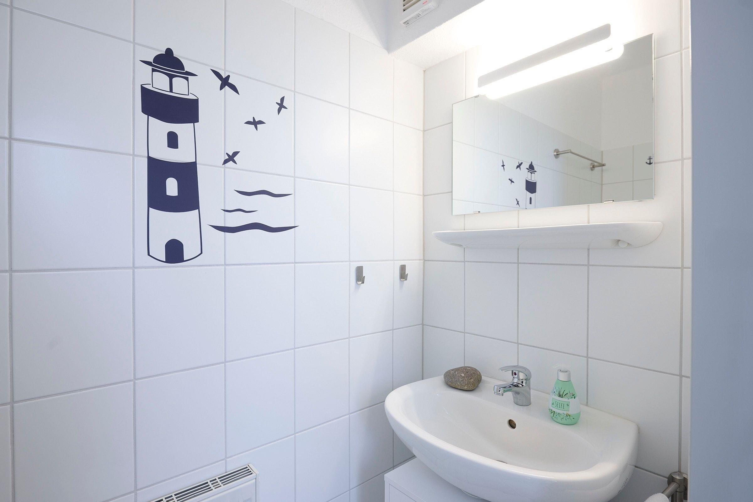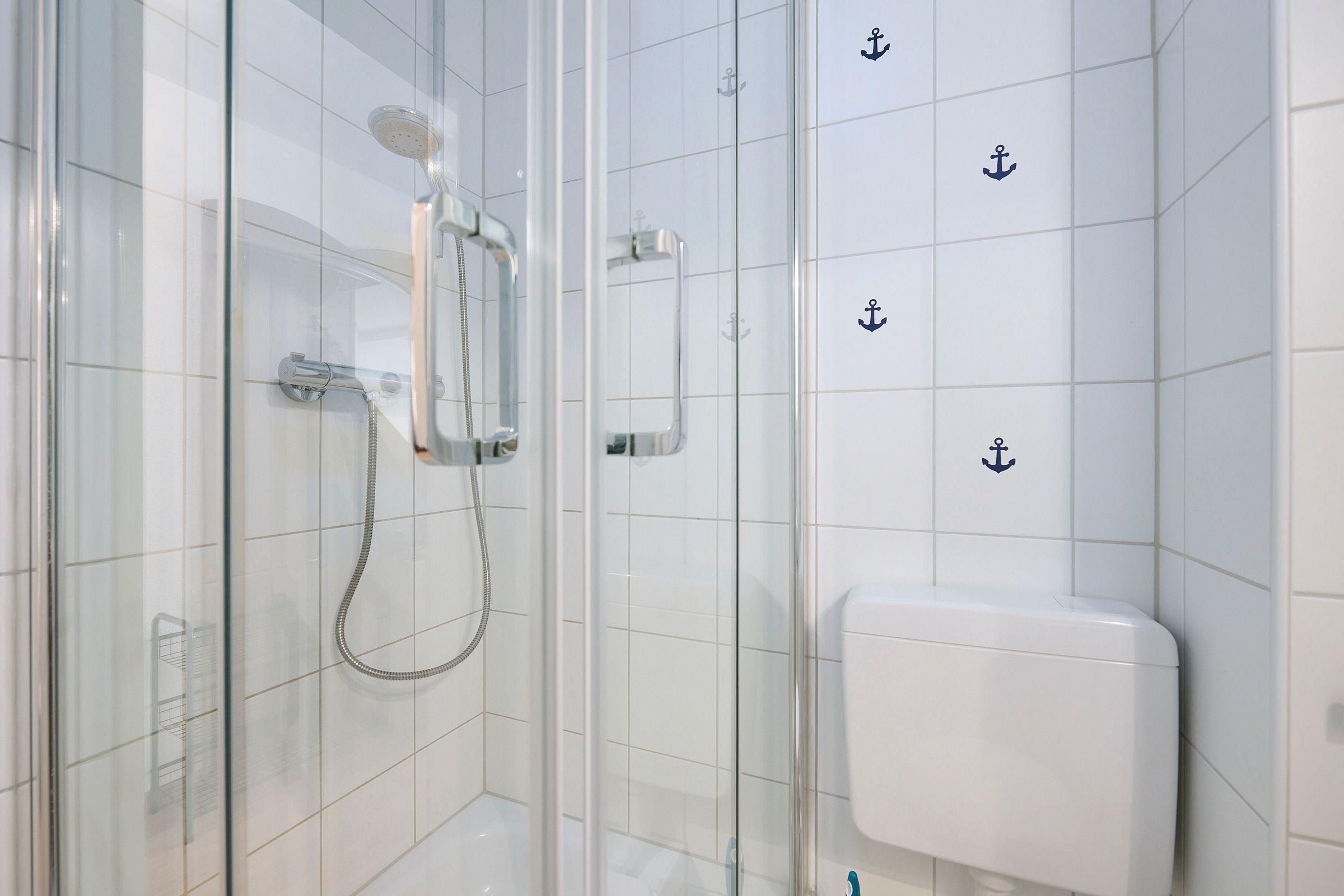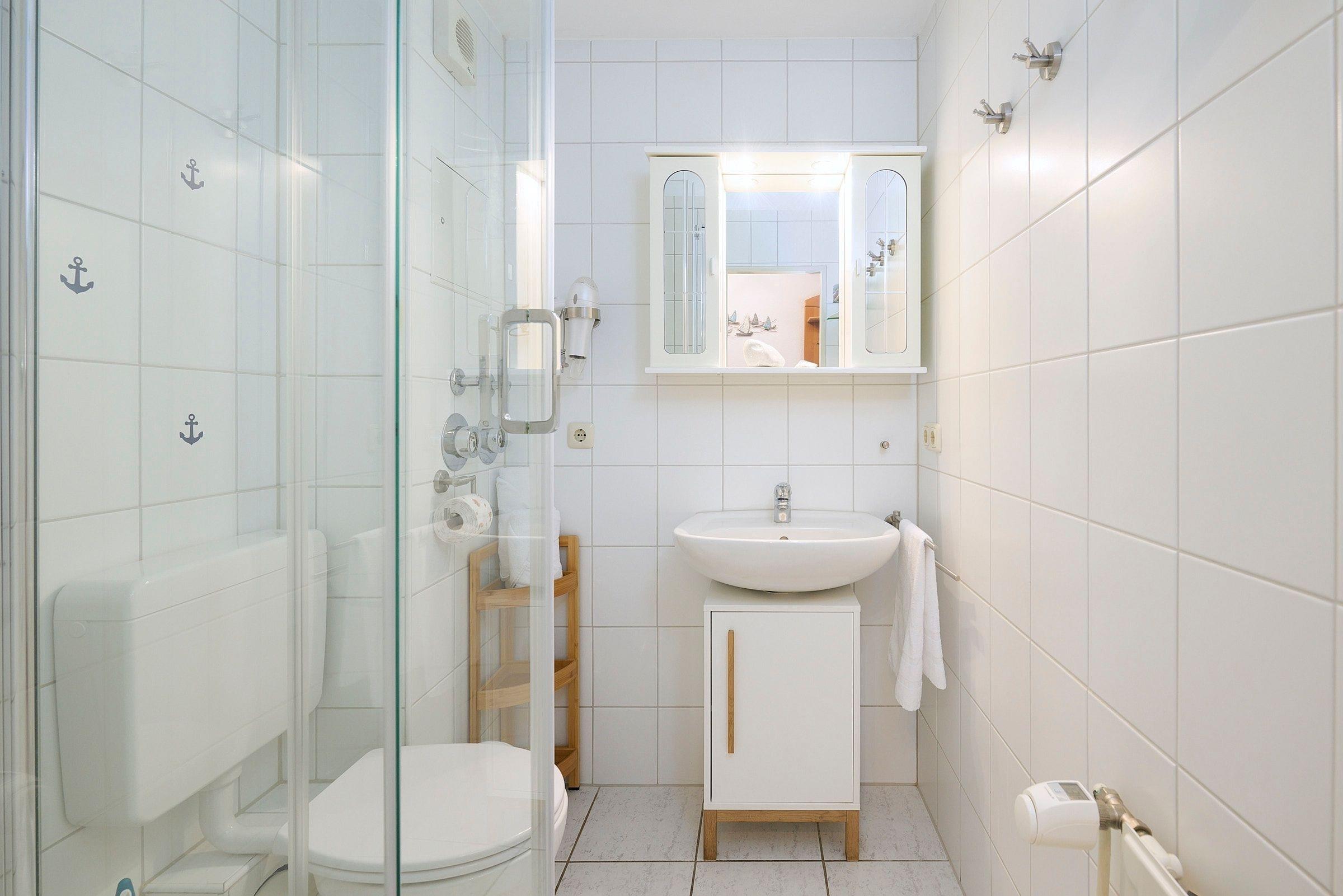 Der Wohnbereich mit gemütlicher Schlafcouch, offener Einbauküche, Duschbad mit WC und ein Balkon mit Blick auf die Salzwiesen, laden zu einem entspannten Urlaubserlebnis ein. Das Schlafzimmer befindet sich im Dachgeschoss und ist mit einem großen Kleiderschrank, zwei Nachttischen und einem Doppelbett (180x200 cm) eingerichtet. Hier befindet sich auch ein 2. WC. Ein kostenloser WLAN-Anschluss ist inklusive.