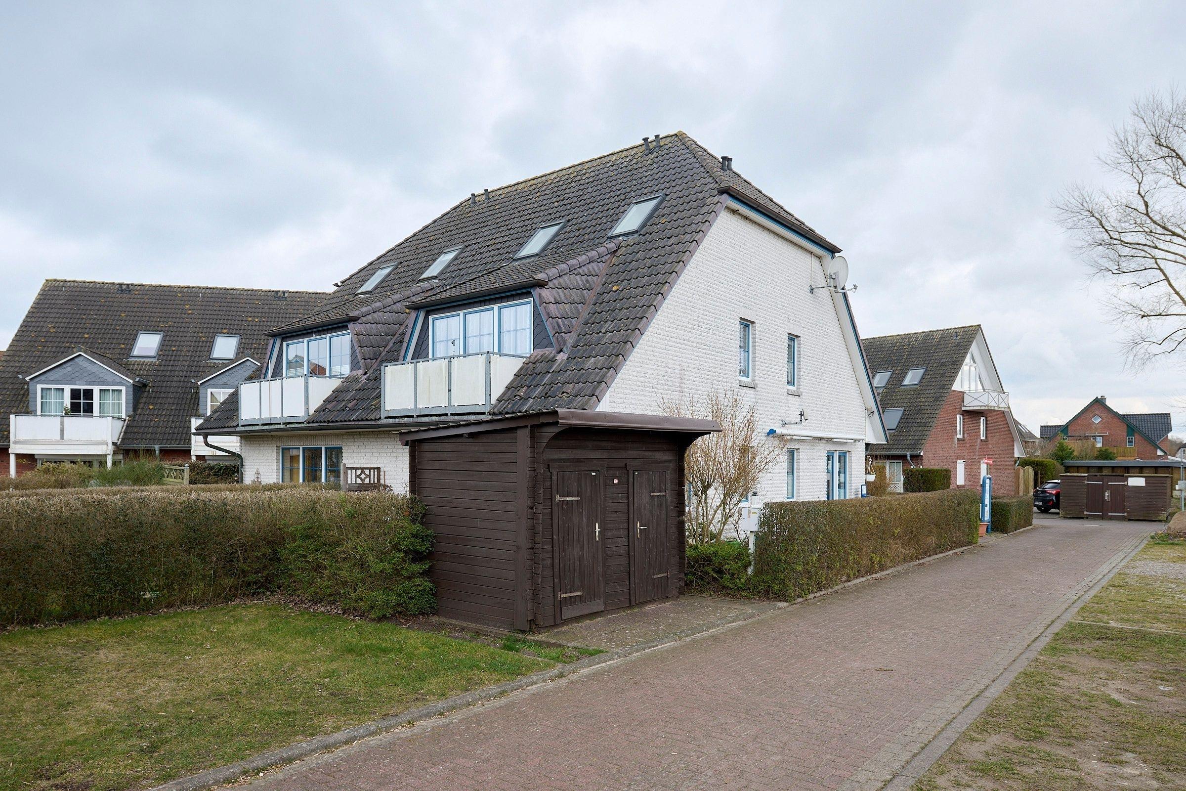Ein fest zugewiesener Pkw-Stellplatz direkt am Haus und ein eigener abschließbarer Fahrradschuppen runden das Angebot ab.