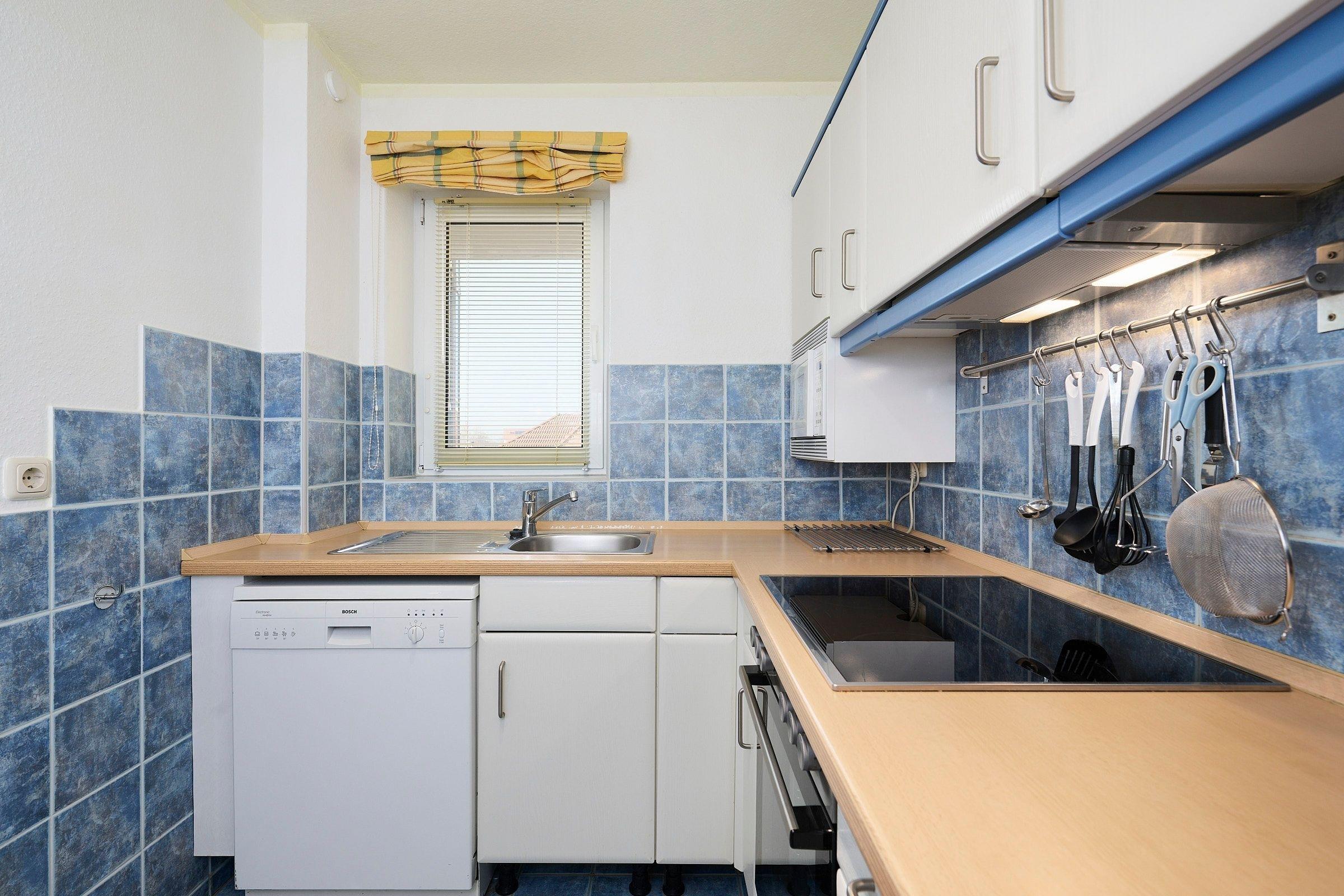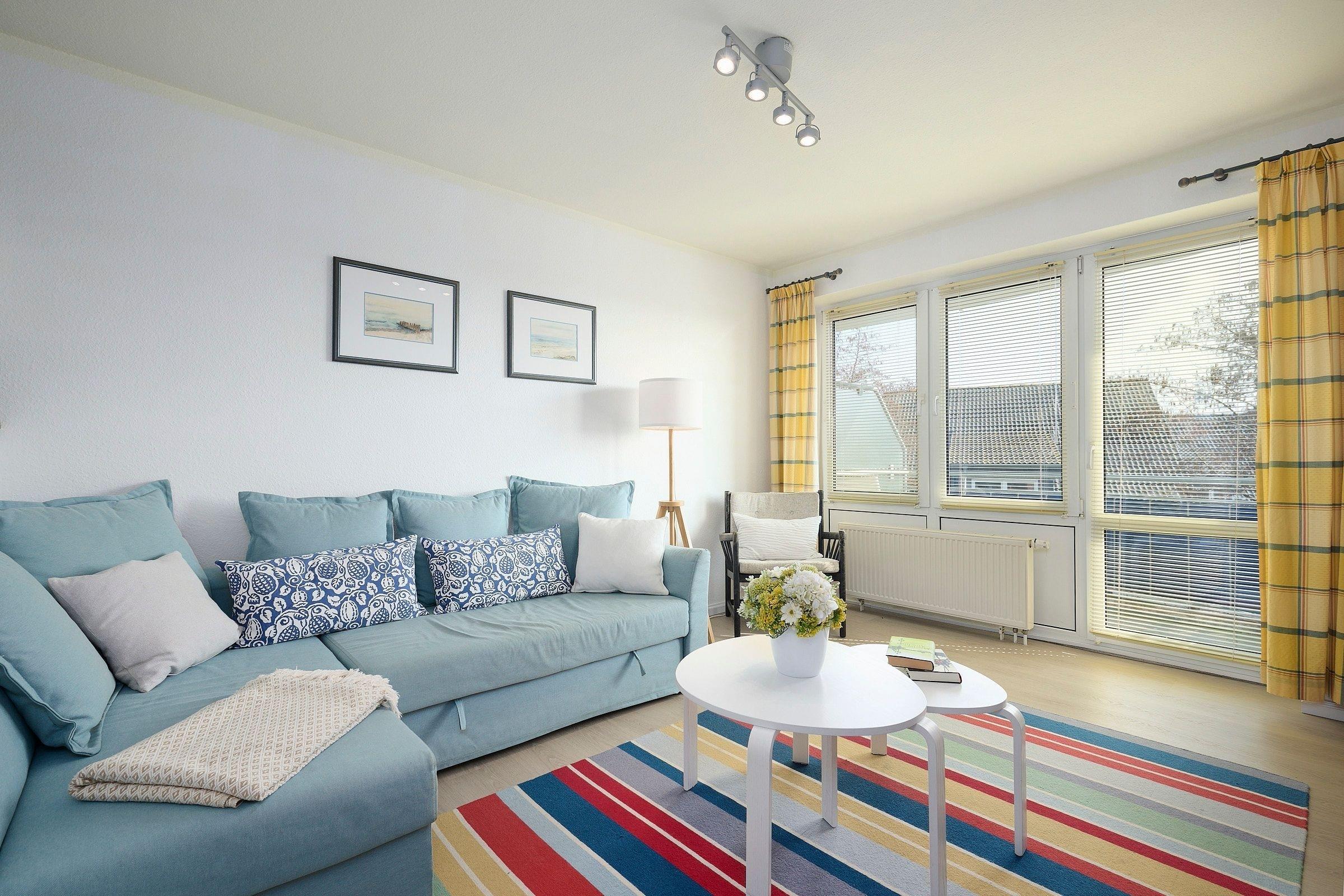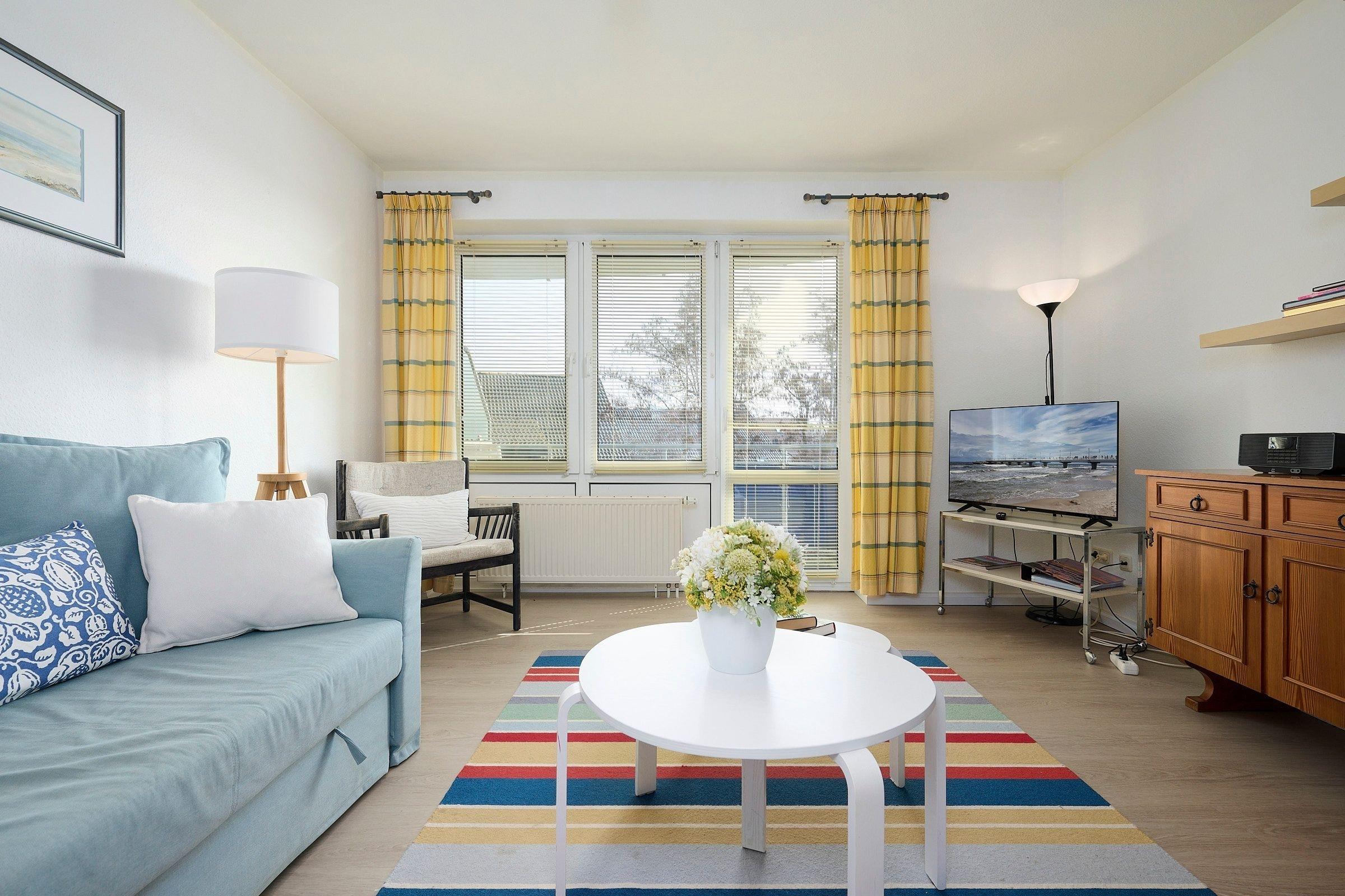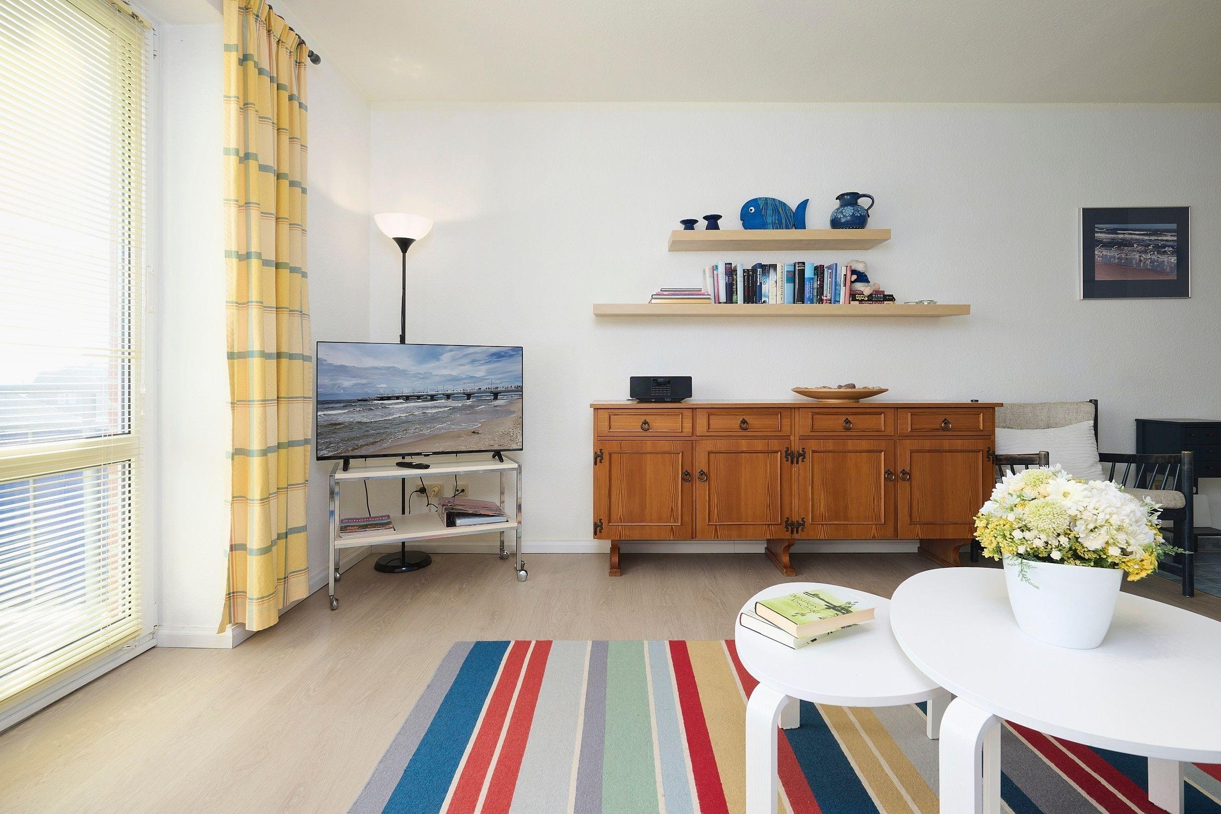 Die 2-Zimmer-Ferienwohnung Sonnenblick befindet sich im 1. OG in direkter Strandlage und ist über eine Treppe oder Fahrstuhl bequem zu erreichen. Mit Platz für 2 Personen verteilen sich auf 48 m² Wohn-/Essbereich, ein separates Schlafzimmer, eine Einbauküche und ein Duschbad.