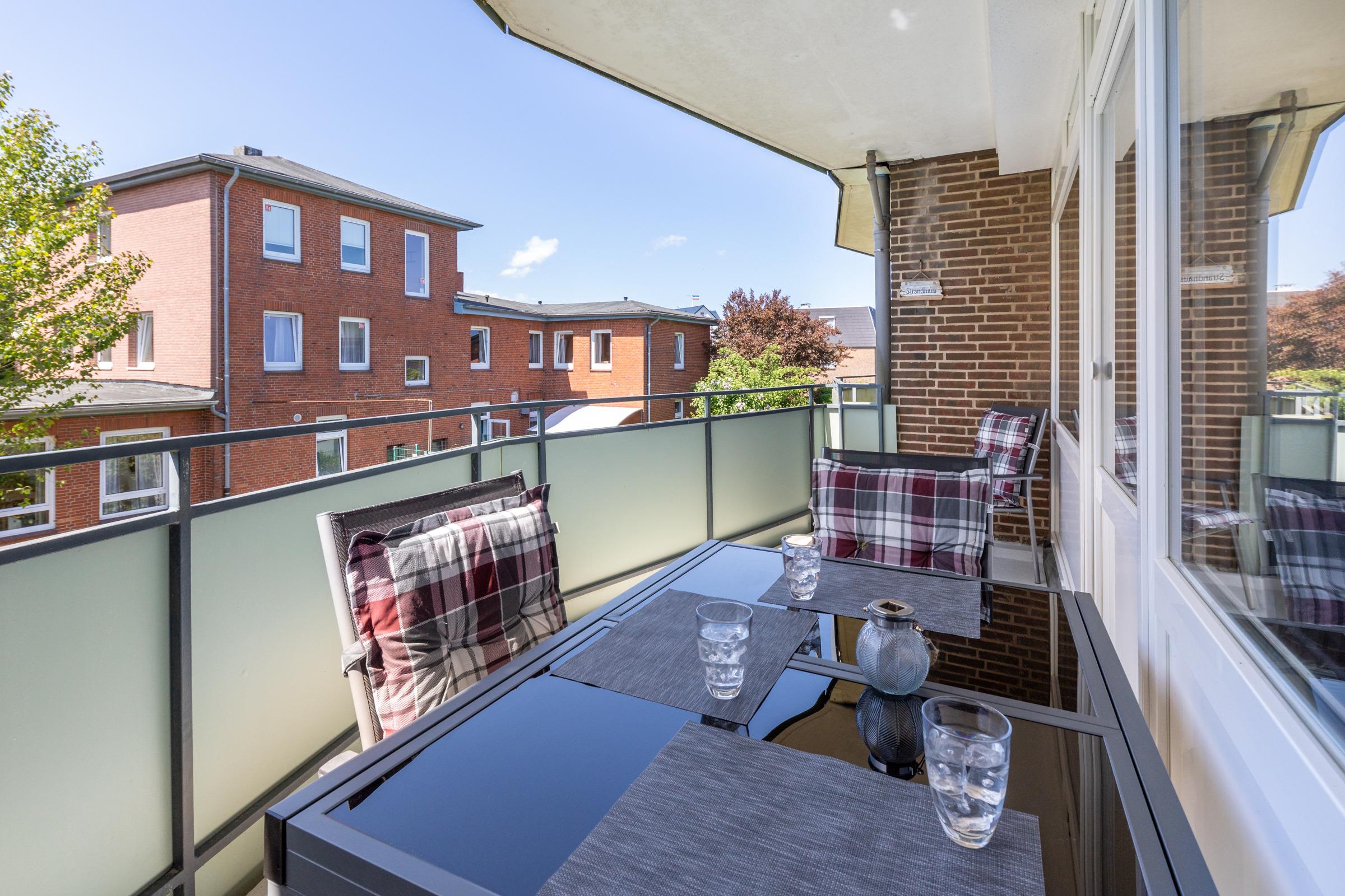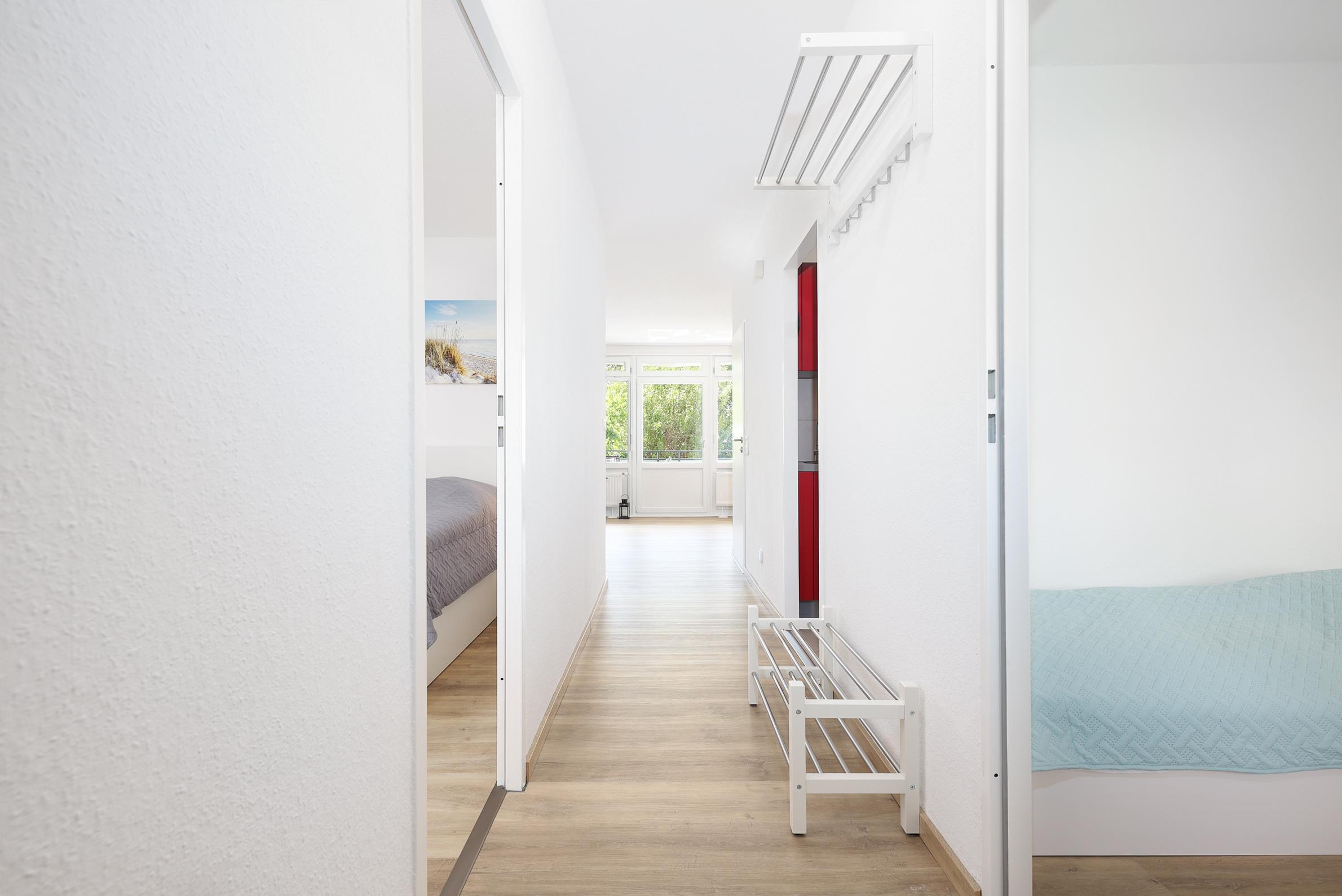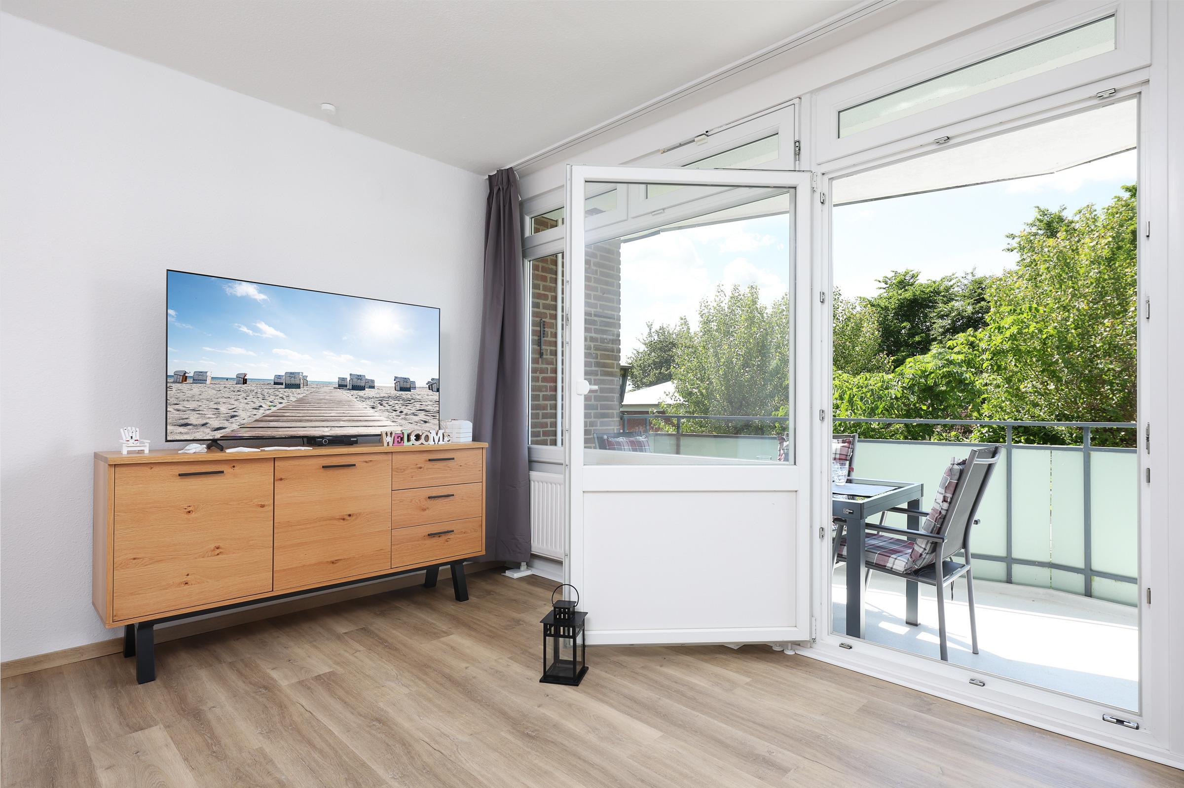 Die Ferienwohnung Koje 33 befindet sich im 1. Obergeschoss und bietet mit einer Größe von 50 m² ausreichend Platz für bis zu 4 Personen. Sie verfügt über einen Balkon mit seitlichen Meerblick zur Ostsee.