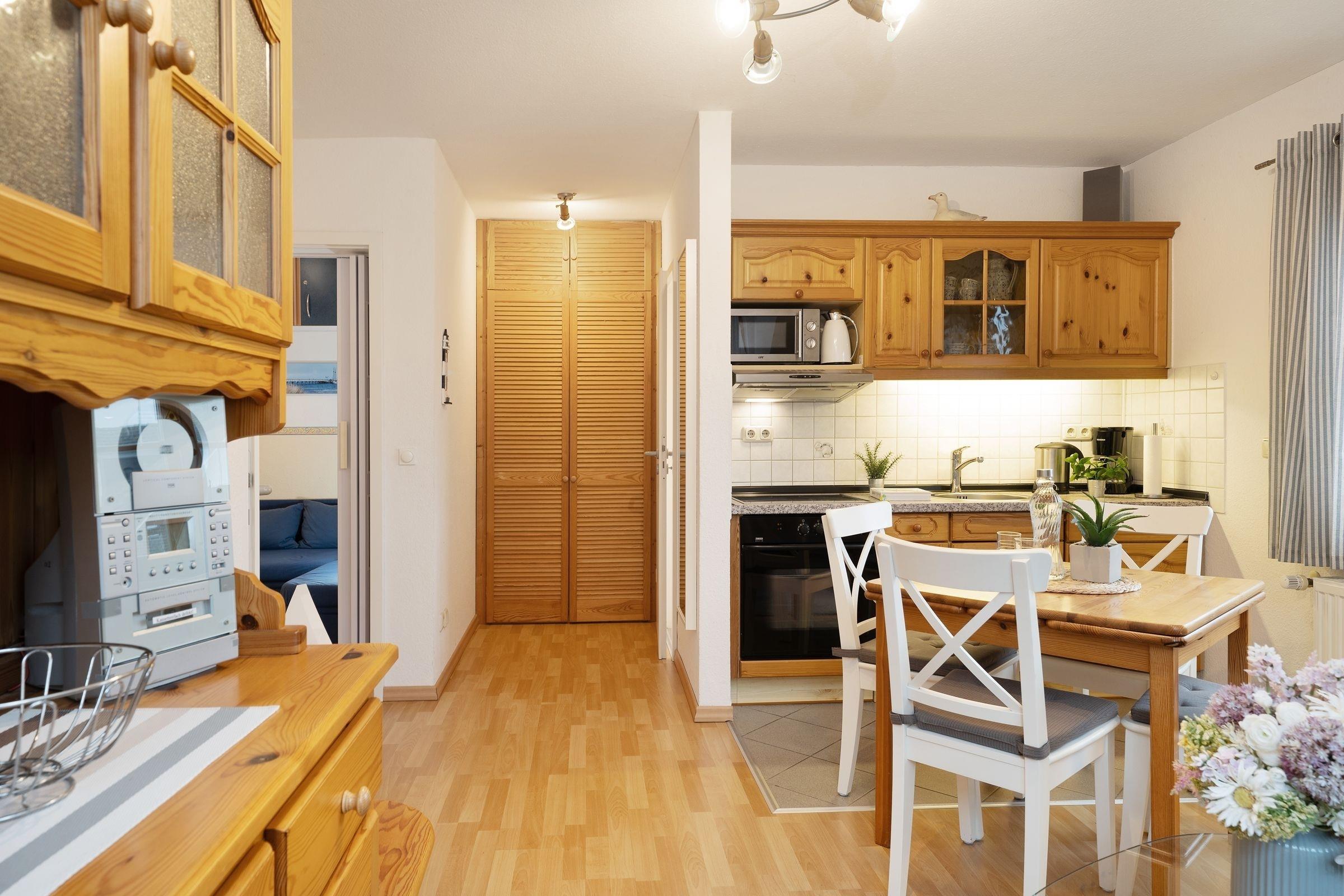 Willkommen in der Ferienwohnung Sommerbrise, einem charmanten Rückzugsort, der ideal für Familien oder Paare ist. Diese gemütliche Unterkunft befindet sich nur 100 Meter vom Meer entfernt – ein wahres Paradies für Sonnenanbeter und Wassersportler! Das helle Wohnzimmer ist der perfekte Ort, um gemeinsame Abende zu verbringen. Hier können Sie auf der Couch vor dem TV entspannen. Ein weiterer Pluspunkt dieser Wohnung ist der kleine, möblierte Balkon, auf dem Sie die frische Meeresbrise und die entspannende Atmosphäre genießen können. Der offene Küchenbereich ist modern ausgestattet und lädt zum gemeinsamen Kochen ein. In den beiden gemütlich eingerichteten Schlafzimmern, eins mit Doppelbett (2x 80x200 cm) und eins mit Schlafsofa für 1 Person (ca. 150x200 cm), abgeteilt vom Wohnzimmer durch eine Schiebetür und ausgestattet mit zusätzlichem TV-Gerät, können Sie wunderbar zur Ruhe kommen. Das Duschbad ist modern und hat Tageslicht.