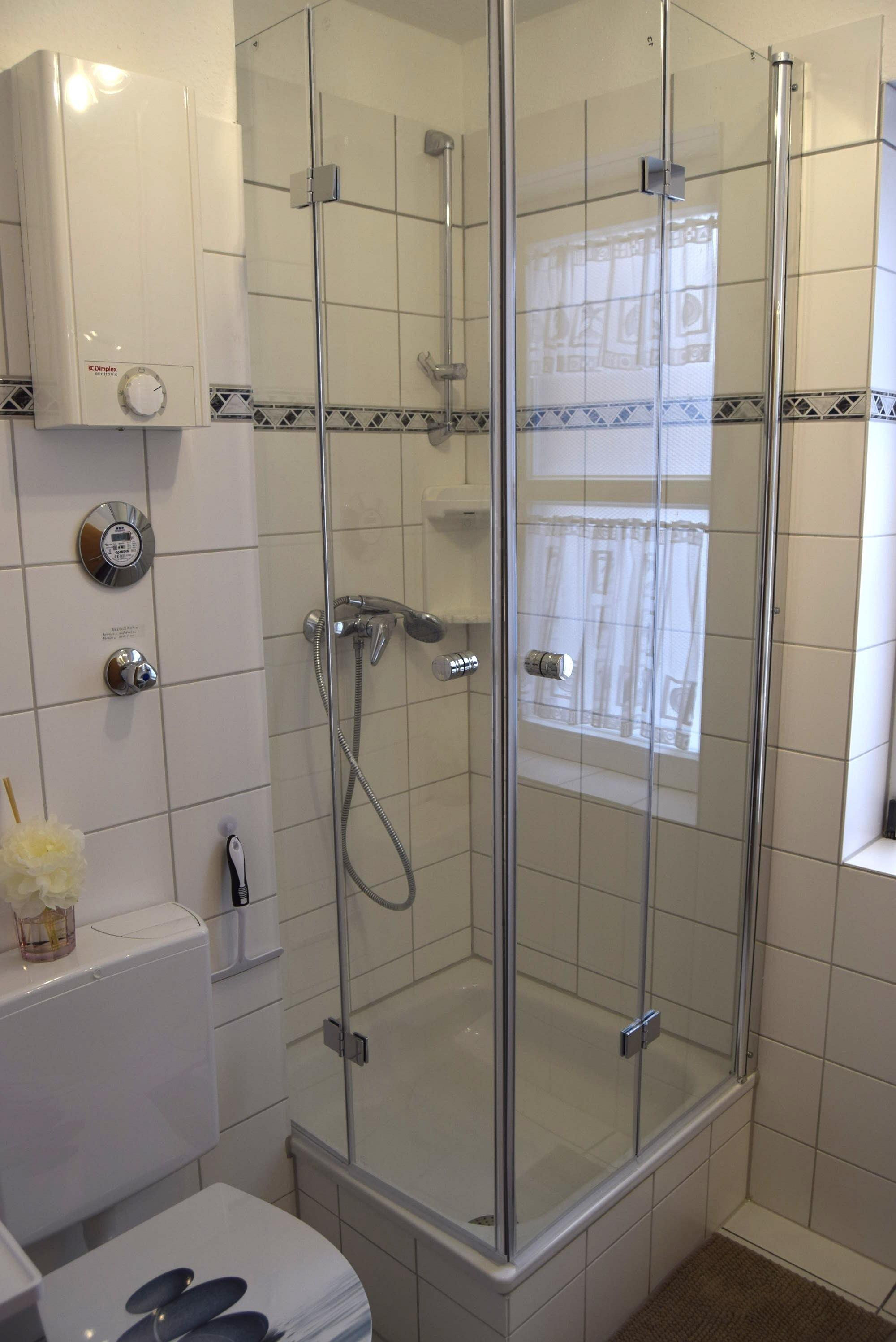 Das moderne Duschbad mit WC ist zudem mit einem Föhn ausgestattet.