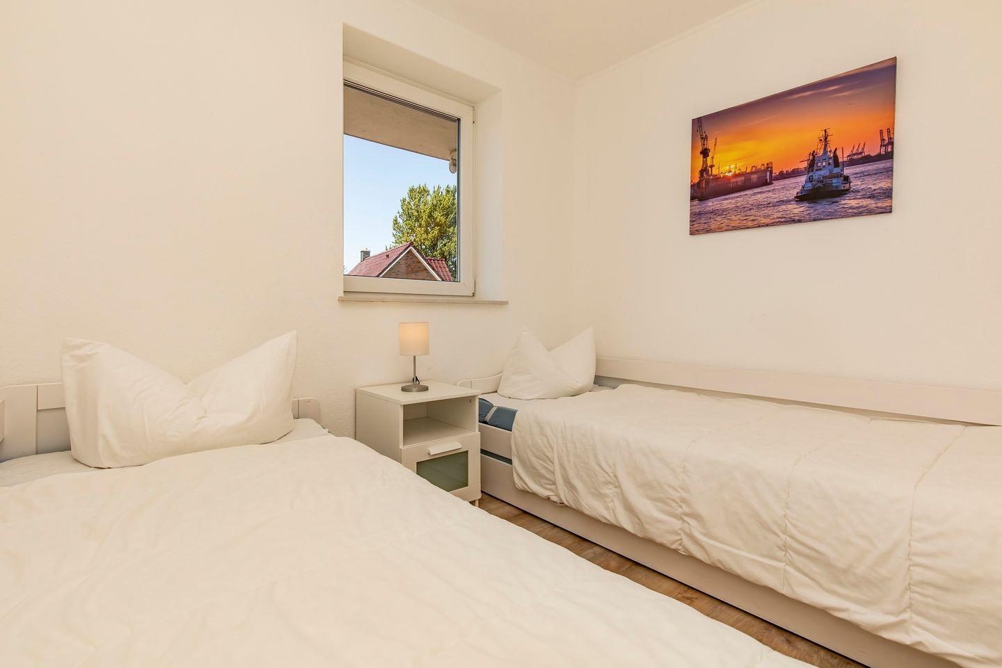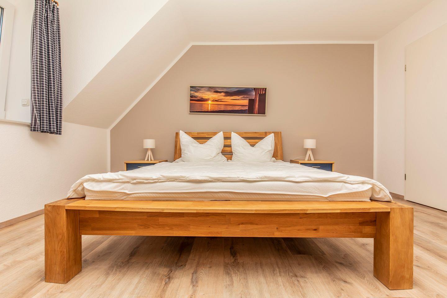 Die Wohnung bietet insgesamt drei gemütliche Schlafzimmer, die alle mit hochwertigen Betten und allergikerfreundlichen Kopfkissen und Bettdecken ausgestattet sind. In den ersten beiden Schlafzimmern erwartet Sie ein komfortables Doppelbett und ein Satelliten-TV für erholsame Abende. Das dritte Schlafzimmer verfügt über zwei Einzelbetten und einen geräumigen Kleiderschrank. Für Familien mit kleinen Kindern steht ein Kinderreisebett zur Verfügung.