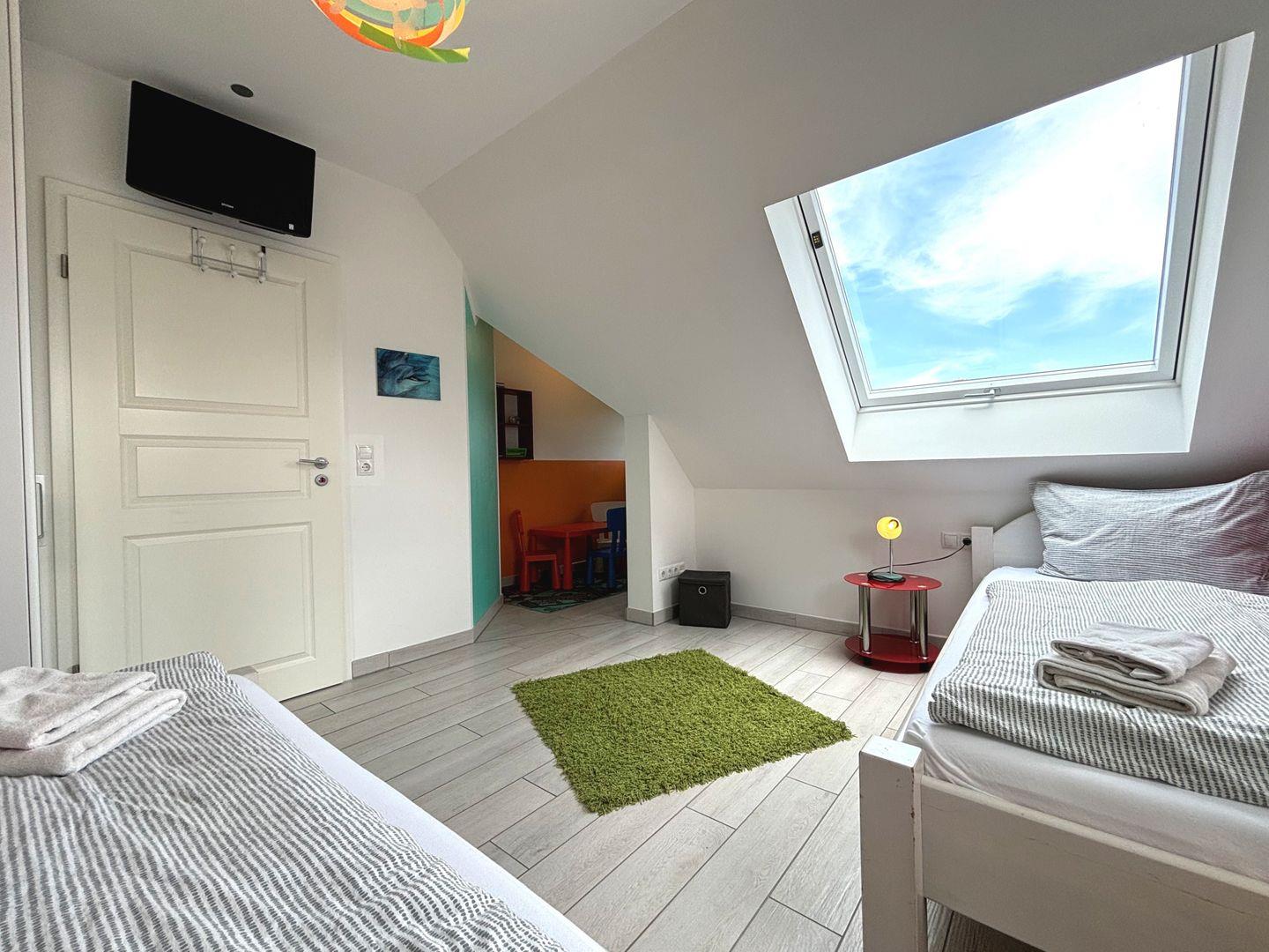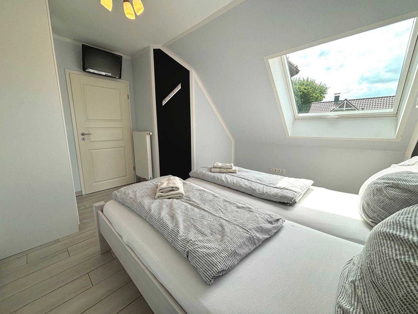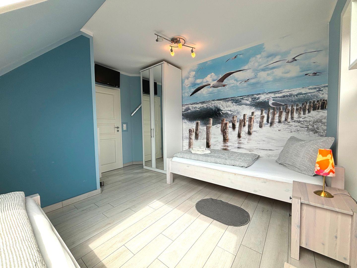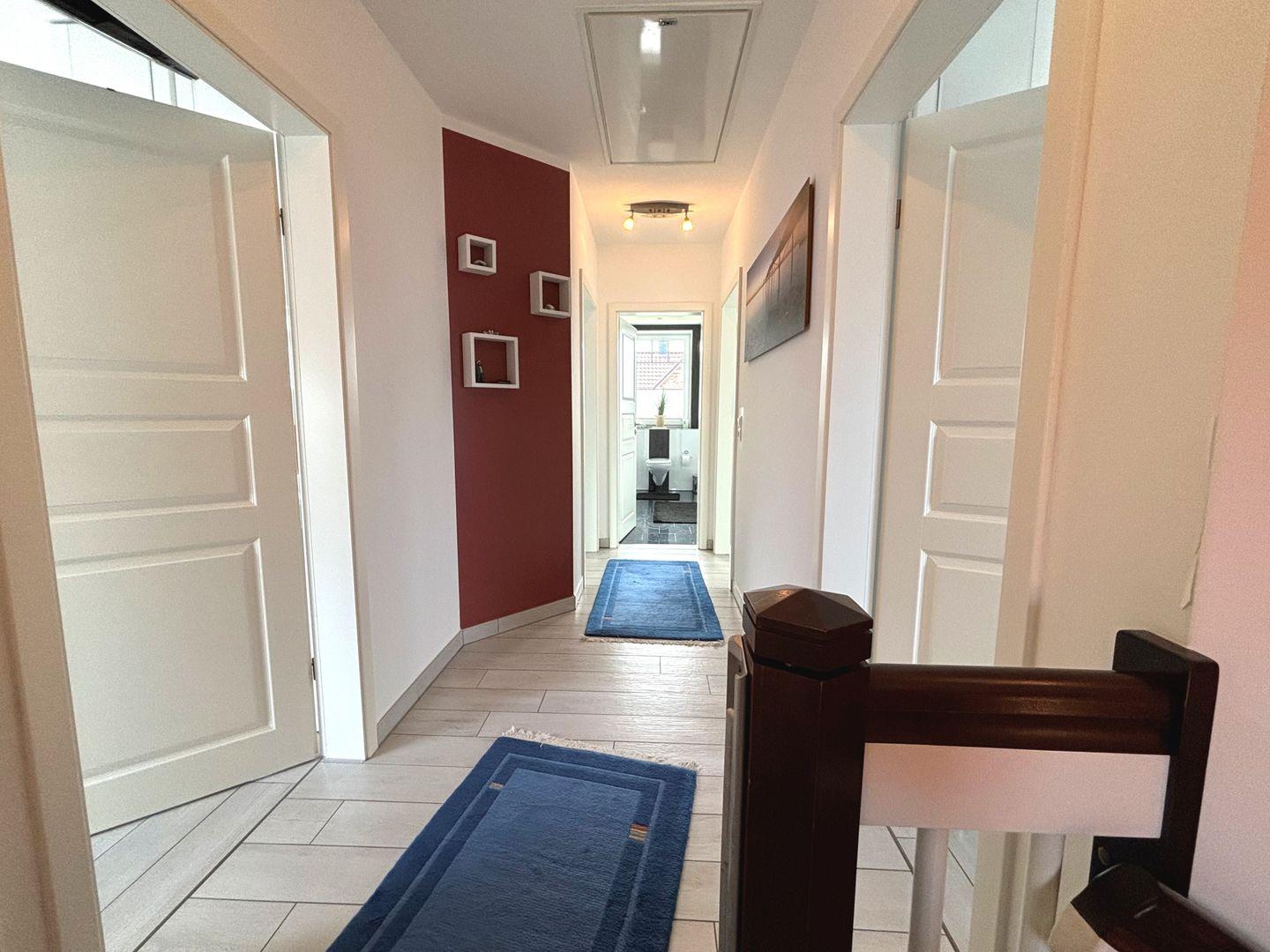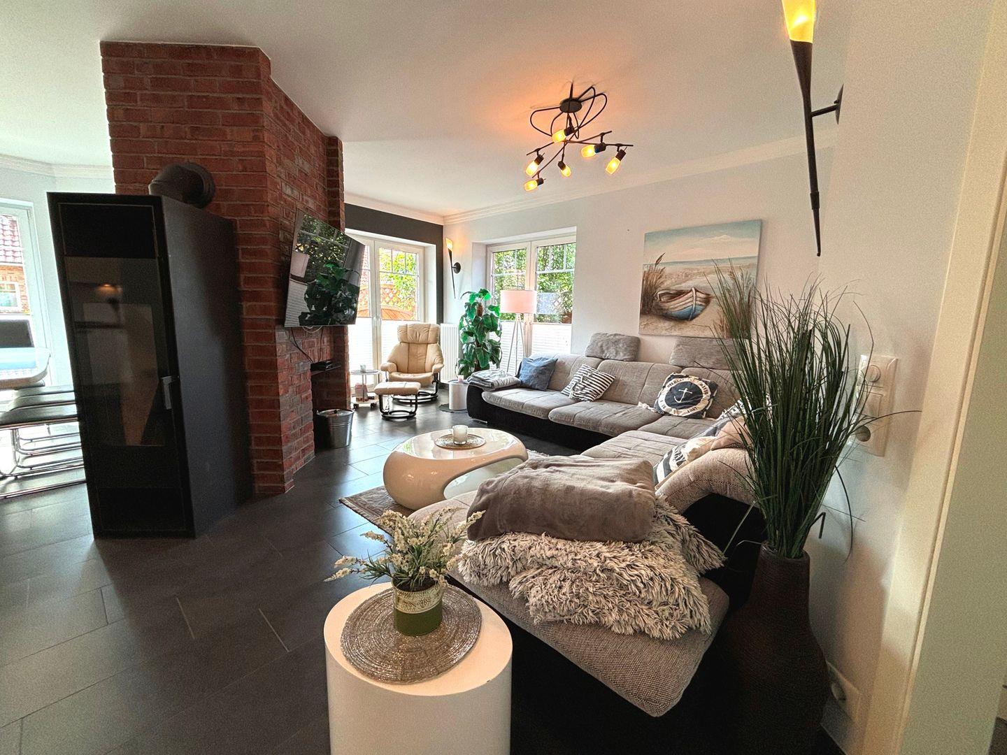 Willkommen in unserem charmanten Ferienhaus mit zwei Etagen, fünf Schlafzimmern, zwei Badezimmern, einer voll ausgestatteten Küche und einem gemütlichen Wohnzimmer mit Kamin. Genießen Sie die möblierte, blickgeschützte Terrasse, den großen Garten mit Sandkiste und Schaukel, sowie die Sauna für entspannte Urlaubstage.