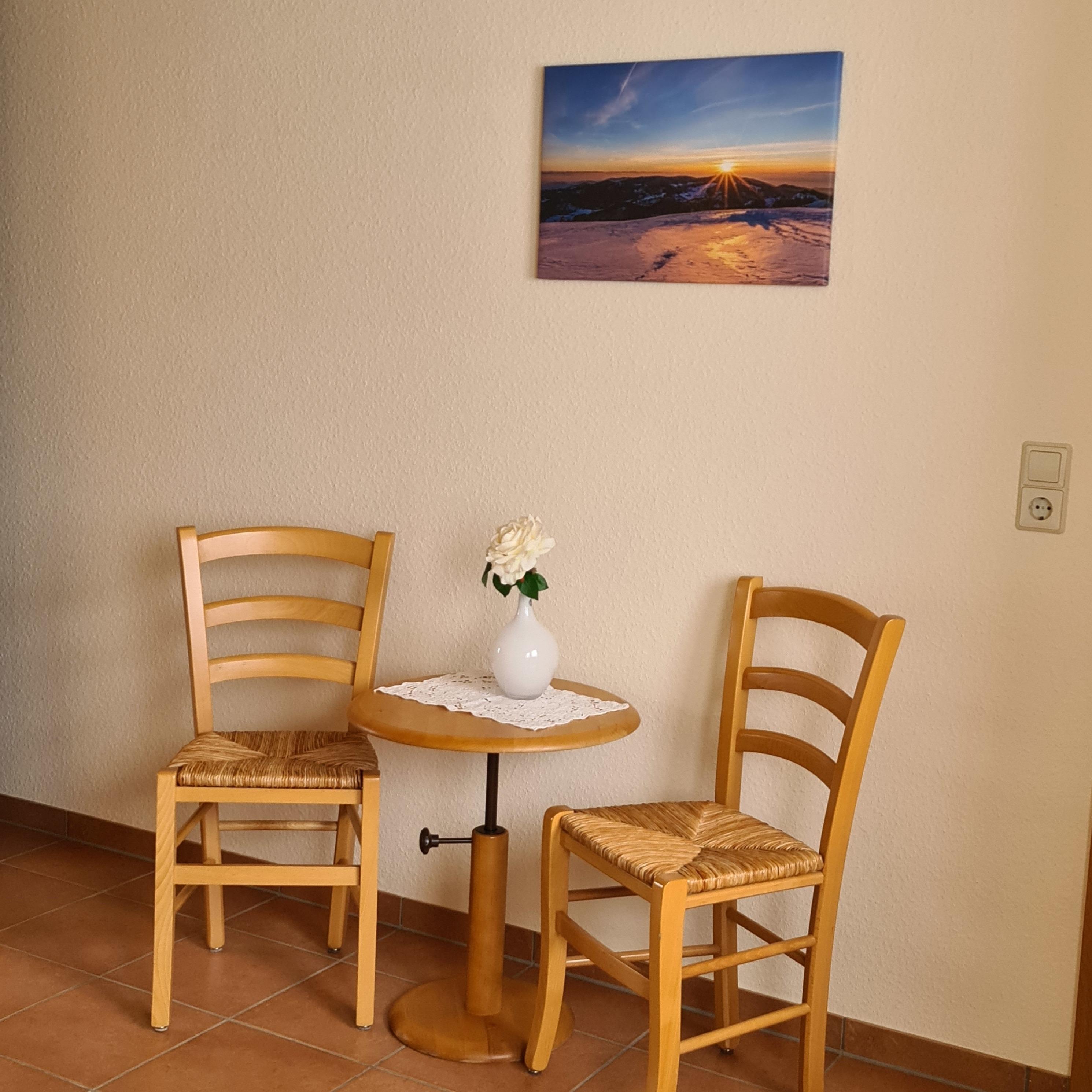 In unserem Haus erwartet Sie eine gemütliche Ferienwohnung im Parterre mit separatem Eingang und Fußbodenheizung für zwei Personen. Ein Wohnzimmer mit Schlafcouch, sowie abgetrennter Kochecke, ein Schlafzimmer und ein Duschbad.