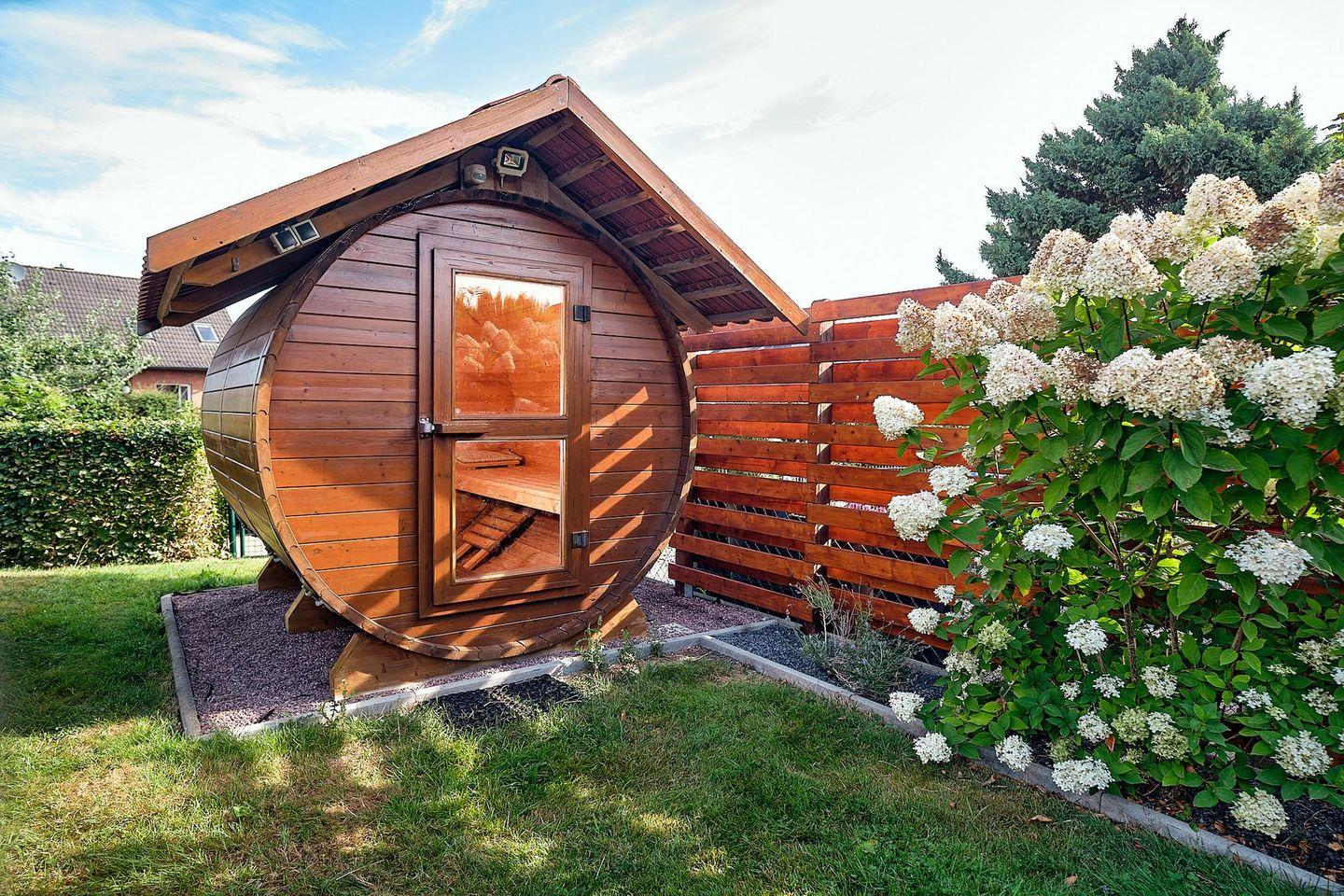 Das auf einem ca. 450 m² großen, eingezäunten Grundstück gelegene, ebenerdige Domizil verfügt über 1 kombiniertes Wohn- / Esszimmer mit Kaminofen, 1 offene Küche, 2 Schlafräume, 1 Duschbad und 1 wunderschönen Garten mit Fasssauna.