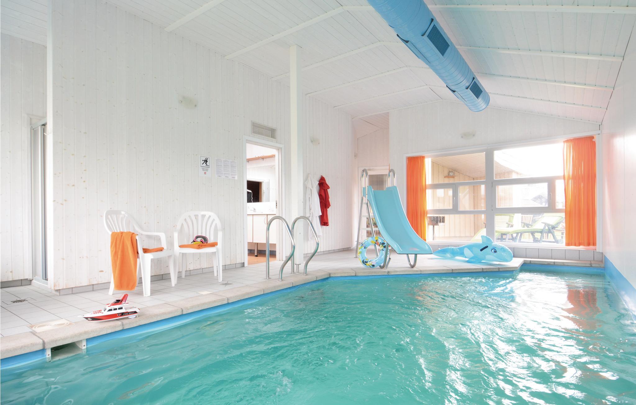 I har jeres egen wellness-oase i huset. Ud over swimmingpoolen med børnebassin, vandrutsjebane og det store spabad er her et saunalandskab (multifunktionssauna). Derfor kan I hver dag prøve en ny type sauna eller det ægte dampbad. Her er der badesjov og afslapning i al slags vejr - uanset om solen skinner eller ej. Især familier betragter dette lille hyggelige sted ved Østersøen som deres "sommerfristed". Poolområdet blev totalrenoveret i 2020.