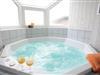 - Nogle billeder er eksempler. Gulvbelægningen, farven på huset og indretningen kan variere. I alle husene er whirlpool og sauna ens.