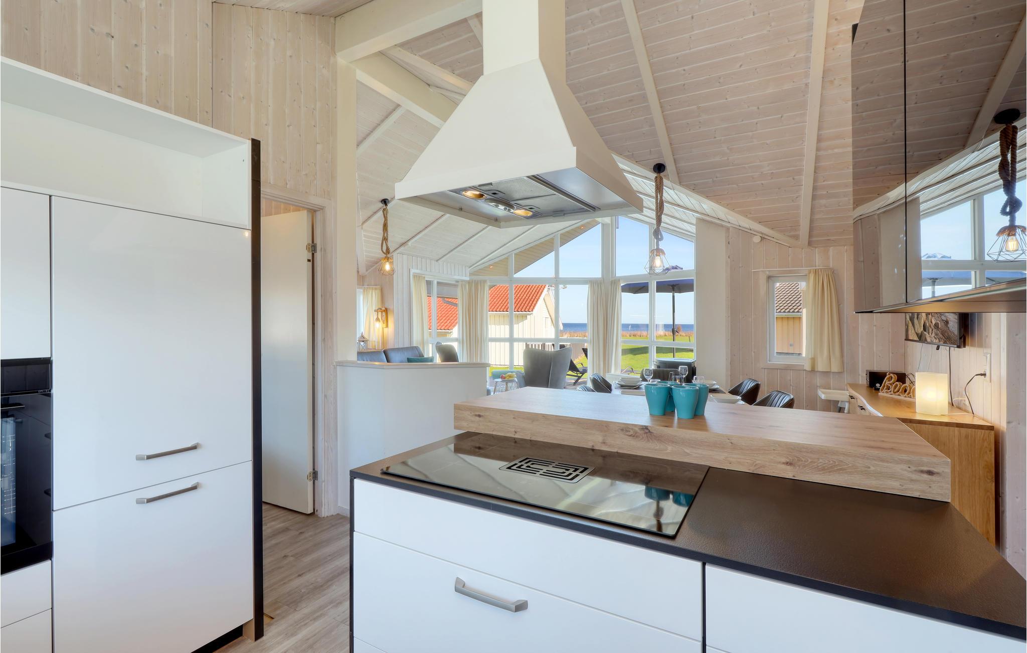 GLAS, LUFT, LYS: Især familier betragter dette lille hyggelige sted ved Østersøen som deres "sommerfristed". Schönhagen har en ca. 1000 meter lang strand, som mod nord grænser op til stranden i Kappeln. På stranden overvåges gæsternes sikkerhed af livreddere. Mod syd afgrænses stranden af en stejl skrænt. På stranden, direkte bag den lille promenade ligger 60 komfortable feriehuse. Hvis I leder efter noget helt særligt til ferien, så er Schönhagen et ideelt rejsemål. Komfort og smagfuld indretning i naturskønne og rolige omgivelser er forenet i denne hyggelige Østersøbadeby mellem Kappeln og Eckernförde. Anlægget med skandinaviske feriehuse med egen sauna og spabad ligger lige ved stranden og er et paradis på alle årstider. Dette hus ligger forskudt i anden række, så I har delvis havudsigt fra terrassen.