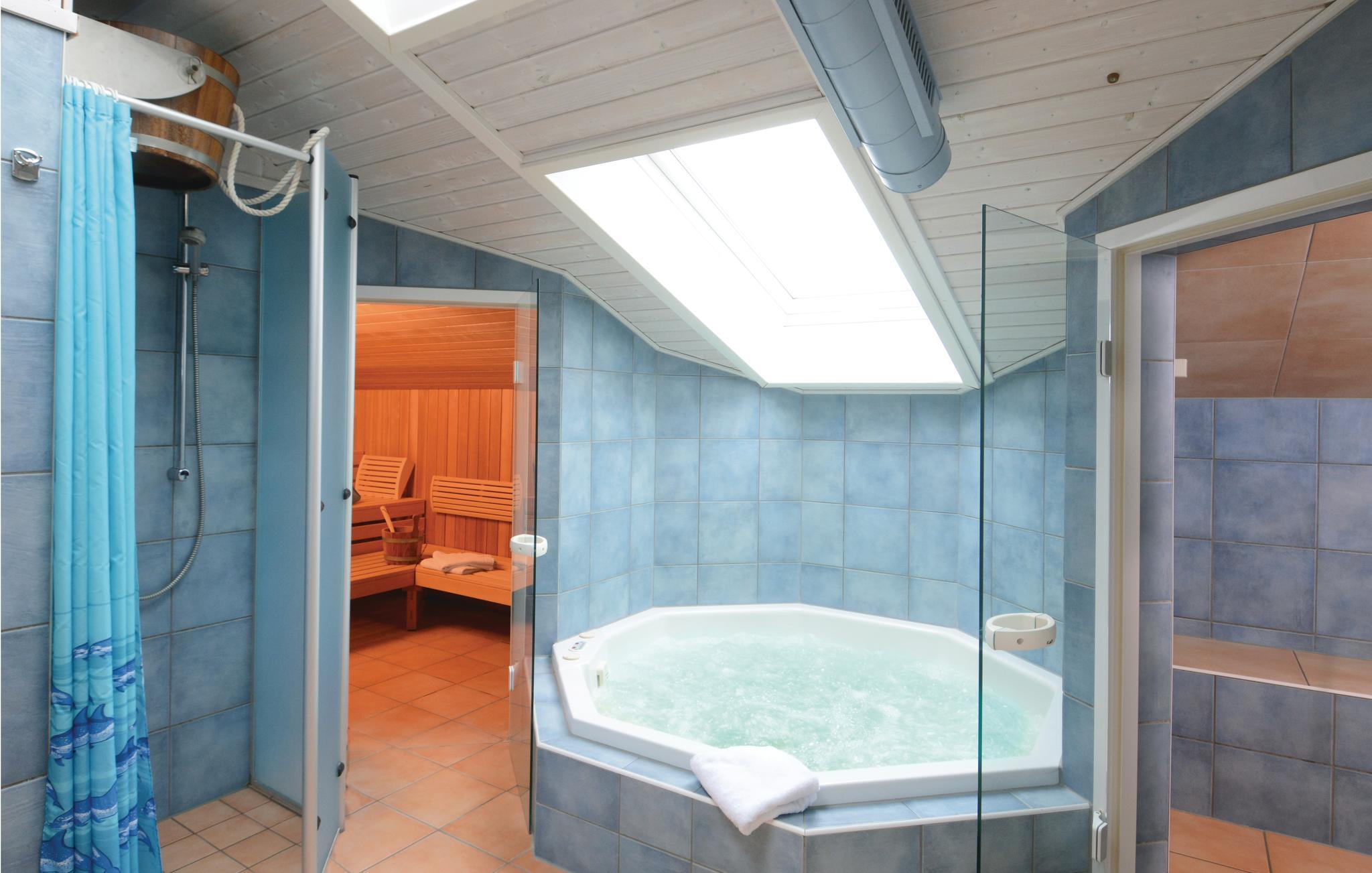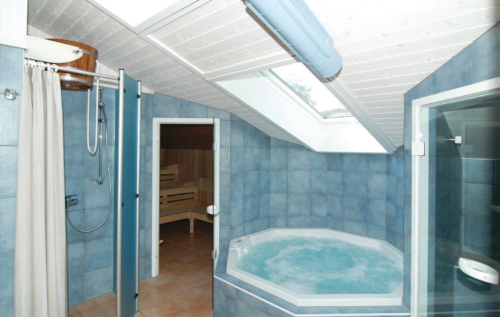 I disse bekvemme huse har I jeres egen oase og kan til enhver tid selv bestemme, hvilken type sauna I vil prøve. Den multifunktionelle sauna byder ud over det varme, tørre saunaklima også på betydeligt mildere badeformer, som fx trope-, soft- og varmluftsbad. Prøv også det ægte dampbad, det 5-personers-spabad eller solariet, og slap af i den hyggelige atmosfære foran pejsen.