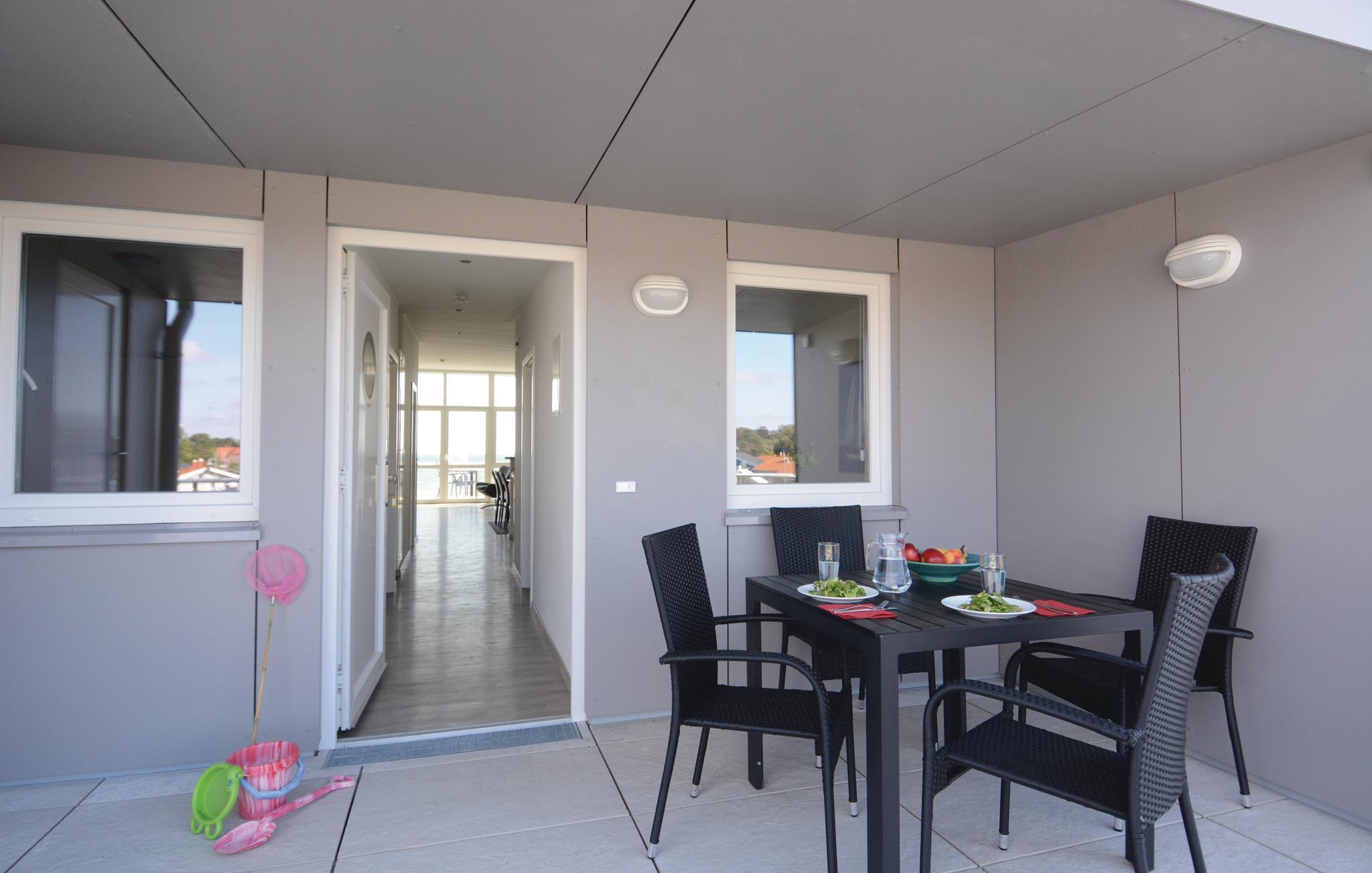 Schönhagens sandstrand begynder lige uden for døren, kun adskilt af den smukke promenade. Servicekontoret og en café ligger i stueetagen, så I er lige midt i handlingen.