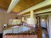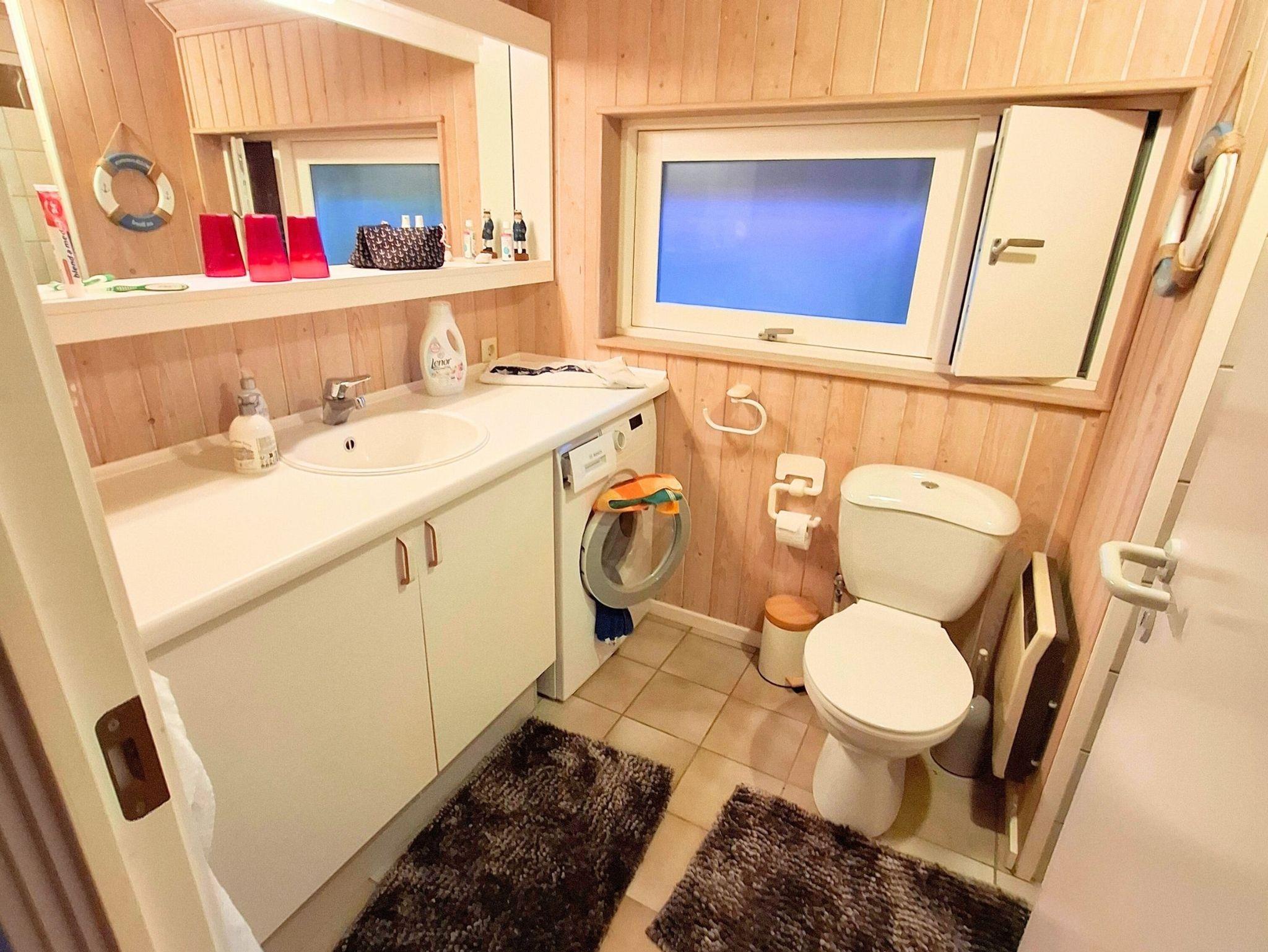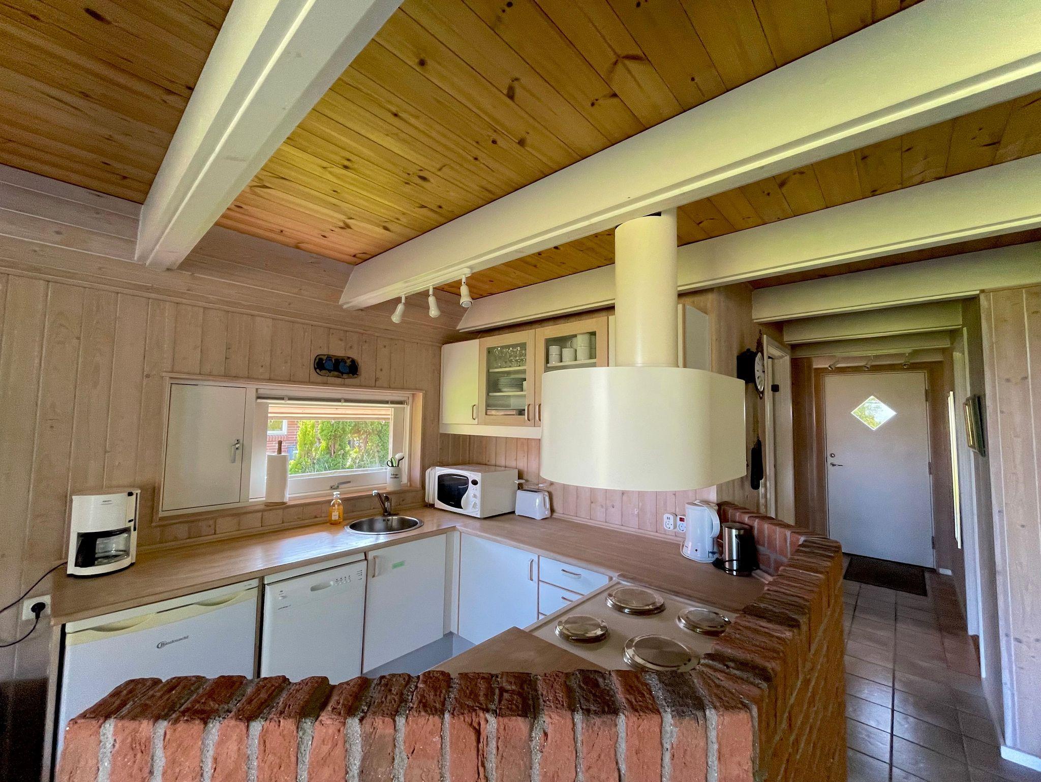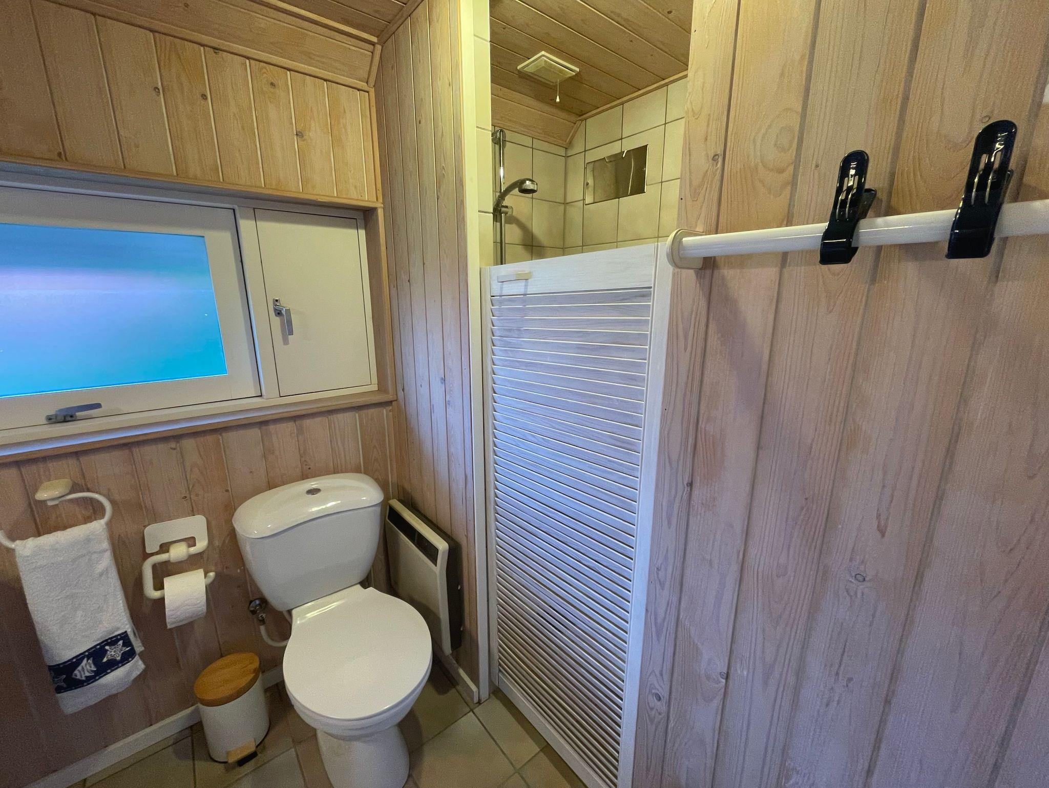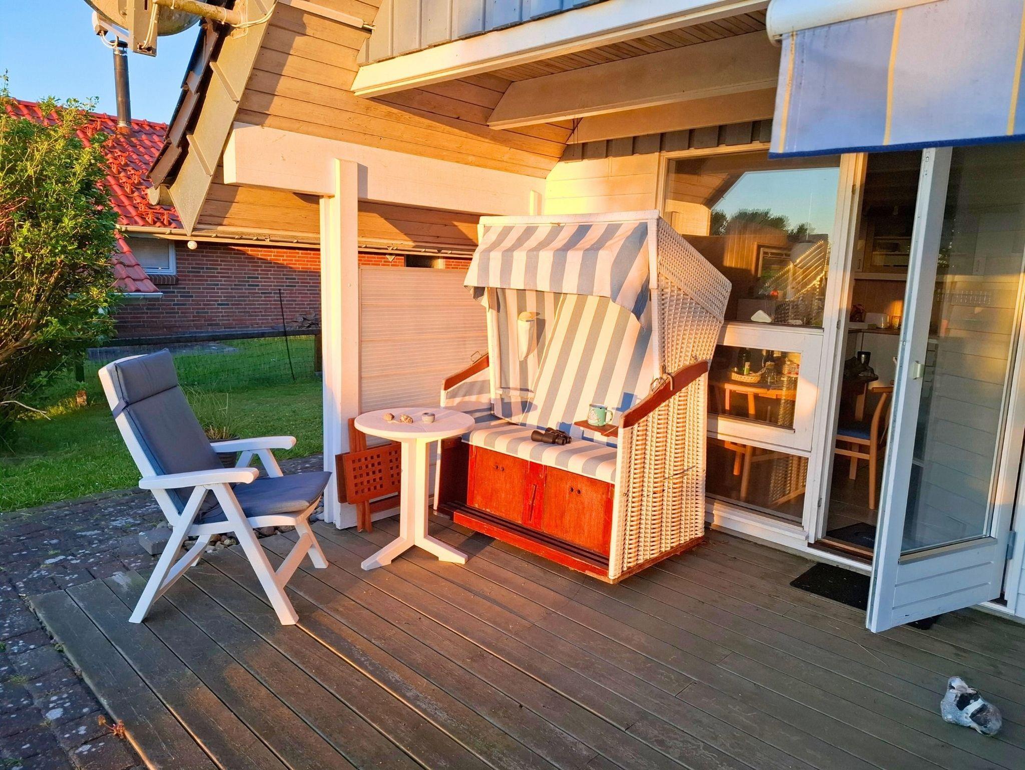 Das Haus ist durch die Aufteilung gut geeignet für kleine Familien oder auch zwei Paare, die zusammen verreisen möchten. Im Erdgeschoss befindet sich ein großes Wohn- Esszimmer mit einem Essbereich und einer offenen Einbauküche und ein Schlafzimmer mit einem Doppelbett und einem großen Kleiderschrank. Außerdem gibt es ein Duschbad, einen kleinen Abstellraum und den Flurbereich. Vom Wohnzimmer aus gelangen Sie auf die möblierte Terrasse mit Windschutz und Markise und in den Garten, in dem es verschiedene Sitzbereiche gibt.