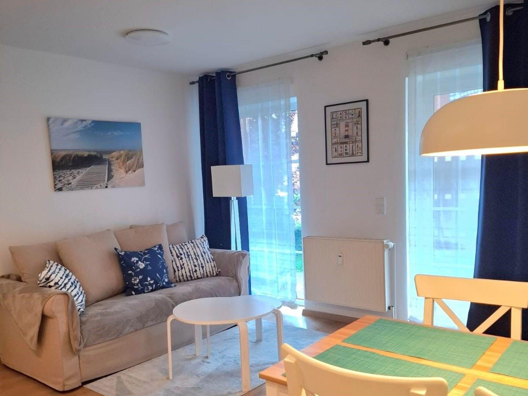 Die 2-Zimmer Ferienwohnung Seestern liegt in einer ruhigen Sackgasse im Ostseebad Schönhagen, ca. 1.000 m vom Strand entfernt. Die schön ausgestattete Ferienwohnung liegt im Parterre eines Mehrappartementhauses und bietet auf 41m² Wohnfläche ausreichend Platz für 2 Personen. Die Wohnung verfügt über ein Wohnzimmer mit einer gemütlichen Couch, einem Esstisch für 4 Personen und einer Küchenzeile mit Backofen und Geschirrspüler. Im Schlafzimmer befindet sich ein Doppelbett (160cm breit), ein Kleiderschrank und ein Frisiertisch. Außerdem gibt es ein Bad mit Dusche und WC.