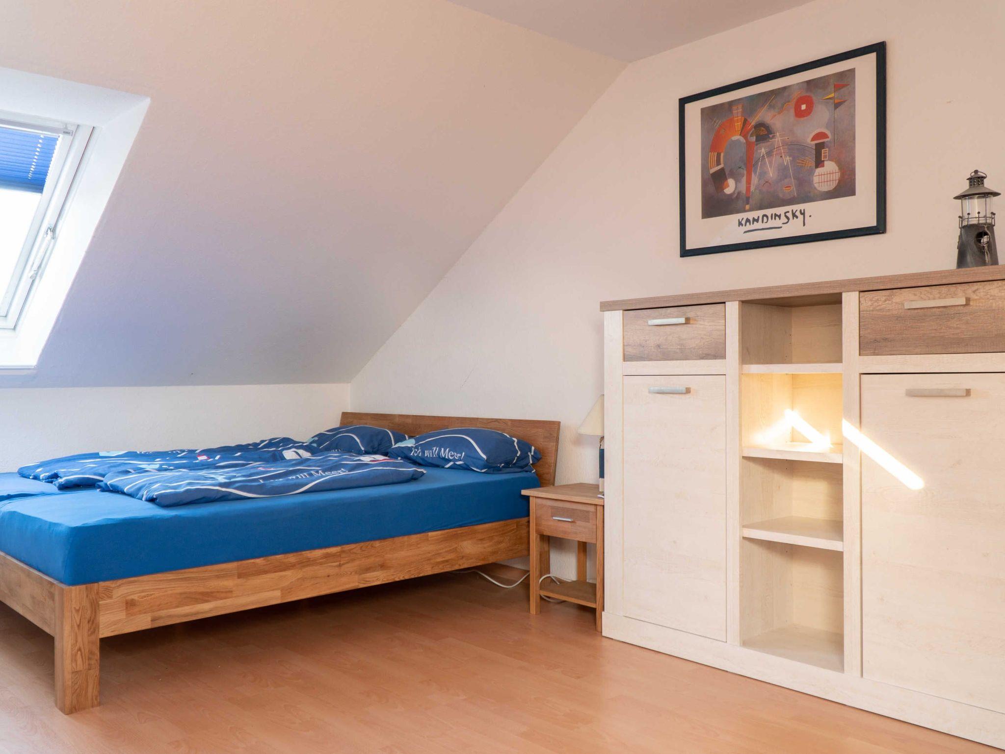 Das Schlafzimmer auf dieser Ebene bietet Ihnen ein Doppelbett (1,60 x 2,00 m) sowie ausreichend Stauraum in einem kleinen begehbarem Wandschrank. Desweiteren bietet dieses Zimmer einen eigenen nach Südwesten ausgerichteten Balkon.