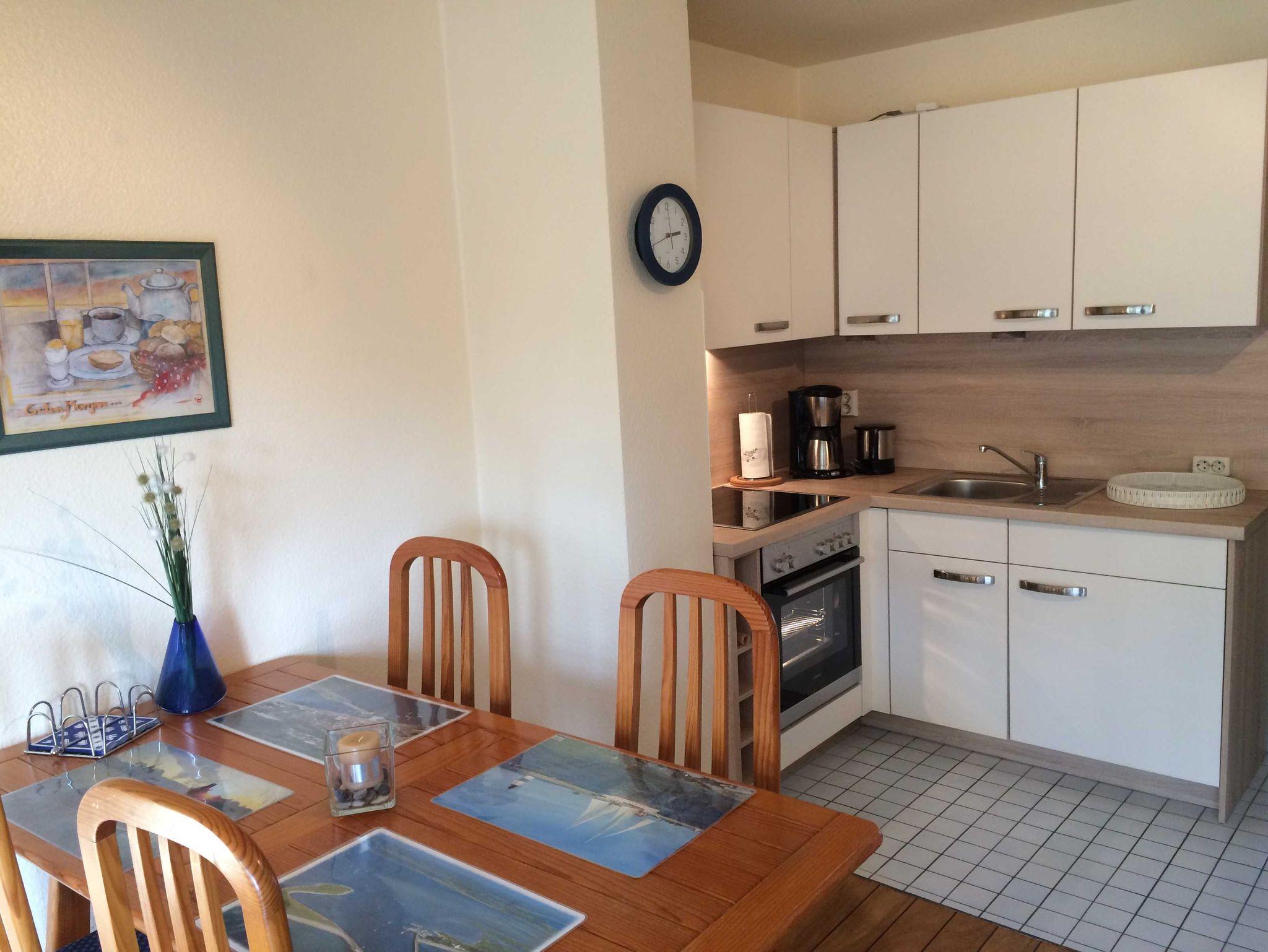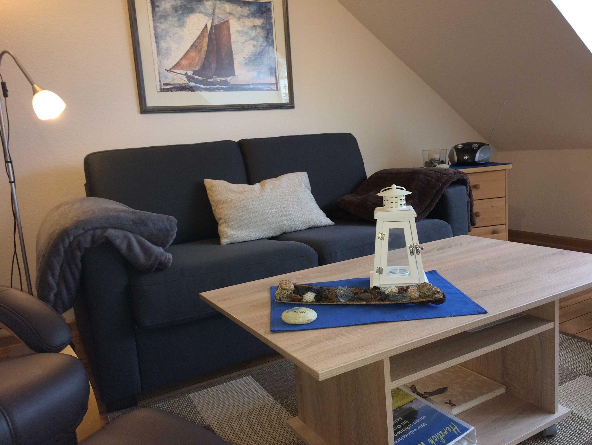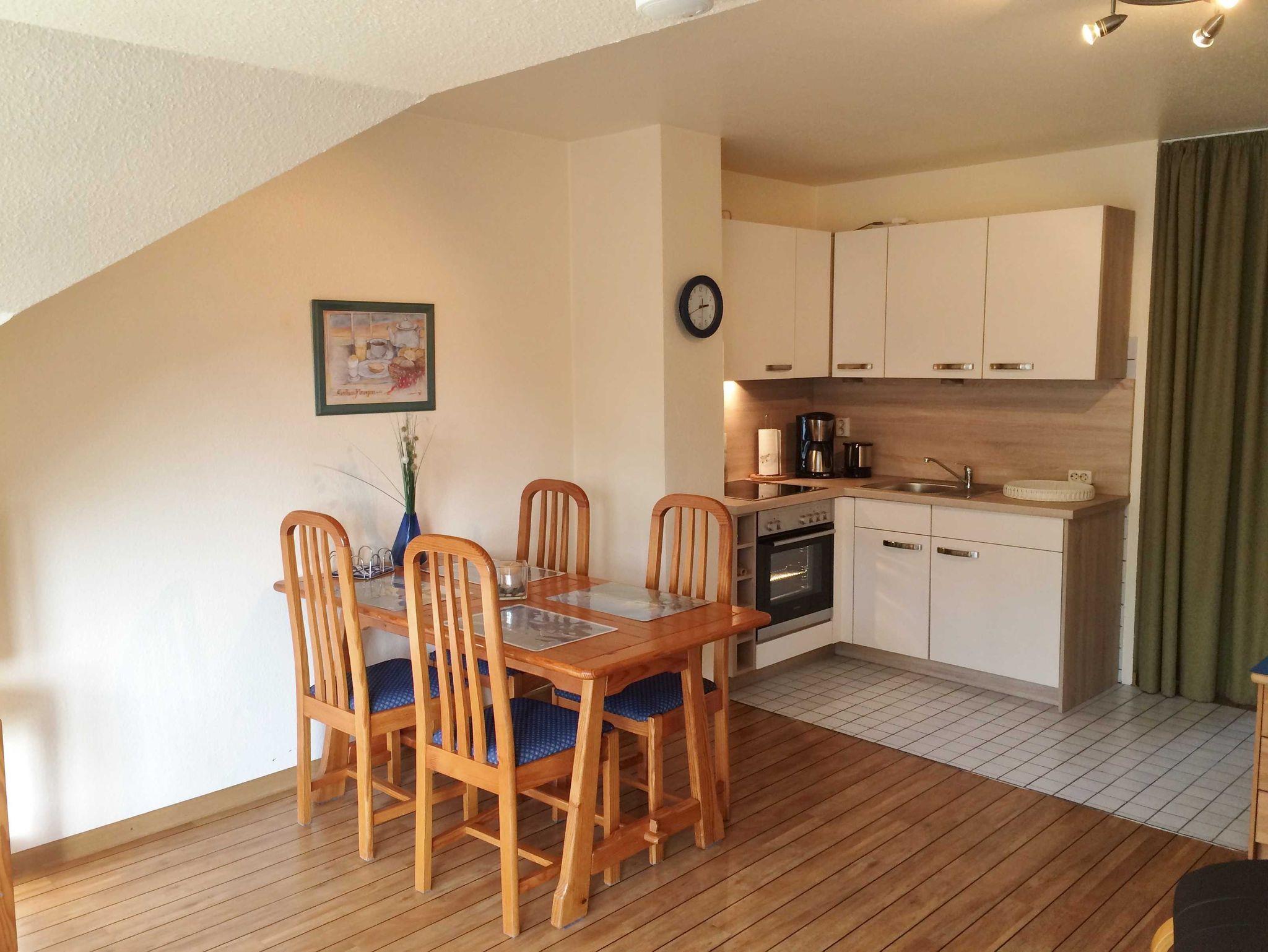 Die gemütliche Maisonette-Ferienwohnung Heuer hat eine Wohnfläche von ca. 60 m² und ist für 2-3 Personen geeignet. Sie befindet sich innerhalb einer kleinen Ferienanlage im Reihenhauscharakter in unmittelbarer Nähe der Reha-Klinik und ist ca. 950 m vom Strand entfernt. In der 1. Etage befindet sich das Wohnzimmer mit Essecke und der kleinen, modernen Einbauküche, das Bad mit Wanne/WC und der möblierte Balkon. Über eine Treppe gelangen Sie in das Dachgeschoß, wo sich das gemütliche Schlafzimmer mit einem Doppelbett und einem Einzelbett befindet. WLAN sowie ein reservierter PKW-Stellplatz vor dem Haus stehen den Gästen zur Verfügung.