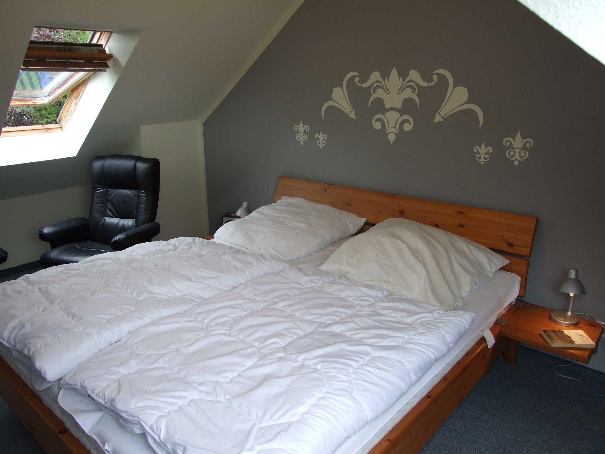2-Zimmer-Maisonettewohnung mit ca. 60 m² Wohnfläche, aufgesteilt in: Wohnzimmer mit Essecke, SAT-TV, Radio, WLAN; Schlafzimmer im Dachgeschoß mit Doppelbett (2 x 90x200 cm) und Einzelbett (90x200 cm); Einbauküchenzeile; Bad mit Wanne/WC; sonniger, möblierter Balkon; PKW-Stellplatz; Nichtraucher.