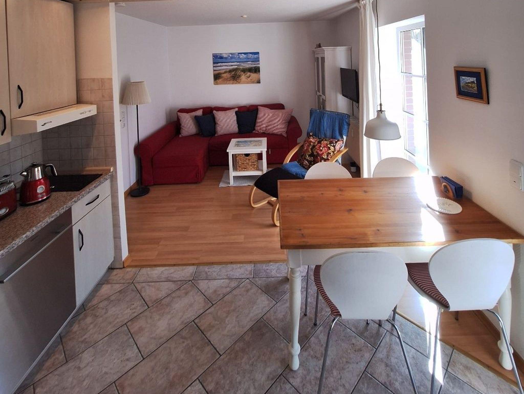 Die 2-Zimmer-Ferienwohnung Matthias hat eine Wohnfläche von ca. 50m². Sie verfügt über einen hellen und freundlichen Wohnraum mit Schlafcouch, Essplatz und angrenzender, geschützter Terrasse mit Gartenmöbeln sowie einen Küchenbereich. Es sind u.a. ein 2-Platten-Ceranfeld, Kaffeemaschine, Wasserkocher, Geschirrspüler, Tischbackofen, Gefriermöglichkeit und ausreichend Geschirr/Kochtöpfe vorhanden. Im separaten Schlafraum befindet sich ein Doppelbett (2x90x200cm). Vom kleinen Flur der Wohnung geht ein Badezimmer mit Dusche/WC ab. Der zur Wohnung gehörende Parkplatz liegt direkt vor dem Haus.