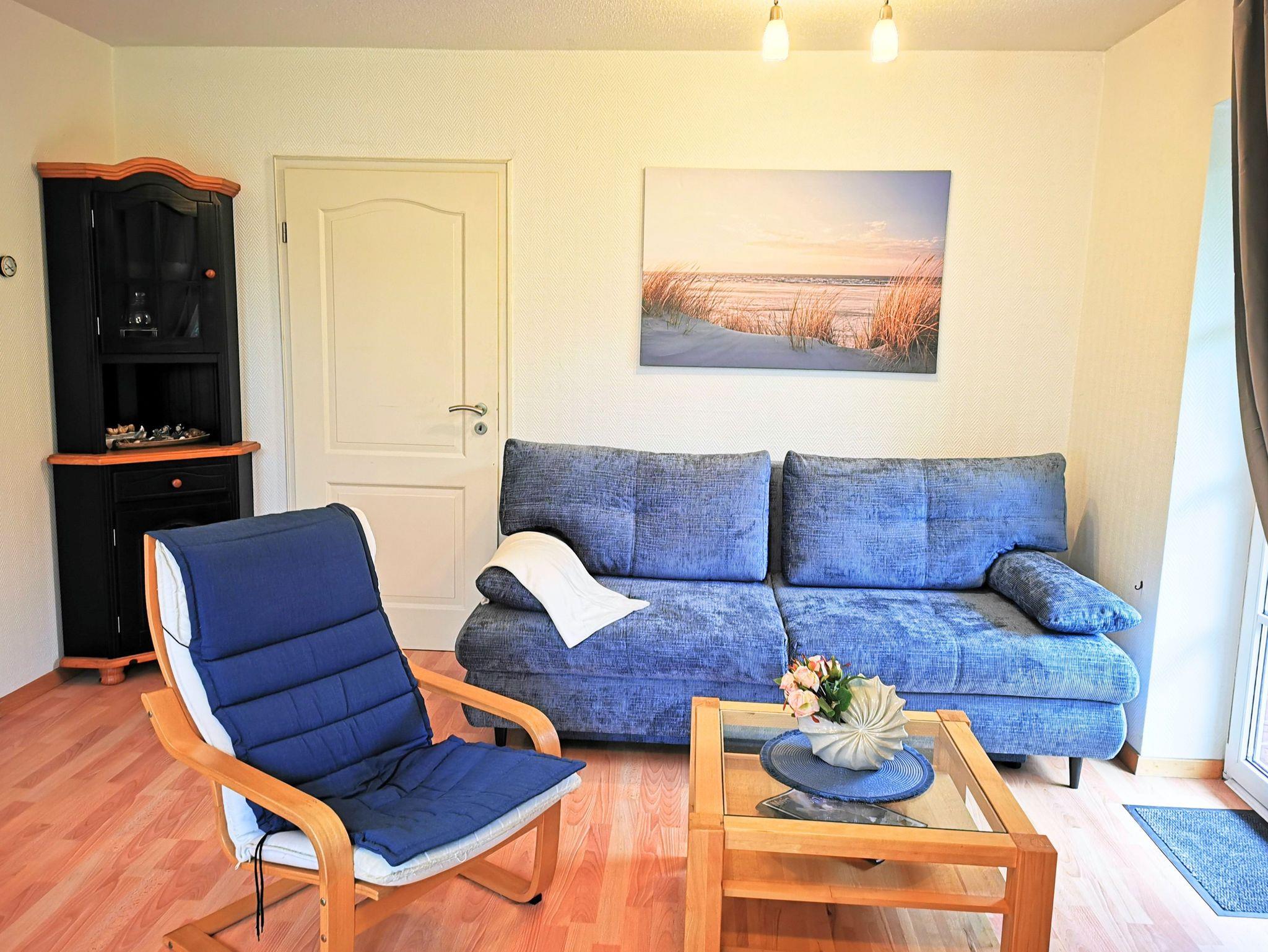 Mit etwa 48 m² Wohnfläche bietet sie Platz für bis zu 3 Personen und verfügt über ein Wohnzimmer mit einer Schlafcouch sowie ein Schlafzimmer mit Doppelbett.