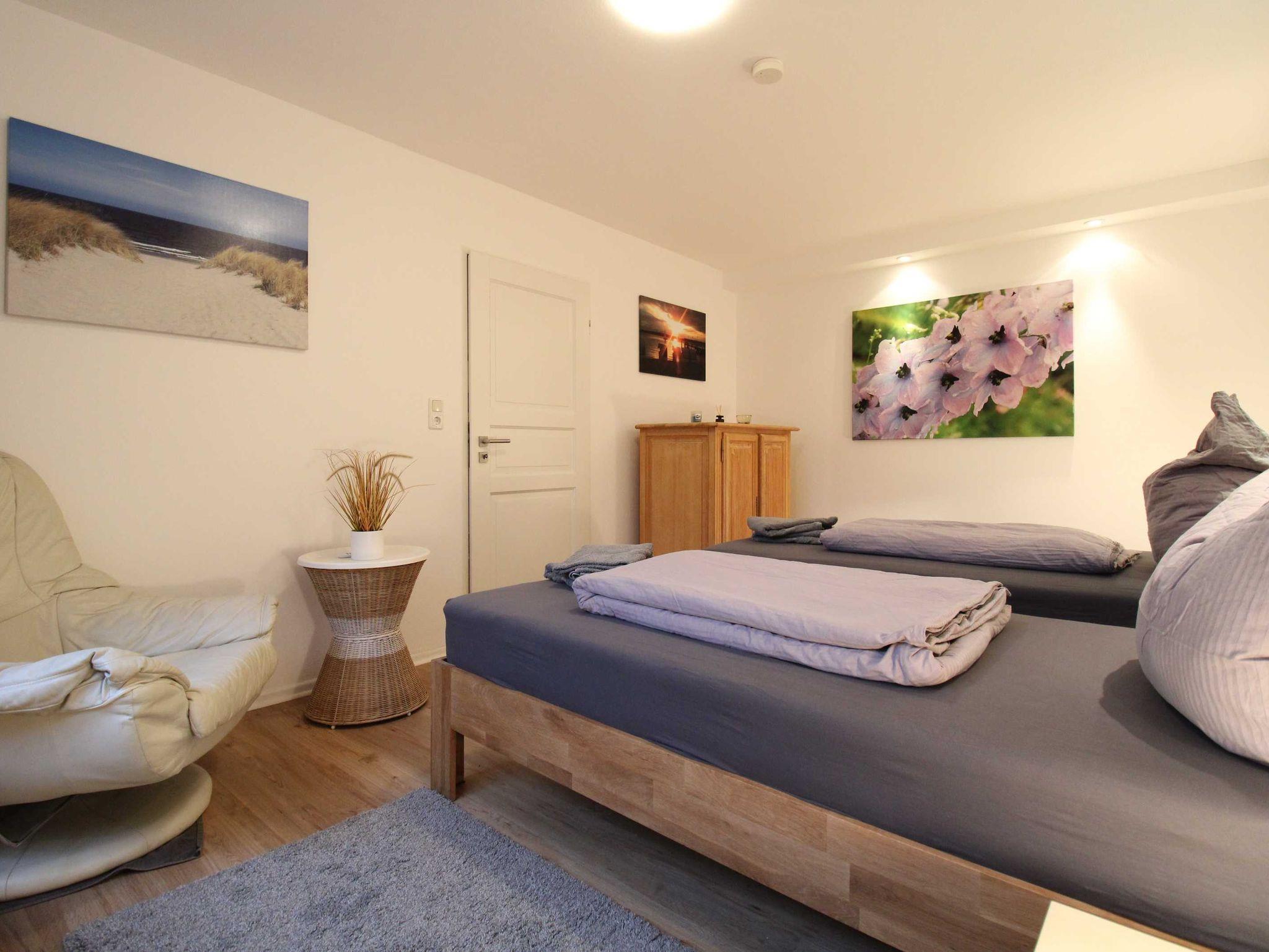 • 1 Schlafzimmer mit 2 Einzelbetten und TV im Souterrain