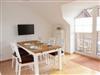 Die Maisonette-Wohnung Nordlicht hat ca. 65 qm Wohnfläche, aufgeteilt in ein Wohnzimmer mit Essplatz, 1 Schlafzimmer mit einem Doppelbett (1,40 x 2,00 m), ein weiteres Schlafzimmer mit 3 Betten (je 1,00 x 2,00 m) im Dachgeschoß, eine kleine Küchenzeile mit Geschirrspüler, ein Badezimmer mit Badewanne und WC; außerdem WLAN in der Wohnung, ein PKW-Stellplatz und eine abschließbare Fahrradunterstellmöglichkeit.