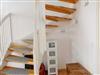 Eine Holztreppe führt in das helle Obergeschoss, in dem sich ein Raum mit drei weiteren Schlafgelegenheiten befindet. Das Doppelbett besteht aus zwei zusammengeschobenen Einzelbetten (jeweils 1m x 2m). In einer kleinen Nische befindet sich ein weiteres Einzelbett (1m x 2m) sowie zwei Kleiderschränke für Ihre Kleidung.