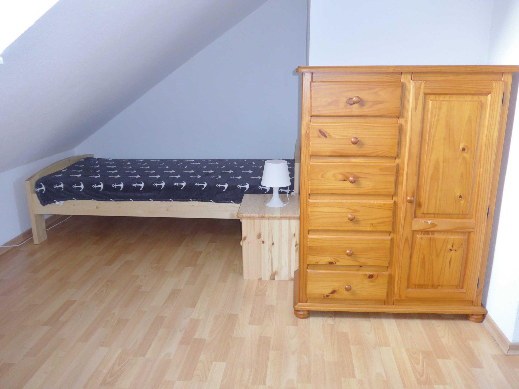 Das Schlafzimmer auf dieser Ebene bietet Ihnen ein Doppelbett (1,40 x 2,00 m). Ein Kinderreisebett mit Matratze sowie ein Bettschutzgitter für Kinder sind vorhanden.
