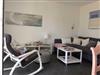 Die ca. 15qm große, überdachte und windgeschütze Terrasse ist mit einem Tisch, Stühlen und zwei passenden Deckchairs möbliert.