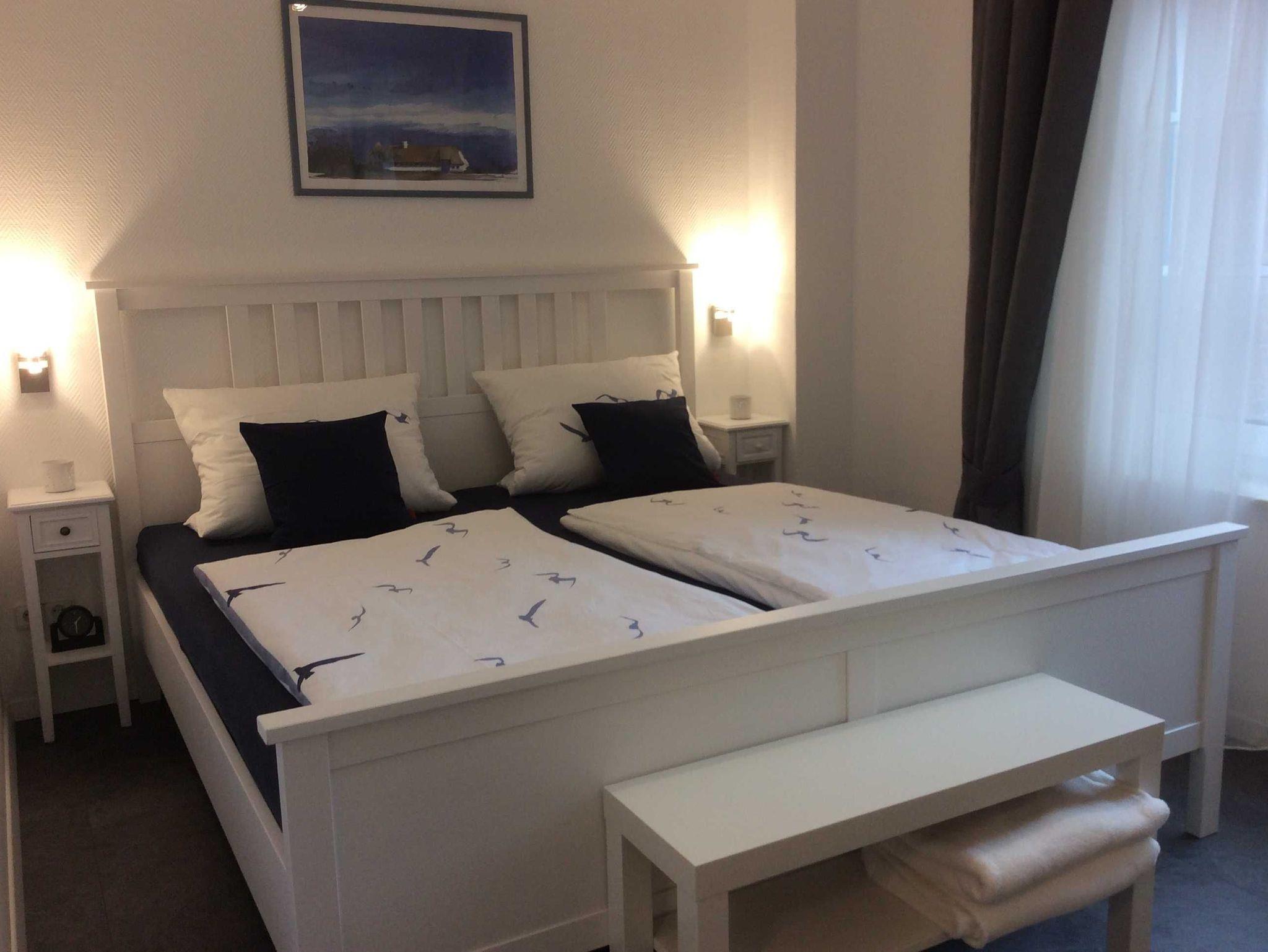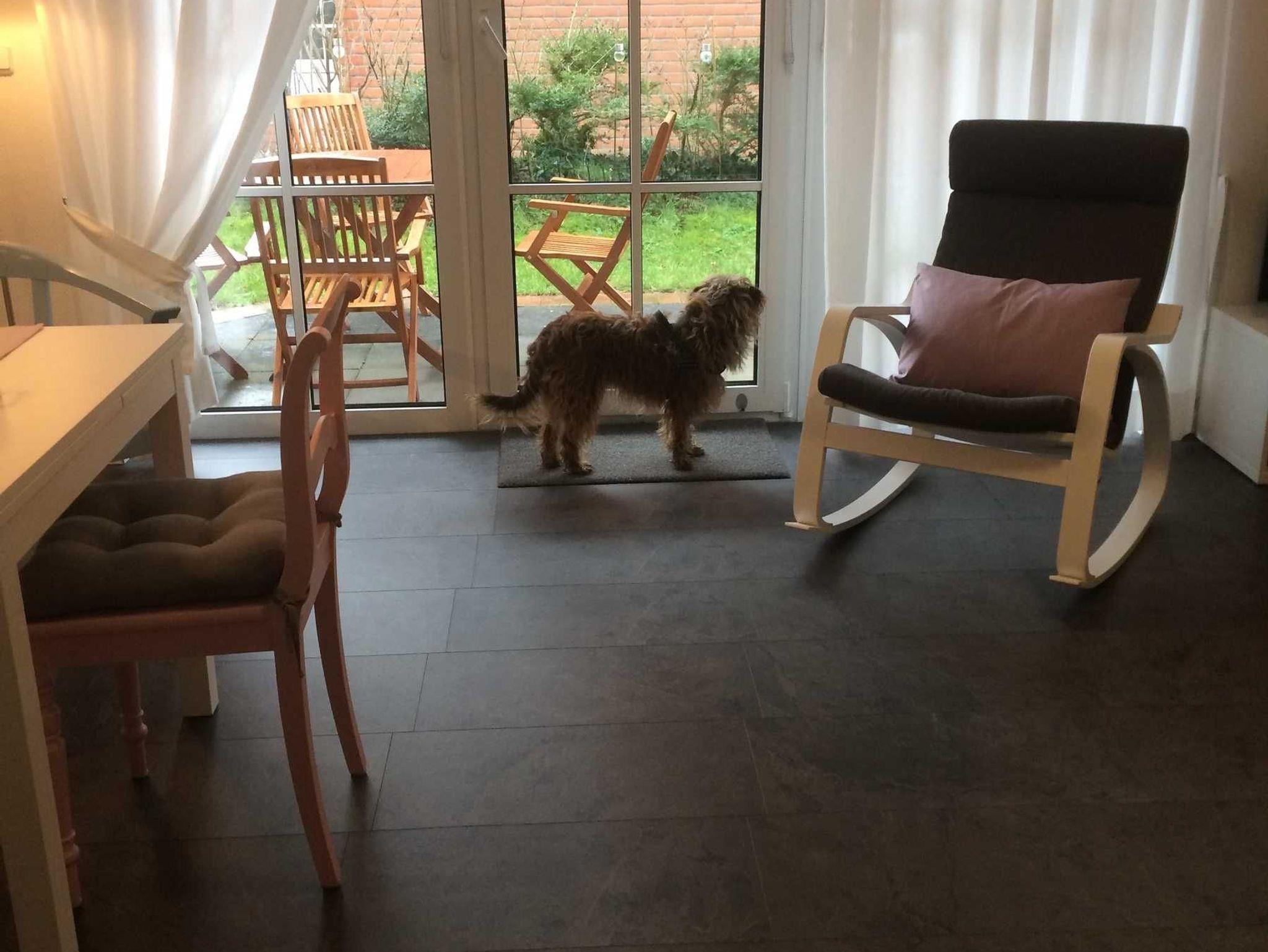 Hier, im Erdgeschoss eines 8-Parteienhauses, finden 2 Personen (Kinder ab 12 Jahre) und maximal 2 Hunde ausreichend Platz für eine schöne Ferienzeit.