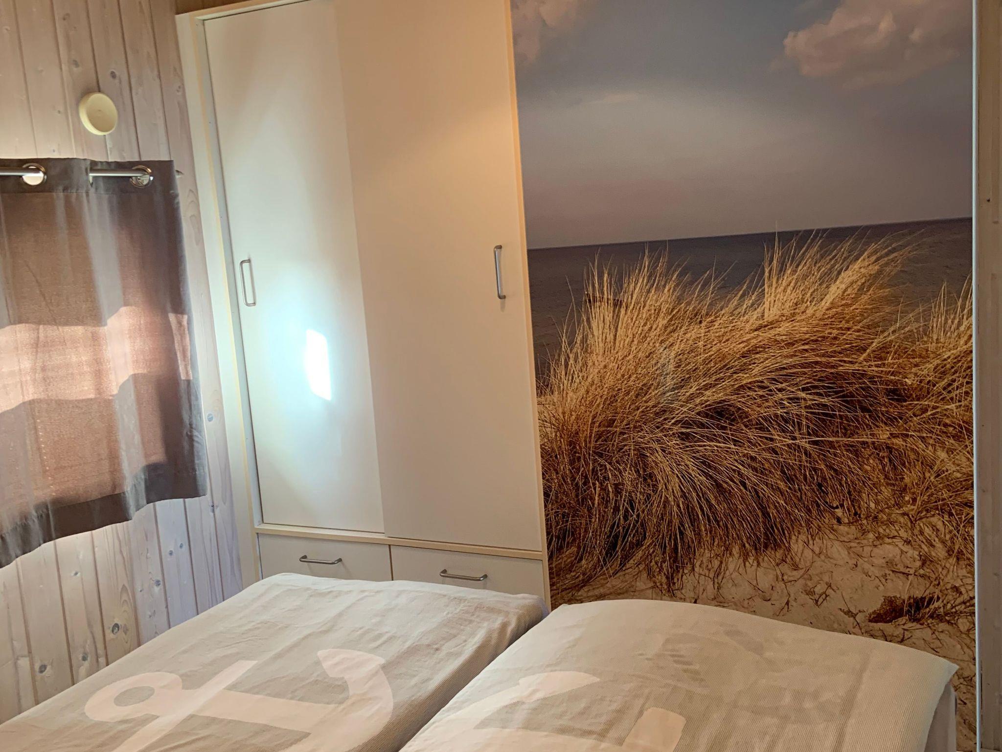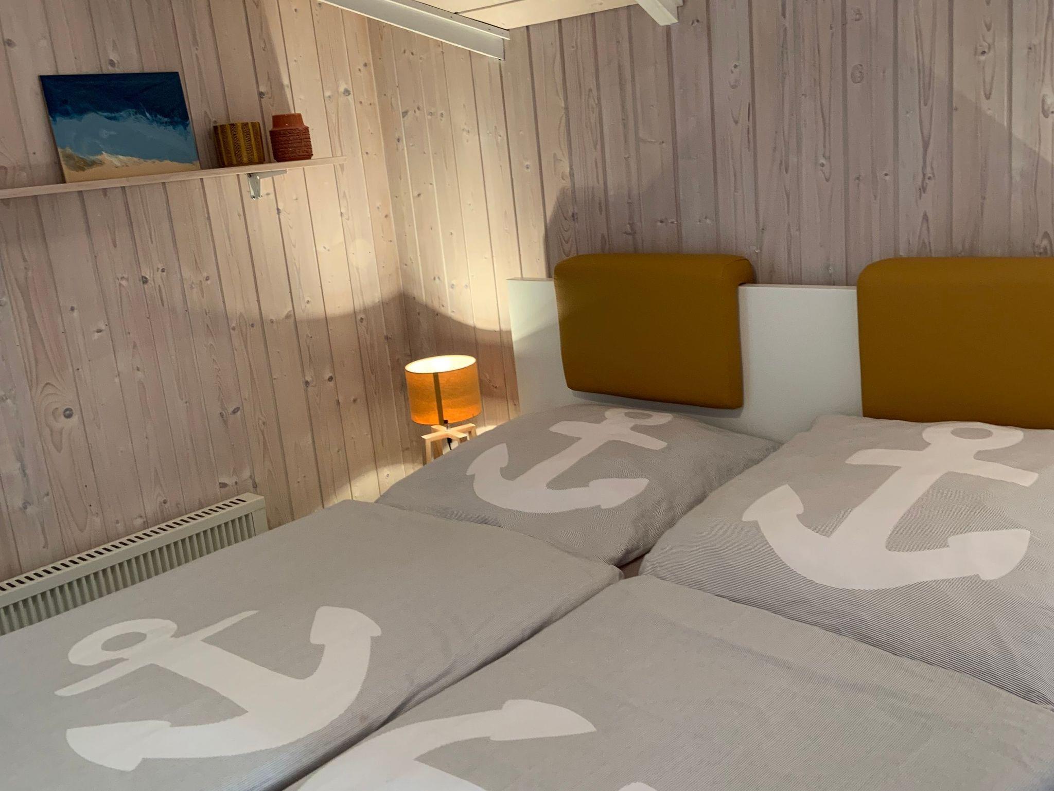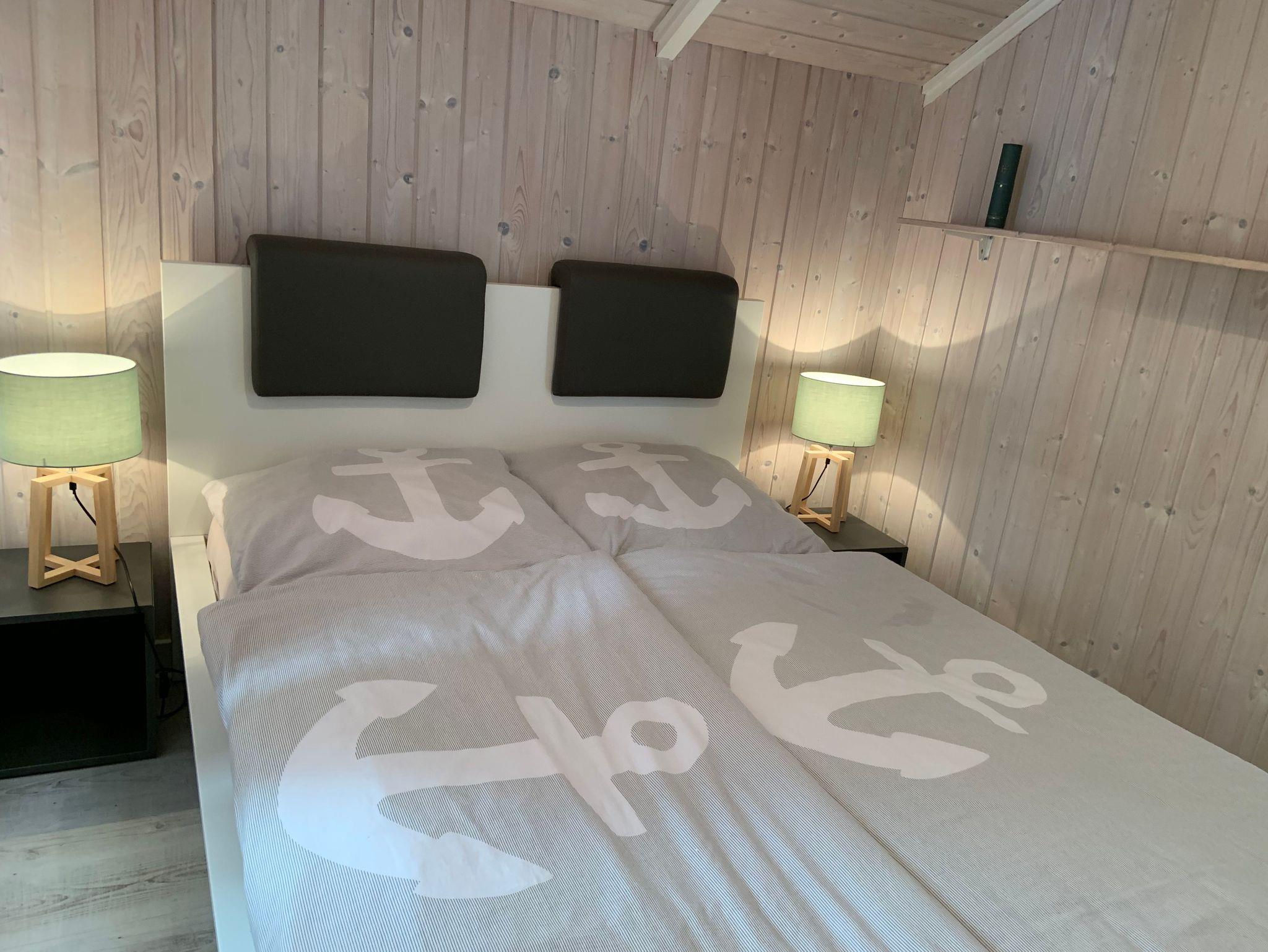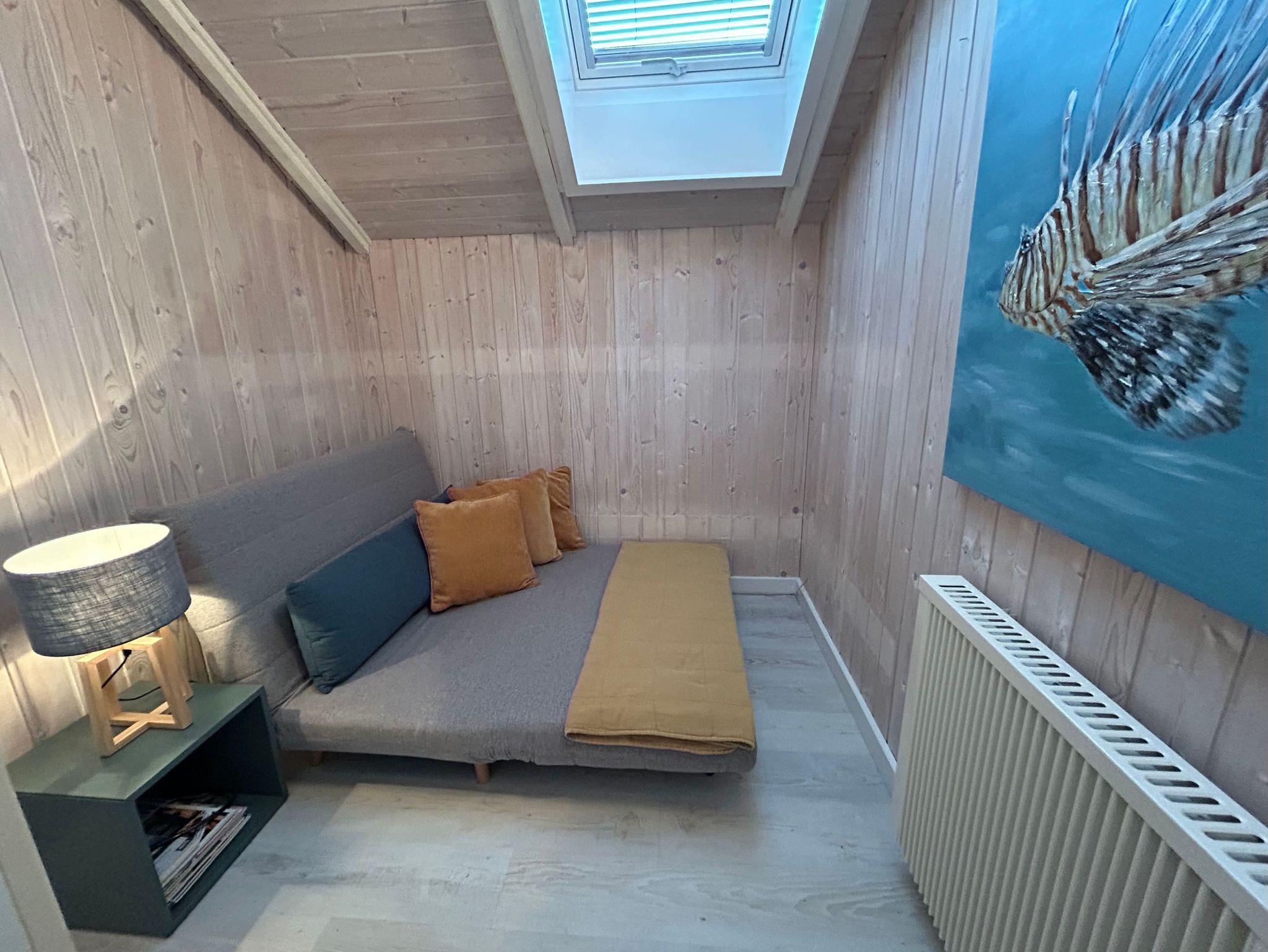 Ein Eltern-Schlafzimmer ist mit einem Doppelbett (Breite 1,60 m mit 2 Matratzen) und zweites Kinder-Schlafzimmer ist mit einem franz. Doppelbett (Breite 1,40 m) ausgestattet. Zwischen Bett und Schlafzimmerschrank ist ein schmaler Gang, die Möbel wurden der Zimmergröße optimal angepasst. Ein weiteres kleines Zimmer verfügt über eine Schlafcouch für eine Person und kann als Rückzugsort oder zum Relaxen genutzt werden. An kühleren Tagen lädt die Sauna zum Aufwärmen ein.