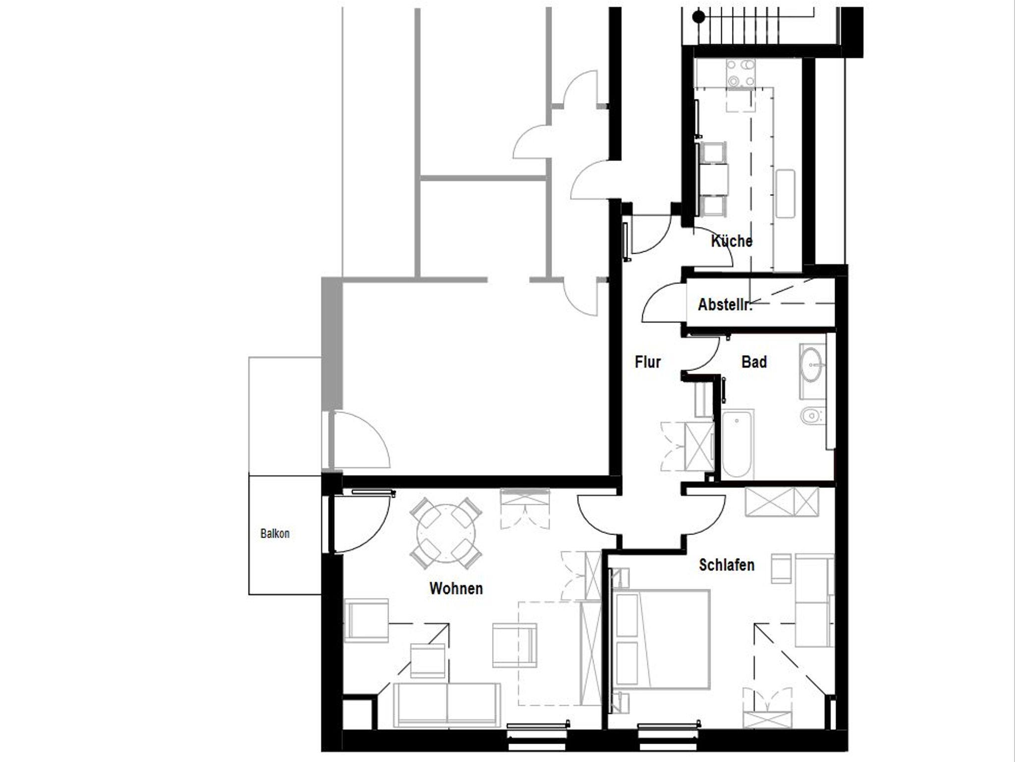 • Wohnraum mit Wandklappbett (1,40m x 2,00m)