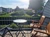 Der großzügige und lichtdurchflutete Wohnbereich verfügt über ein 3-Sitz-Sofa und 2 Sessel, einen Essplatz und einen Westbalkon.