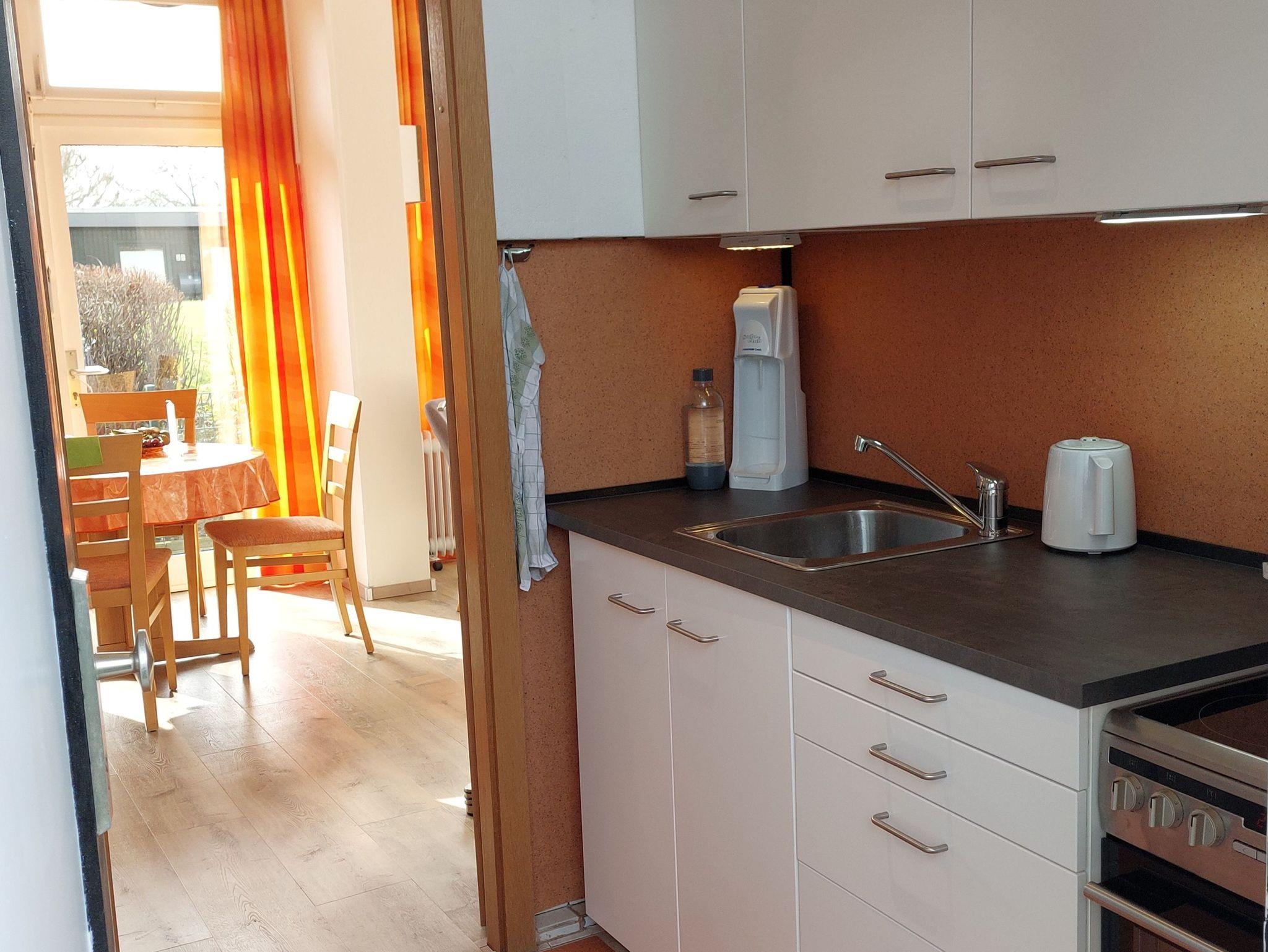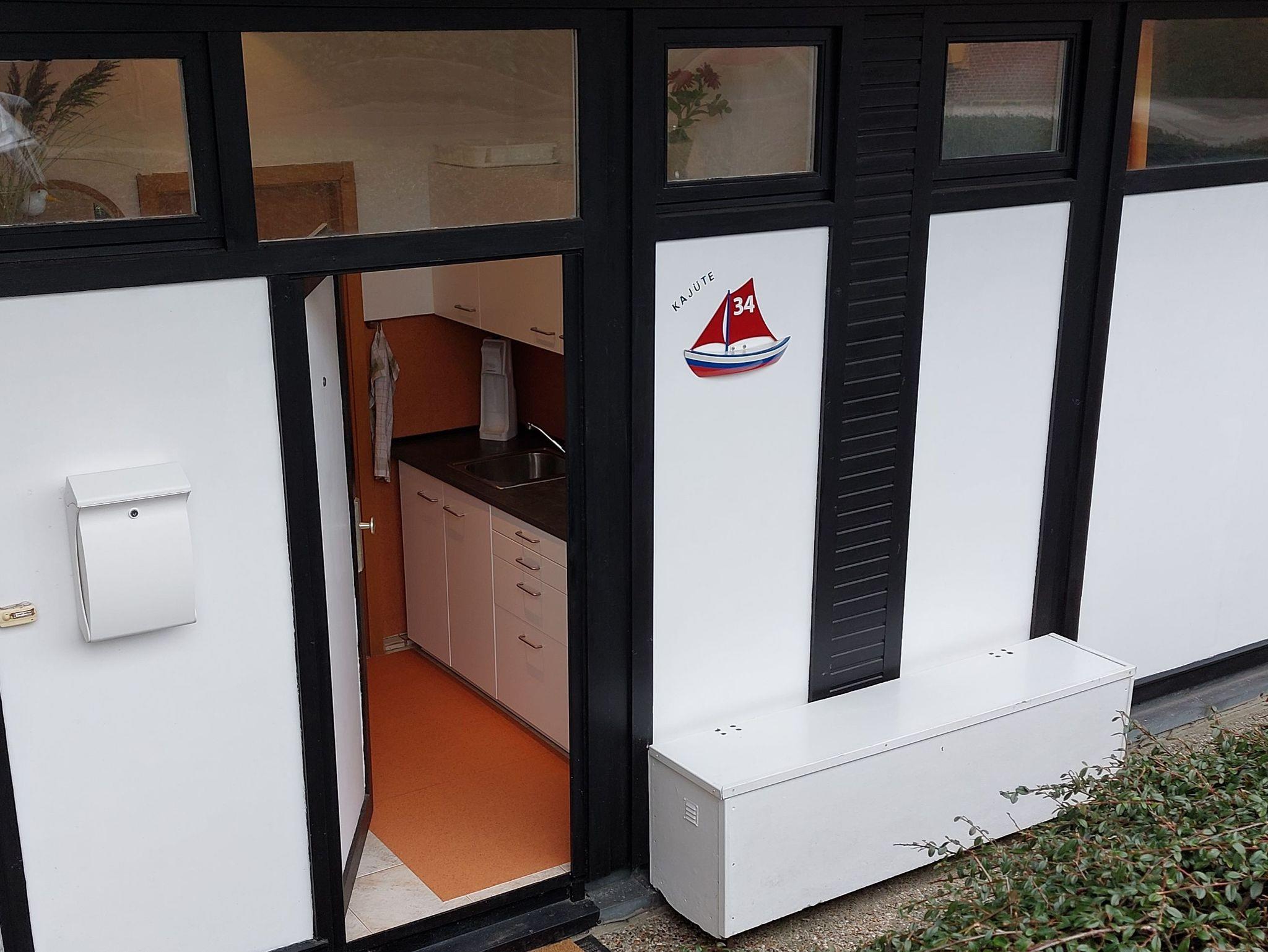 Die strandnahe Ferienwohnung Kajüte 34 befindet sich im Parterre und hat ca. 45 m² Wohnfläche, bestehend aus: Wohnzimmer mit Schlafcouch (180x200 cm - einteilig), Schrankbett für 1 Person, Esstisch; Schlafzimmer mit Einzelbett (90x200 cm); Küchenzeile im Eingangsbereich; Dusche/WC, durch das Schlafzimmer zu erreichen; kostenfreies WLAN; möblierte Terrasse zur Südseite mit Tisch und Stühlen sowie 2 Sonnenliegen und Markise; Tischtennis- und Fahrradabstellraum; hauseigenes Schwimmbad und Münzsauna; PKW-Stellplatz Nr. 34. Nichtraucher! Grillen auf der Terrasse nicht erlaubt!