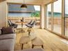 Auf 80?Quadratmetern finden bis zu fünf Personen Platz. Ein gemütliches Elternschlafzimmer mit Boxspringbett befindet sich im Erdgeschoss, zwei weitere Schlafzimmer mit Einzelbetten – eines davon mit zusätzlichem Schlafsessel für ein Kind – liegen im Obergeschoss. Herzstück des Hauses ist der helle Wohn- und Essbereich mit großer Fensterfront, offener Galerie und voll ausgestatteter Küche. Das moderne Bad verfügt über eine begehbare Regendusche, Fußbodenheizung sorgt für behagliche Wärme. Auf der großzügigen Terrasse lädt ein beheizter Außen-Whirlpool zum Entspannen ein – mit Blick auf die stille Natur ringsum.
