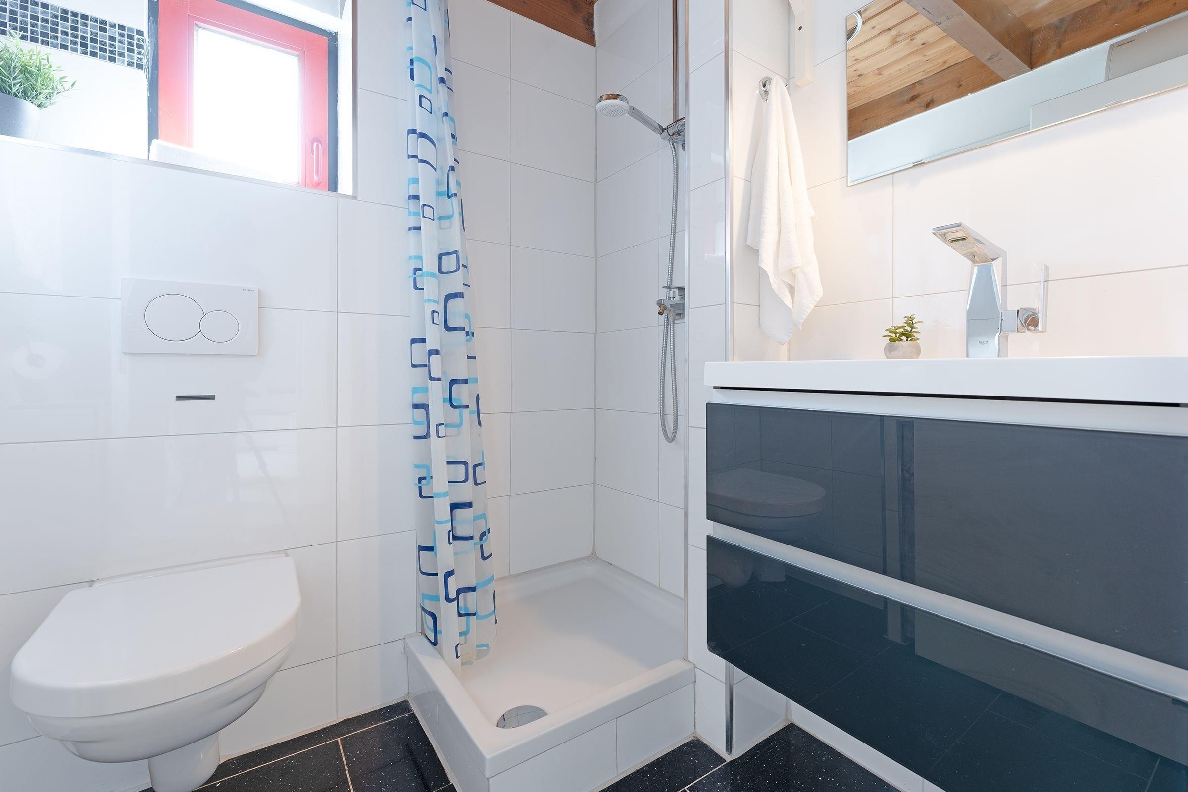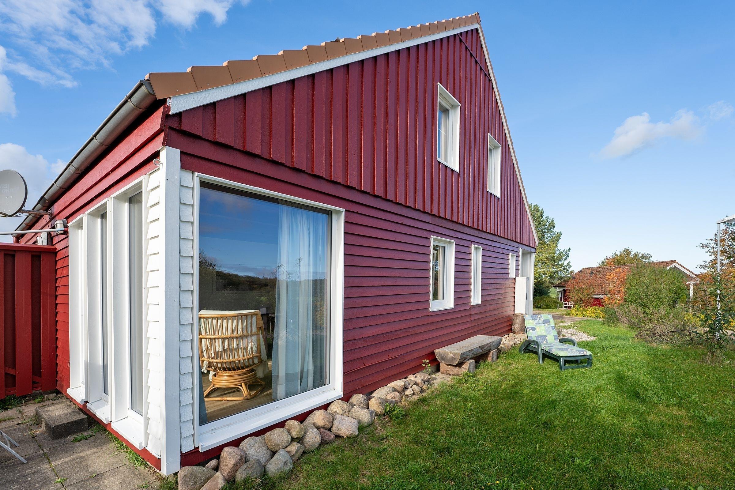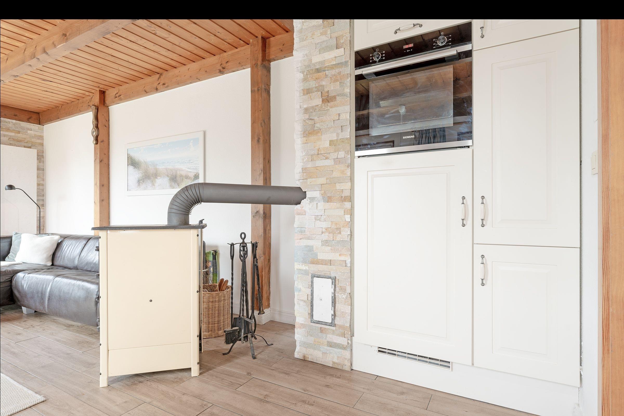 Der helle Wohnbereich empfängt Sie mit einer großen Sofalandschaft, auf der Sie wunderbar entspannen können. Ein TV-Gerät sowie ein DVD-Player sorgen für die richtige Unterhaltung – und ein Kaminofen für eine gemütliche Atmosphäre. Hier lässt es sich gut aushalten, sollte das Wetter mal nicht mitspielen. Bei warmen Temperaturen geht es natürlich nach draußen: Die großzügige möblierte Terrasse, die Sie vom Wohnraum aus betreten können, ist nach Südwesten ausgerichtet und verspricht zahlreiche Sonnenstunden. Wie wäre es hier abends mit einem Glas Wein? Im Winter haben Sie von hier einen schönen Blick auf den See. Der kleine Garten wird nur von Ihnen genutzt und bietet Sonnenliegen sowie ein Sonnensegel. Hier dürfen Sie gern grillen. Wer seine Speisen lieber im Kochtopf zubereitet, ist mit der kleinen, zum Wohnbereich hin offenen Küche mit Spülmaschine gut beraten. Im Erdgeschoss befindet sich zudem ein Duschbad mit Fenster, Föhn und Kosmetikspiegel. Für die Nacht geht es für Sie bequem ins Obergeschoss: Hier warten auf Sie zwei Schlafzimmer, eins mit einem Doppelbett (2x 90x200 cm) und eins mit zwei Einzelbetten (je 90x200 cm). Beide Räume verfügen über einen Kleiderschrank für Ihre Urlaubsgarderobe und können mit Plissees und Vorhängen abgedunkelt werden. Für die kleinen Gäste steht ein Hochstuhl kostenfrei bereit.