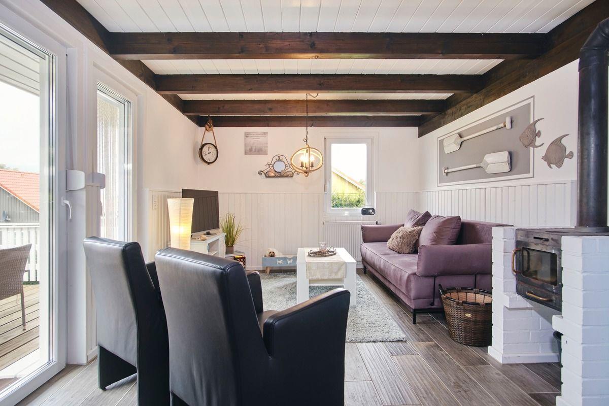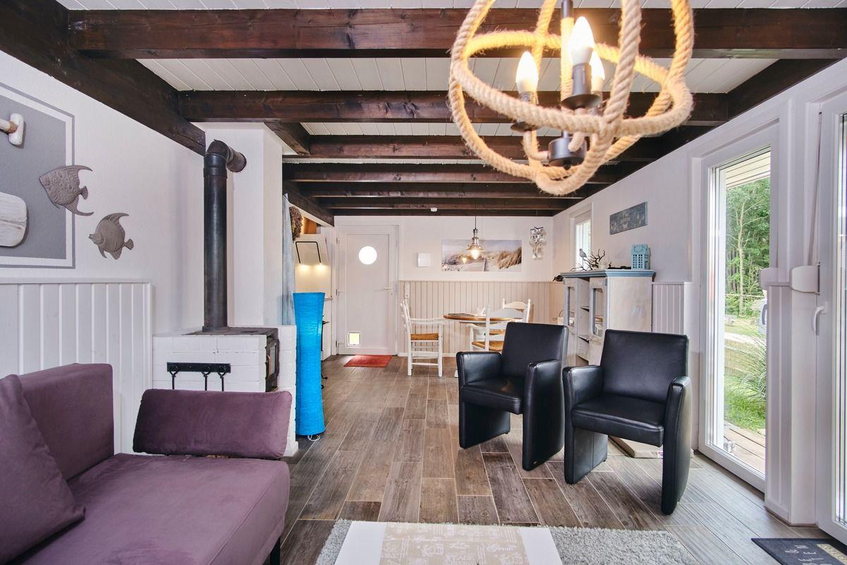 Das ebenerdige Domizil für bis zu 4 Personen verfügt über einen kombinierten Wohn- / Schlaf- / Essbereich mit einem Kaminofen, 1 offene Küche, 1 separates Schlafzimmer, 1 Bad und einen ca. 480 m² großen, komplett eingezäunten Garten (ca. 90 cm hoch).