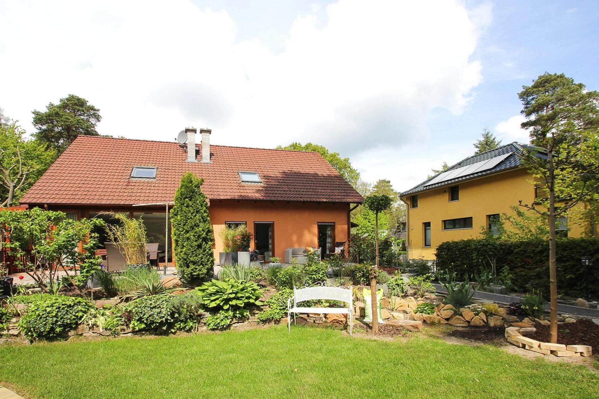 Chikt og moderne indrettet rækkehus med WiFi på lukket grund med smuk udsigt til den velholdte og nænsomt anlagte have i et idyllisk villakvarter nær Berlin. Nyd solen på den dejlige sydvendte terrasse og afslut dagen med en lækker grill. Du finder også en skyggeplads under et af træerne. Derudover giver udlejer dig to cykler gratis til at udforske det smukke landskab. Schönwalde-Glien ligger i Havelland-kvarteret nær Berlin-Spandau og er et vidunderligt udgangspunkt for naturelskere og cykelentusiaster. Især børn vil få noget for pengene i eventyrparken Paaren: gården, vandlegeverdenen og arkens zoologiske have byder på masser af sjov. Detaljer: WiFi2 cykler Aktiviteter i nærheden: Cykelentusiaster kan opleve forskellige cykelruter fra Schönwalde-Glien. Havelland-cykelstien fører direkte gennem Schönwalde, og andre tilstødende cykelstier, såsom Berlinmurstien, kan hurtigt nås herfra. Hvis du ikke har lyst til at shoppe i Berlin, kan du gøre det i det enorme Berlin outletcenter i Wustermark. Her finder du et stort udvalg af designermærker til nedsatte priser. De, der elsker fred og natur, bør bestemt tage en afstikker til naturlandskabet i Düberitzer Heide. I 2004 erhvervede Heinz Sielmann Fonden cirka 3.500 hektar, som gennem yderligere opkøb har fået mere og mere plads. Omkring 5.000 stort set fordrevne dyre- og plantearter, såsom havørne og oddere, er hjemme her. Fra en høj sti ved Elstal kan du observere de tre store dyrearter, bison, Przewalskis hest og kronhjort. Zoologisk have og rekreationspark i Germendorf har som motto leg, sjov og spænding: eventyrlegepladser, minicykler, kofangerbiler, eventyrtog og børn