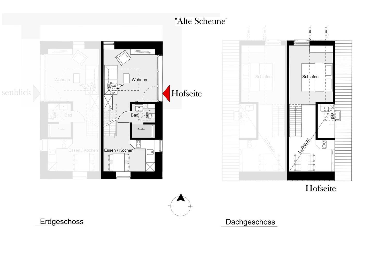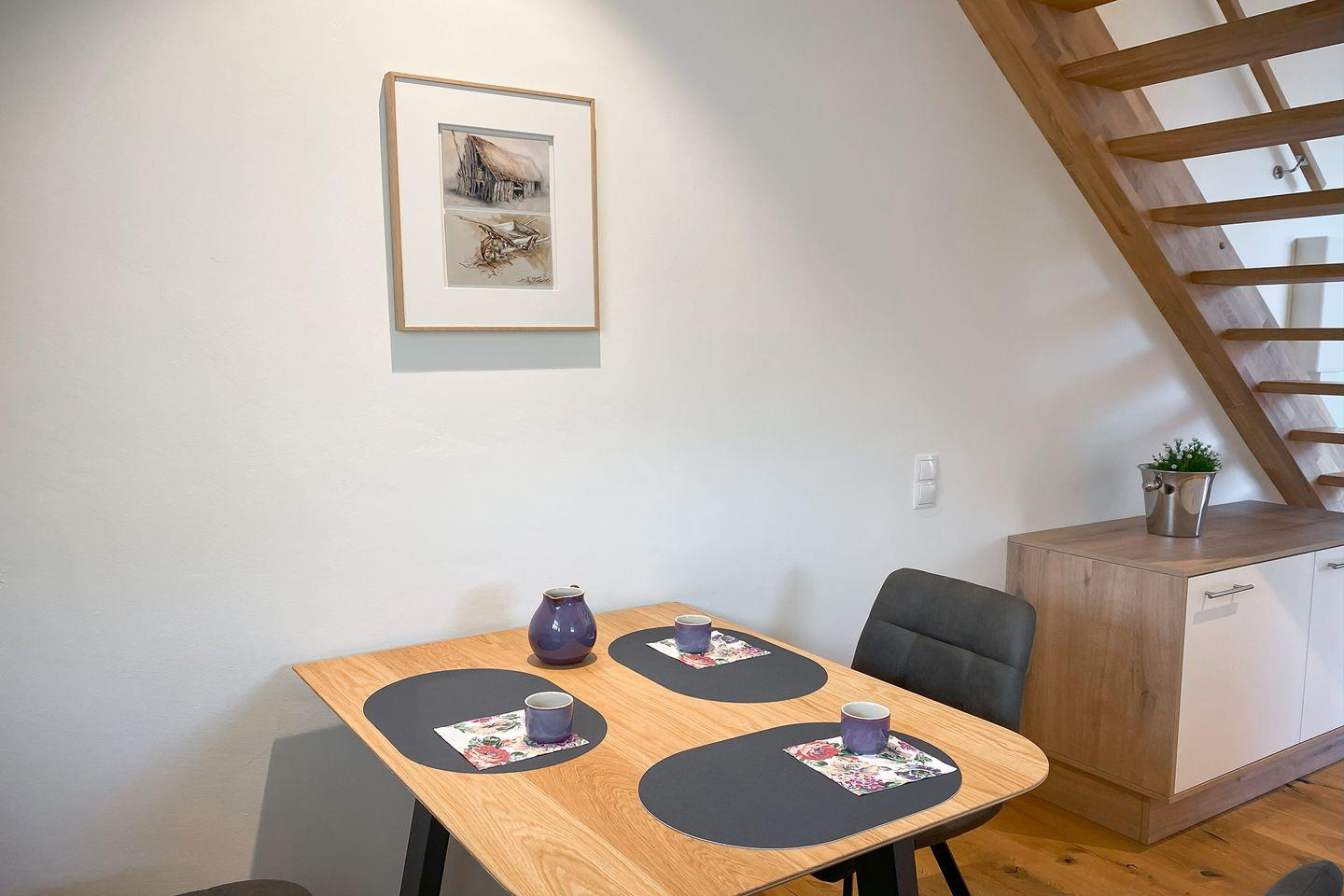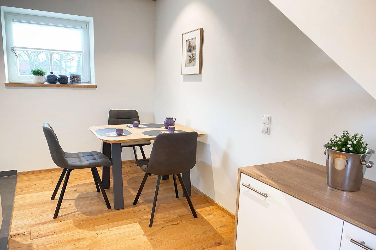 Willkommen in der „Alten Scheune – Hofblick“: Diese stilvolle Maisonettewohnung im ehemaligen Scheunengebäude überzeugt mit ländlichem Charme, liebevoller Einrichtung und einem offenen Raumkonzept. Ideal für alle, die das besondere Ambiente eines alten Bauernhofs zu schätzen wissen – auch mit Hund!