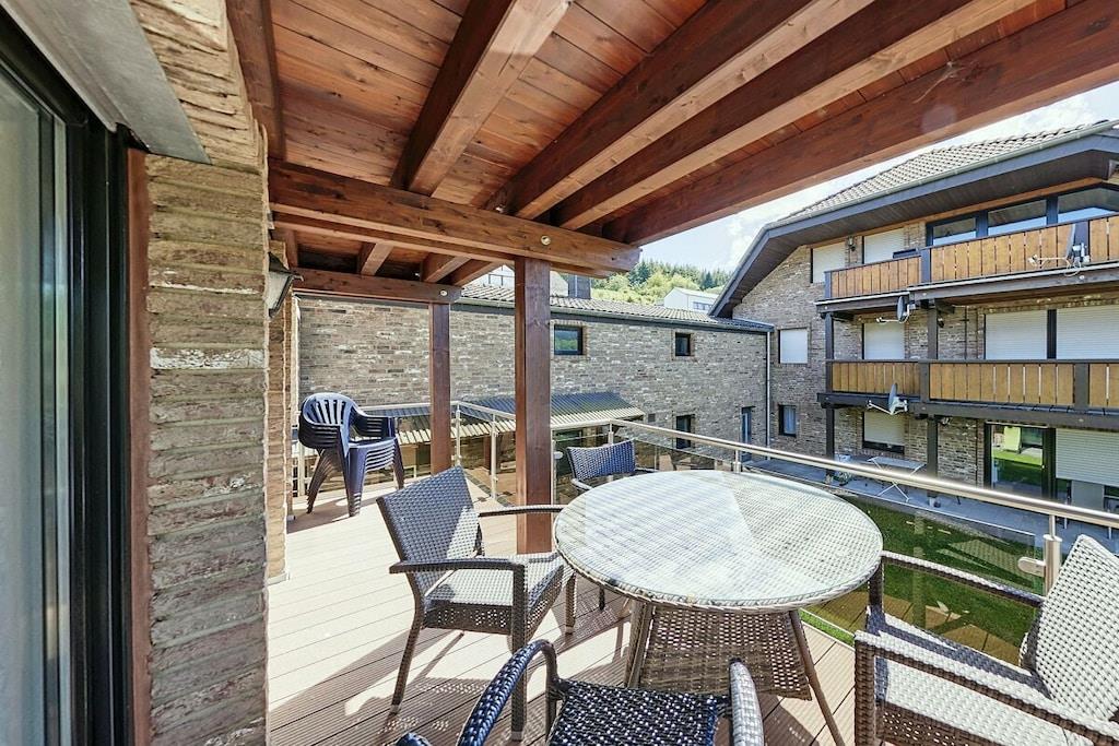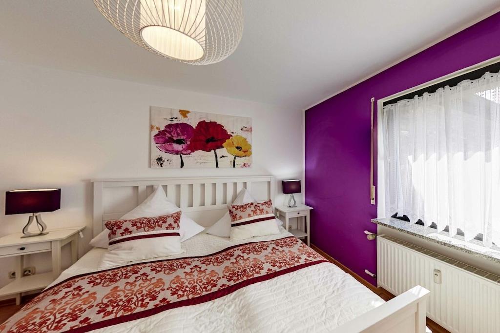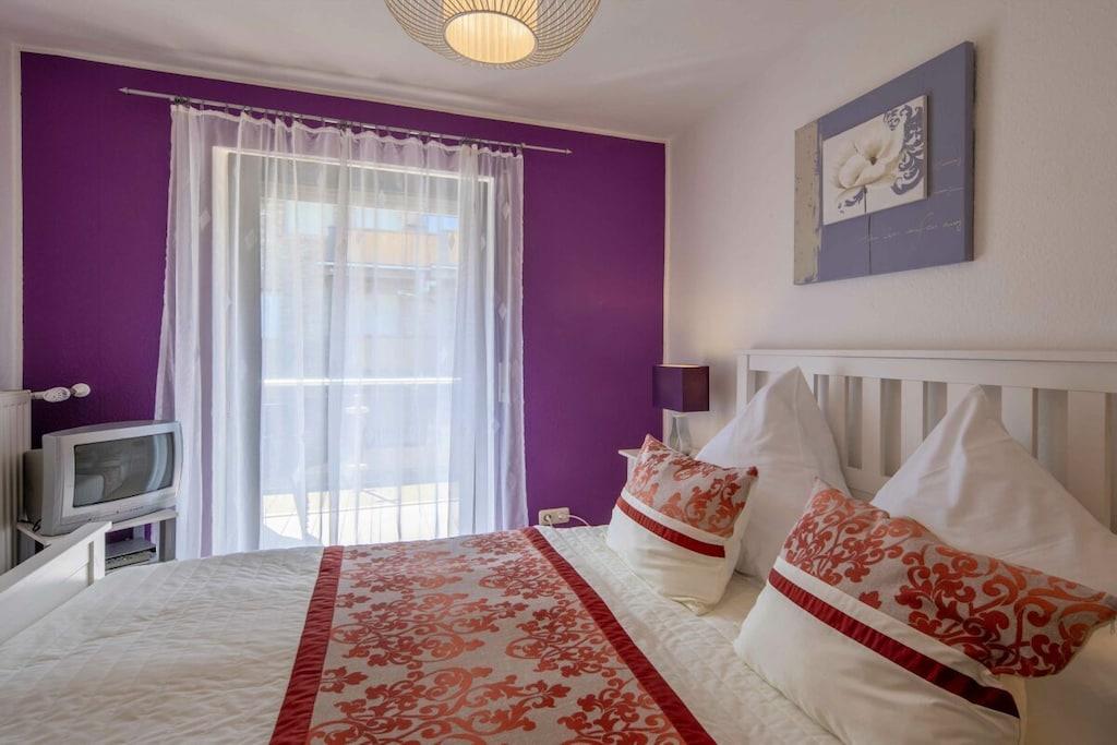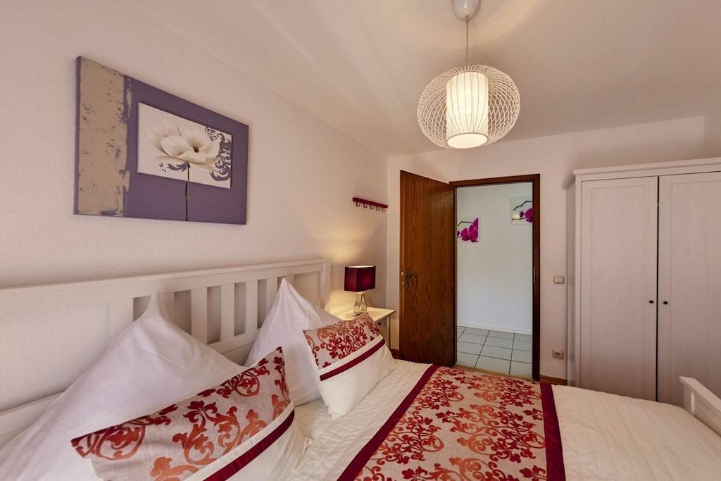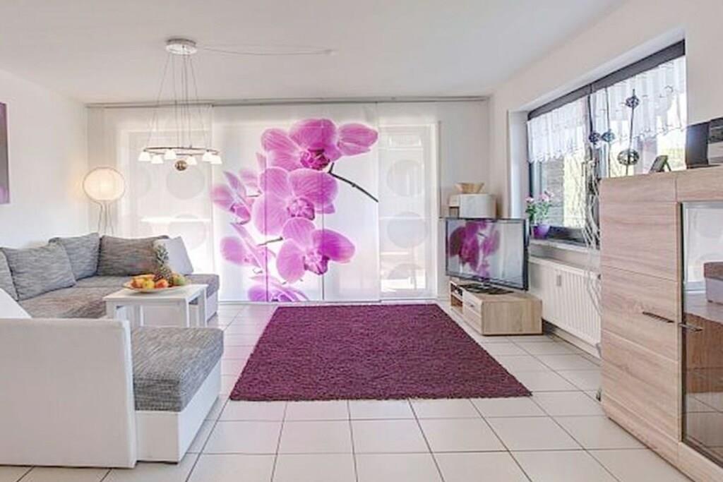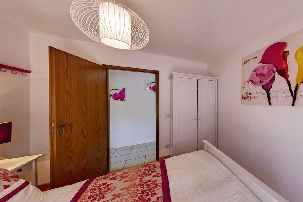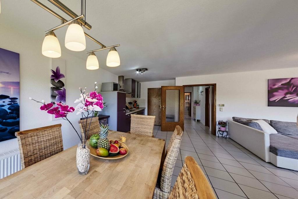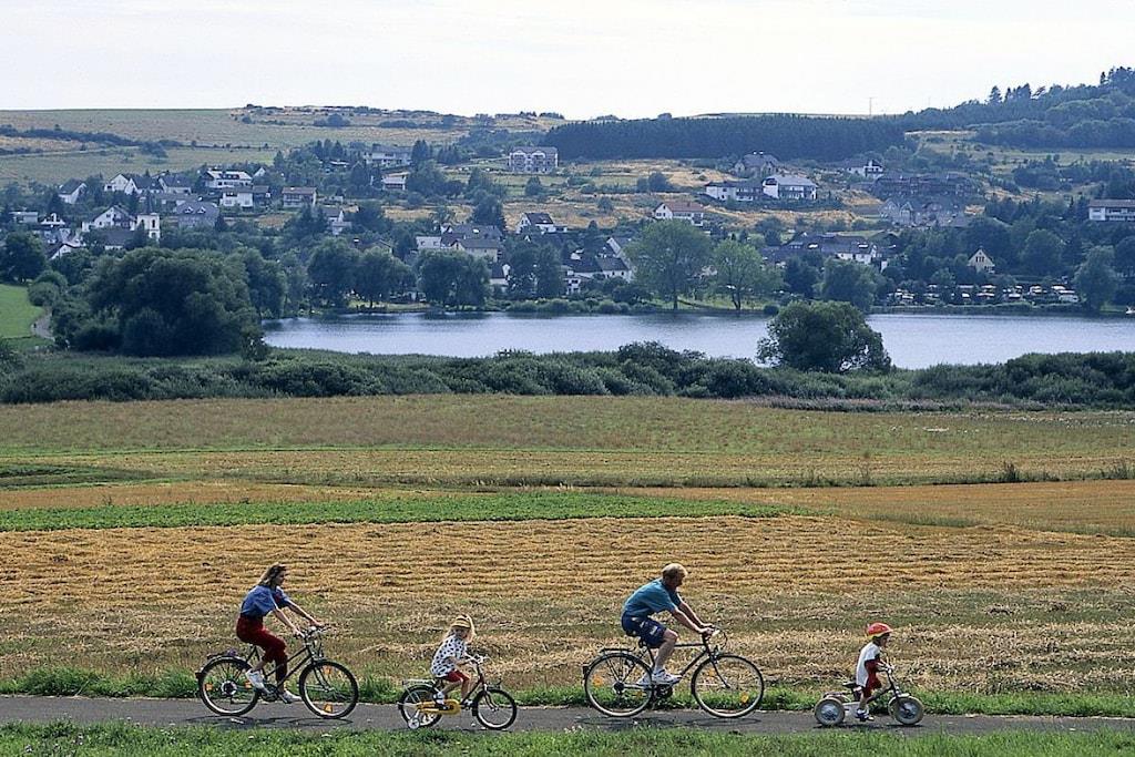 Ferienwohnung Seeblick Diese Ferienwohnung ist hell, modern und elegant eingerichtet. Sie hat einen herrlichen Blick auf den See und den Ort Tal. Bis zum See und dem Ortskern sind es nur wenige Gehminuten. Alle Informationen auch auf unserer Website: www.villa1.de Die Wohnung liegt in einem schönen Wohngebiet. Es handelt sich um eine Nichtraucherwohnung (Raucher bitte auf den überdachten Bakon ausweichen). Die elegante Ferienwohnung verfügt über kostenlosen Internetzugang mit Wlan, Waschmaschine und ein Trockner können im nahe gelegenen Maarberg Resort benutzt werden. Ferienwohnung Seeblick: Die Wohnung ist ca. 76 qm groß und für 2 bis 6 Personen geeignet. Großer Wohn-Schlafraum mit Doppelschlafsofa, Essecke mit See- und Panoramablick, 2 separate Schlafräume, davon ein Schlafraum mit großem Doppelbett (2,00 m x 1,80 m) und ein Schlafraum mit franz. Doppelbett (1,40 m breit), hochwertige Küche mit Spülmaschine, 4 Platten-Ceranfeld, Backofen, Kühlschrank mit Gefrierfach, 2 Kaffeemaschinen: 1 x Kaffeemaschine Sanseo und 1 x Filtermaschine, Abstellraum mit Reinigungsmittel etc. Dusche und WC und Waschtisch, zusätzliches Gäste-WC mit kleinem Waschtisch, Diele, Garderobe, Zentralheizung, Im Wohnraum: Digitalfernsehen mit Flachbildschirm (107 cm, HD-Fernsehen, 2 Satelliten: Astra und Hotbird mit sehr vielen deutschen und internationalen Sendern), Digital-Radio mit vielen deutschen und internationalen Sendern, Die Wohnung verfügt über einen WIFI Internetzugang. Internet / Wlan / Wifi: Kostenlos nutzbar in allen Räumen! DVD-Player, CD-Player, Stereoanlage, Spiele, separater Eingang. Fernseher auch in beiden Schlafzimmern Außenbereich: Großer überdachter Balkon Richtung Westen, ins Tal und Richtung See, mit herrlichem Blick auf den See und den Ort, Gartenmöbel und Esstisch auch auf dem Balkon, Zugang zum Balkon von Wohnzimmer, von Essecke und von dem kleineren Schlafzimmer aus, Parkraum direkt vor dem Hauseingang. Zudem ist eine Garage für Fahrräder oder Motorräder nutzbar. Zur Ausstattung der Wohnung gehören: Mikrowelle, 2 Kaffeemaschinen, Toaster und Wasserkocher. Töpfe und Pfannen sowie Besteck und Geschirr für die höchstmögliche Personenzahl sind selbstverständlich vorhanden. Kinderbett und Hochstuhl können kostenlos bereitgestellt werden. Toilettenpapier ist selbstverständlich vorhanden. Die Wohnung hat eine Zentralheizung und natürlich einen separaten Eingang. Zahlung: Sie können bei uns in folgender Form zahlen: - Per Überweisung im Vorfeld - Per Einzug mit Kreditkarte (Visa, Mastercard) - Per Paypal über unsere e-mail Adresse - Bei kurzfristig getätigten Buchungen können Sie auch vor Ort an unserer Reception im Haupthaus (Maarberg Resort in Schalkenmehren) in bar, mit EC-Karte oder mit der Kreditkarte (Visa, Mastercard) zahlen. Die Anreise kann ab 13 Uhr erfolgen. Die Abreise sollte bis 10.00 Uhr erfolgen. In Einzelfällen können Ausnahmen abgesprochen werden Alle Infos direkt auf unserer website: www.villa1.de