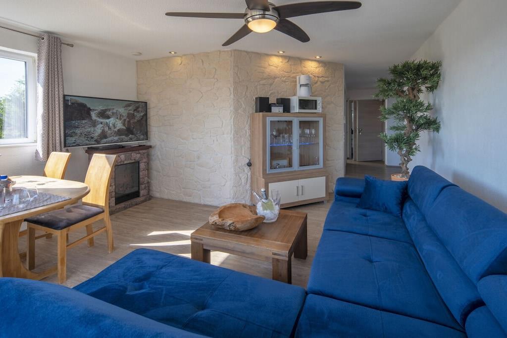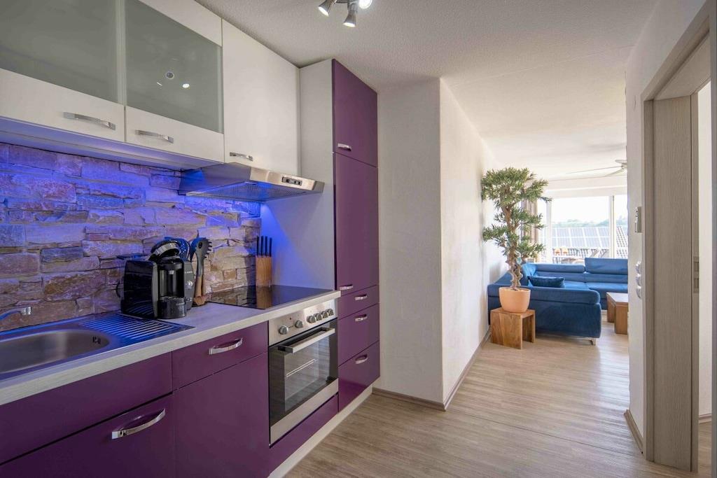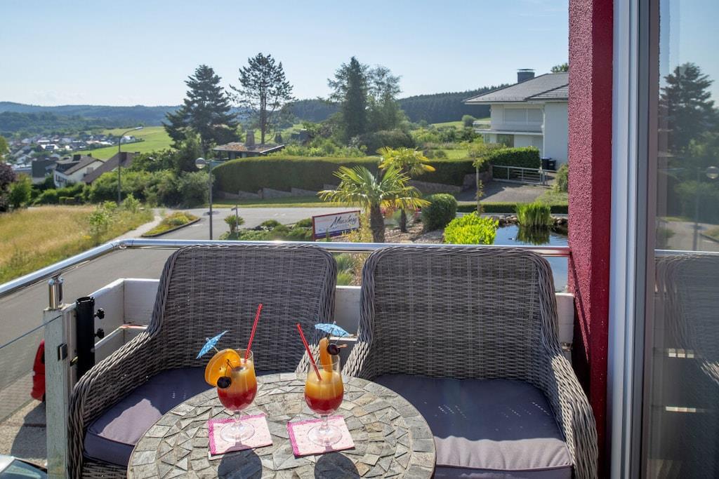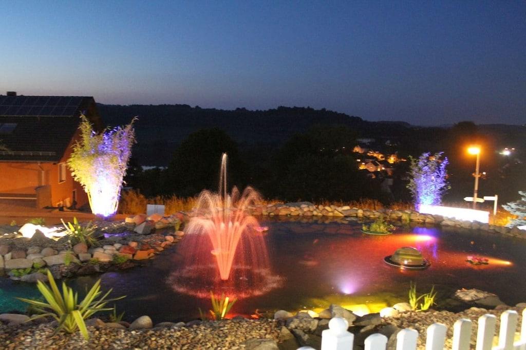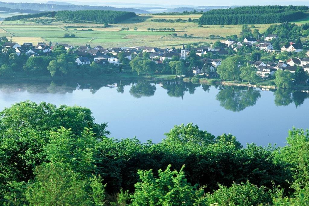 Stilfuld ferielejlighed i lejlighedskomplekset "Maarberg Resort" i Schalkenmehren am See. Med 2-personers spabad! Ikke-ryger lejlighed. Lejlighedskomplekset "Maarberg Resort" er nyrenoveret og istandsat. Det er smukt beliggende i udkanten af Schalkenmehren am See. En rolig beliggenhed på en bjergskråning i udkanten af skoven. Søen og bymidten ligger kun omkring 400 meter væk. Byen byder på gode restauranter, caféer og et shoppingområde. I bymidten Daun, 5 km væk, finder du også mange butikker og supermarkeder. Fra nogle af lejlighederne i Maarberg Resort kan du nyde en smuk udsigt over søen. Hver lejlighed har Wi-Fi. Internet/Wi-Fi: Gratis brug i alle værelser! I bygningen: Lobby med reception, siddepladser og spil (tilgængelige til brug). Den nye sauna og jacuzzi er placeret i kælderen i "Maarberg Resort" (fri brug). Du kan også bruge disse faciliteter alene (aflåselige). Der er også et rum i kælderen med vaskemaskine, tørretumbler, strygejern og strygebræt. I receptionshallen finder du vandrekort og postkort samt gratis information om de mange udflugtsmål og fritidsaktiviteter i regionen. Der er også et køleskab med drikkevarer i receptionshallen, hvor drikkevarer kan købes på betingelse af køb. Udendørsområdet vil glæde dig! To smukt og udsmykkede pryddamme med koi og andre fisk, to vandfald, to bække og et velholdt dekorativt grusområde er en del af ejendommen. Der er også skildpadder i den øvre dam. Sid komfortabelt med en kaffe eller cocktail på balkonen eller terrassen og se på fiskene og skildpadderne. Eller kig ned i dalen ved søen. Yderligere udendørsområder inkluderer rigelig parkering og en cykelparkering. En grillplads med udsigt over søen er placeret bag huset. Maarhöhe Ferielejlighed i Maarberg Resort: Elegant, helt nyindrettet ferielejlighed til 2 til 6 personer. Cirka 54 kvm boligareal, balkon ud mod søen og den nederste pryddamme med en vidunderlig panoramaudsigt over søen, de to pryddamme, vandfaldene, bække og det dekorative grusområde. Maarhöhe ferielejlighed ligger på øverste etage (1 trappe op). I den smukke stue finder du et nyt sofasæt, der kan laves om til en seng, og et stort 127 cm HD/3D-tv af den nyeste generation. Du kan vælge mellem cirka 3.000 forskellige tv- og radiokanaler på mange sprog fra 4 forskellige satellitter. Der er også en 3D Blu-ray-afspiller og DVD-afspiller. Et musikanlæg med radio, CD osv. er også placeret i lejligheden. Internetadgang med Wi-Fi er tilgængelig. Den lyse og indbydende lejlighed udstråler et naturligt præg med masser af træ og sten. Den elektriske pejs og en elegant loftsventilator skaber også en særlig, hyggelig atmosfære. Dette skaber en særlig feriestemning, selv på kolde og våde dage. Dette er en ikke-ryger lejlighed (rygere bedes benytte balkonen eller udendørsområdet). Det nye køkken har et 4-brænder komfur (keramisk kogeplade) og ovn, opvaskemaskine, køleskab med fryser, mikrobølgeovn, 2 kaffemaskiner (filter- og pod-maskine, Bosch Tassimo). Brødrister, elkedel osv. Gryder og pander samt bestik og service til det maksimale antal personer er naturligvis til rådighed. En barneseng og højstol kan stilles til rådighed gratis. Spiseområdet er egnet til 4 personer. Lejligheden har 2 separate soveværelser med boxmadras af høj kvalitet (180 cm x 200 cm og 140 cm x 200 cm). Intet står i vejen for en god nats søvn. Det andet soveværelse har en 140 cm bred fransk dobbeltseng. Du kan også nyde udsigten over søen fra det større soveværelse! Der er også spejle i fuld længde i soveværelserne. Stuen har en ny dobbelt sovesofa for ekstra soveplads. Badeværelset har spabad! Det lyse badeværelse har spabad. Forkæl dig selv i spabadet. Badeværelset er udstyret med satellit-tv med dvd-afspiller. Der er også radio med USB-port. Specielle badesalte til spabadet stilles til rådighed gratis. Spabadet har et brusetilbehør med regnbruser, sidemassagedyser og LED-lys. De blå LED-gulvlamper i hele badeværelset skaber en vidunderlig atmosfære. Der er et stort, oplyst LED-spejl, en hotelhårtørrer og en badevægt. Moderne varme med håndklædetørrer. Lejligheden har en dejlig balkon med liggestole og et cocktail- eller sofabord. Hvis du gerne vil nyde et rigtig godt måltid på balkonen, finder du et andet spisebord, der kan foldes ned til hver etage.