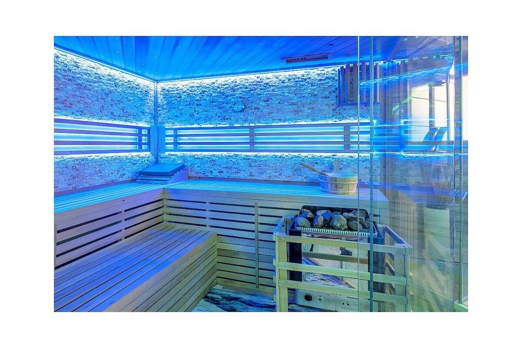 Kælderetage: (loungerum(, , sauna, Tyrkisk bad, hottub)) , , , , , entre(), Stue(, , , , , , bibliotek, enkeltsovesofa, Fjernsyn, Fjernsyn, spisebord, pejs, kakkelovn, DVD-afspiller, Blu-ray afspiller, radio, CD-afspiller, stereoanlæg, tremmeseng, barnestol), Køkken(, tekøkken, spisebord, kogeplade, elkedel, brødrister, komfur, kaffemaskine, ovn, mikrobølgeovn, opvaskemaskine , køleskab, fryser, Foodprocessor), åbent køkken, Stue/soveværelse(enkeltsovesofa), stue / spisestue(Fjernsyn), soveværelse(, enkeltsovesofa, dobbeltseng, dobbeltseng, tremmeseng, barneseng), soveværelse(, enkeltsovesofa, dobbeltseng, dobbeltseng, tremmeseng, barneseng), badeværelse(, , toilet, badekar, hottub, bruser, håndvask, føntørrer), Internetadgang, Internetadgang, Førstehjælp, spilcomputer, tørretumbler, vaskemaskine, balkon(, havemøbler), varme, terrasse(, Grill center, grill, havemøbler, solstole, dam, Gyngestativ), have(Grill center, Græsplæne, havemøbler, solstole, dam), parkering, strygebræt, strygejern, tørreskab, Vaskeripakke mod et gebyr, telefon