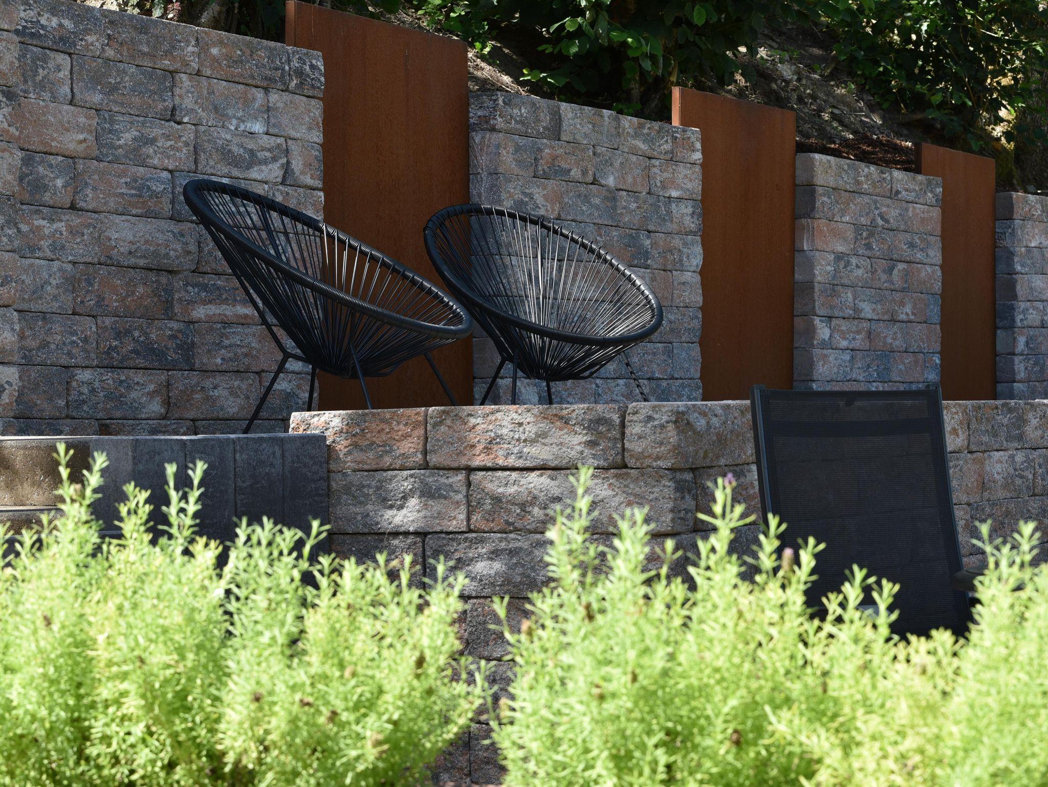 • Terrasse mit Liegestühlen im Garten