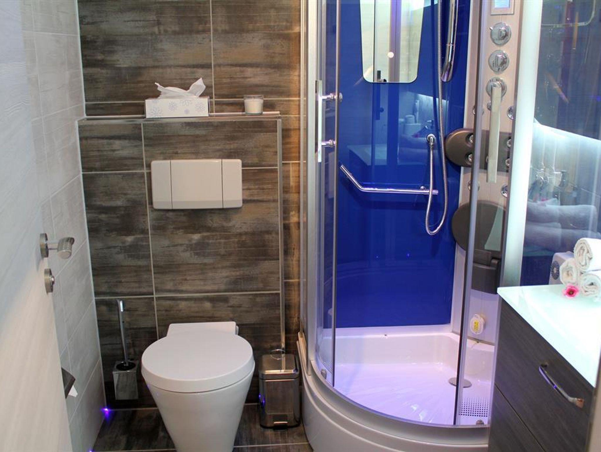 Es gibt Whirlpools, Dampfduschen, TV in den Bädern, LED Bodenbeleuchtung etc.