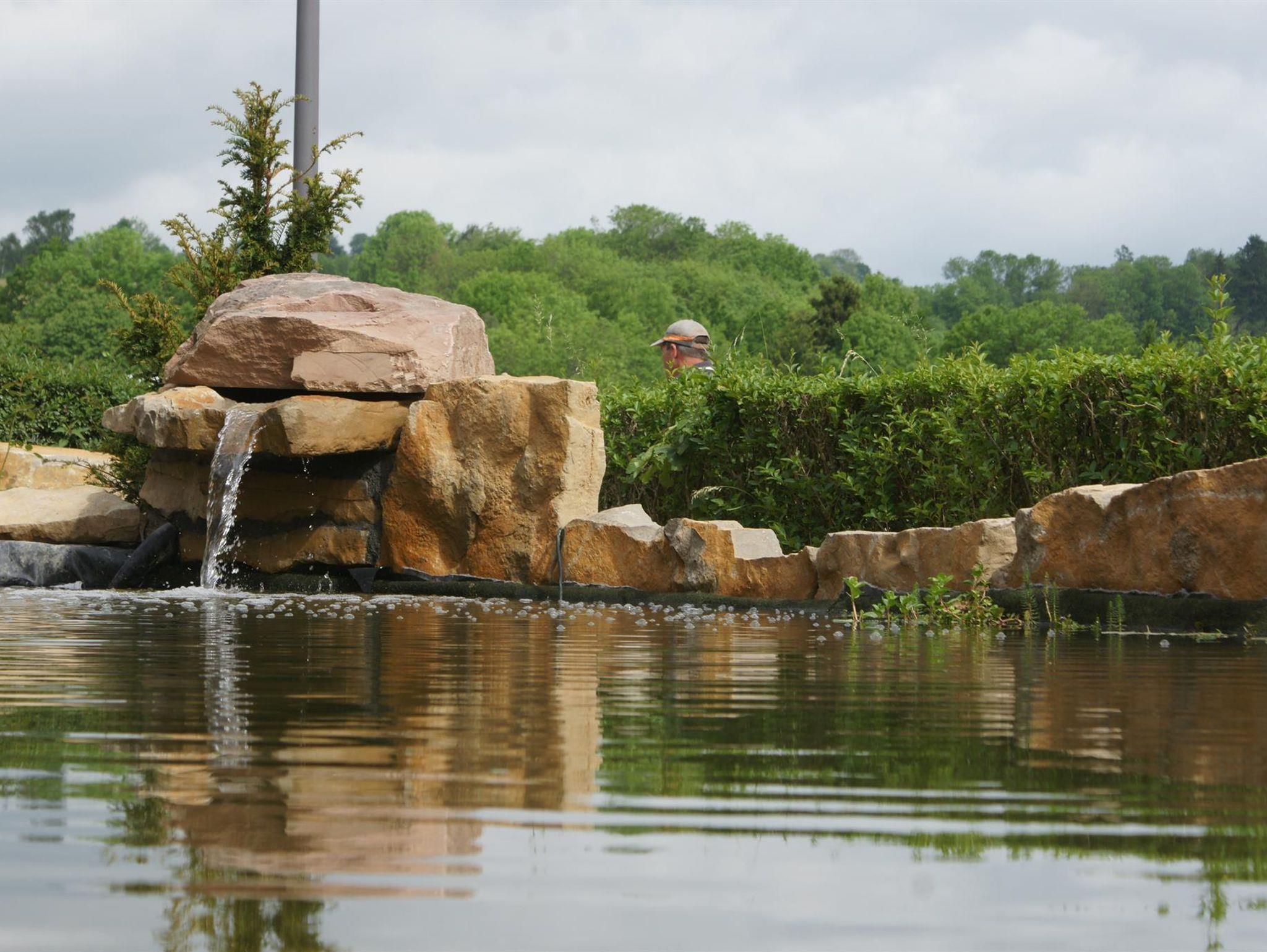 Ein wundervoller und aufwendig angelegter Zierteich mit Kois und anderen Fischen, 2 Wasserfällen und einem Bachlauf gehört zur Anlage.