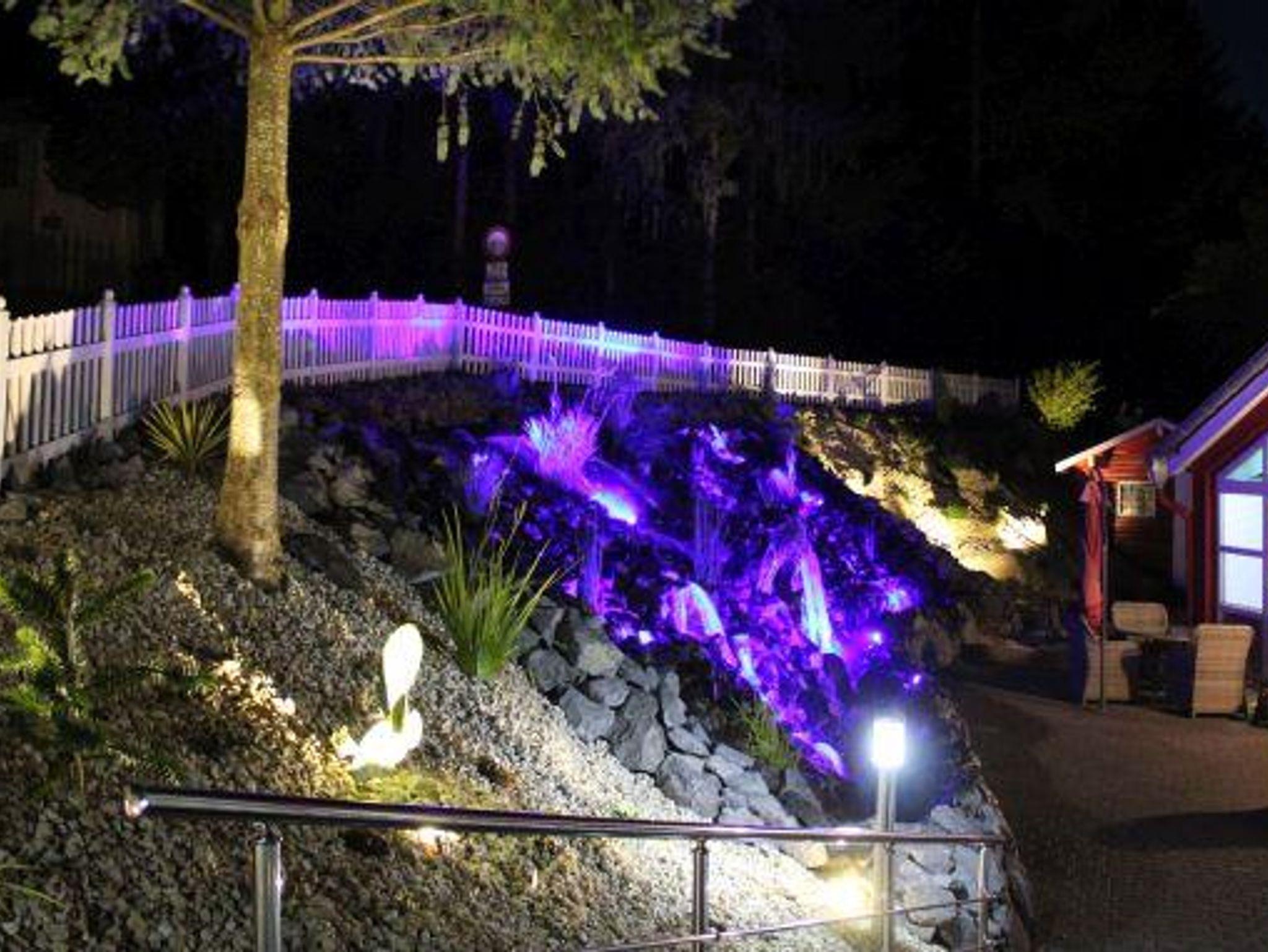 Zwei wundervoll und aufwendig angelegte Zierteiche mit Kois und anderen Fischen, 2 Wasserfälle, 2 Bachläufe und eine gepflegte Zierkiesanlage gehören zur Anlage. Die Aussenanlagen sind abends romantisch angestrahlt. In den Teichen befinden sich auch Schildkröten. Sitzen Sie gemütlich bei einem Kaffee oder einem Cocktail auf dem Balkon oder der Terrasse und schauen Sie den Fischen und den Schildkröten zu. Oder blicken Sie ins Tal auf den See.