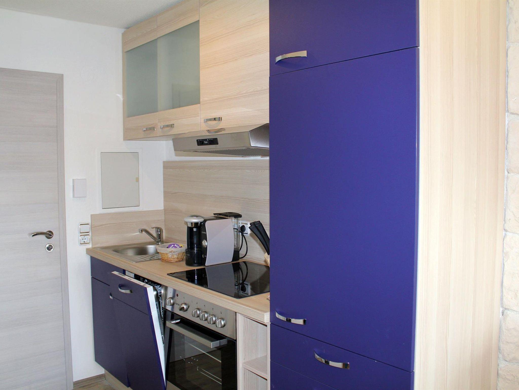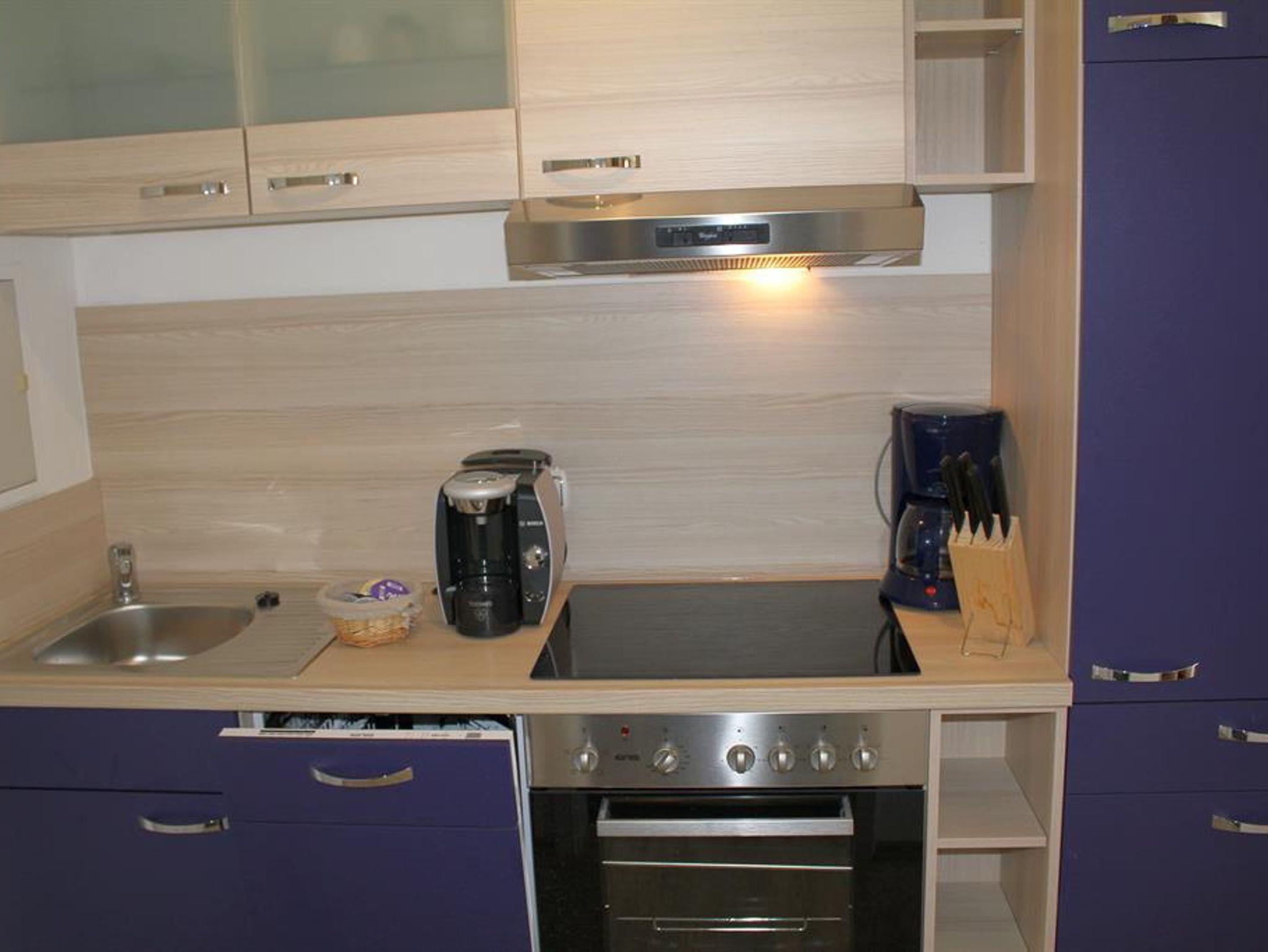 Die neue Einbauküche hat einen 4 Plattenherd (Ceranfeld) und Backofen, Spülmaschine, Kühlschrank mit Gefrierfach, Mikrowelle, 2 Kaffeemaschinen (Filter und Pad Maschine, Bosch-Tassimo). Toaster, Wasserkocher usw. Töpfe und Pfannen sowie Besteck und Geschirr für die höchstmögliche Personenzahl sind selbstverständlich vorhanden.