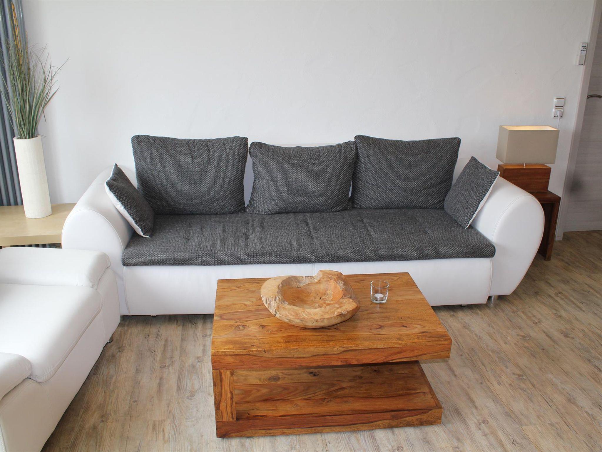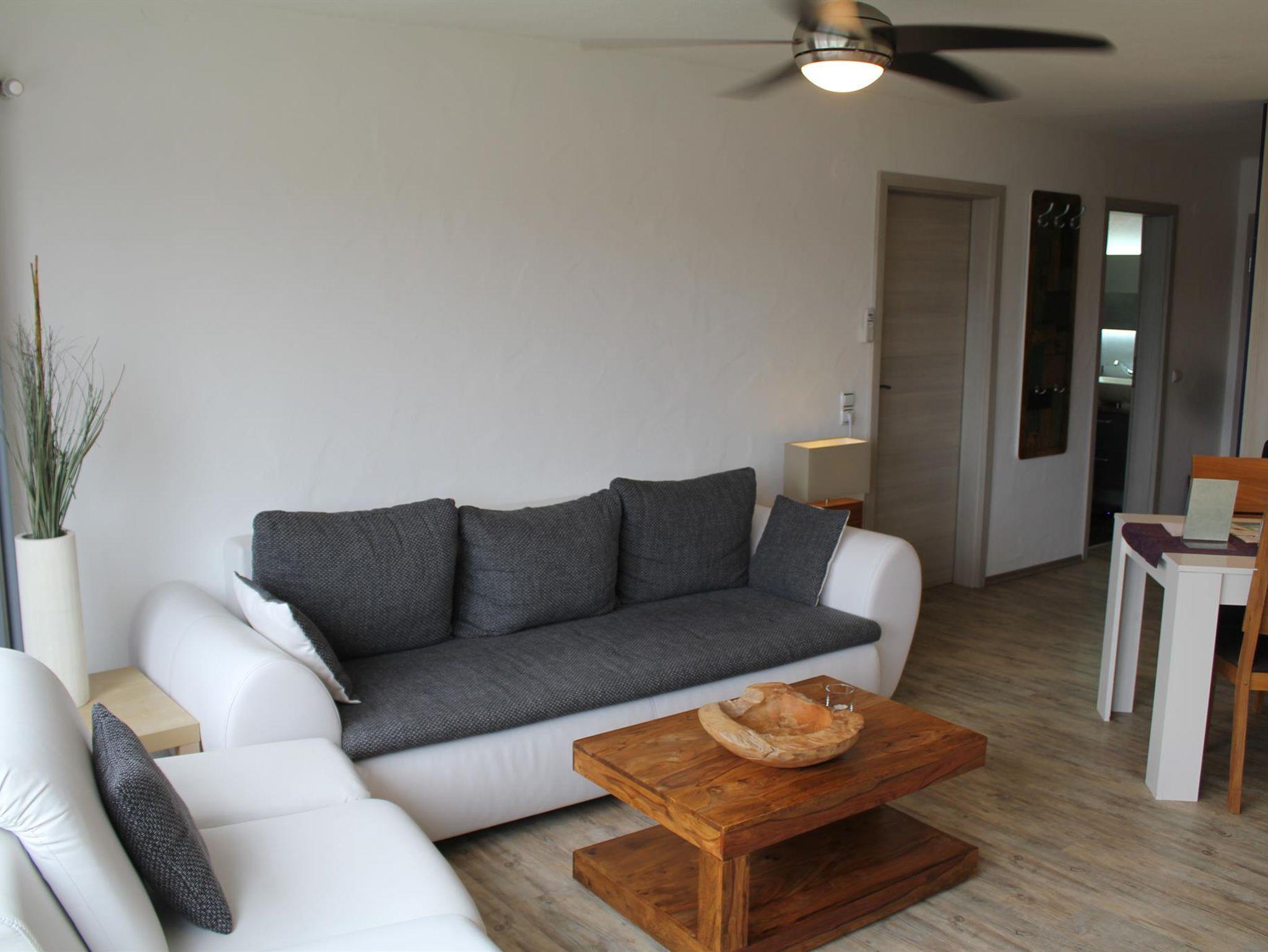 Im schönen Wohnraum finden Sie eine neue Sofagarnitur mit Bettfunktion und einen großen, 127 cm HD/3D Fernseher. Sie haben eine grosse Auswahl deutscher u. internationaler Fernseh- und Radiosender (4 verschiedenen Satelliten).
