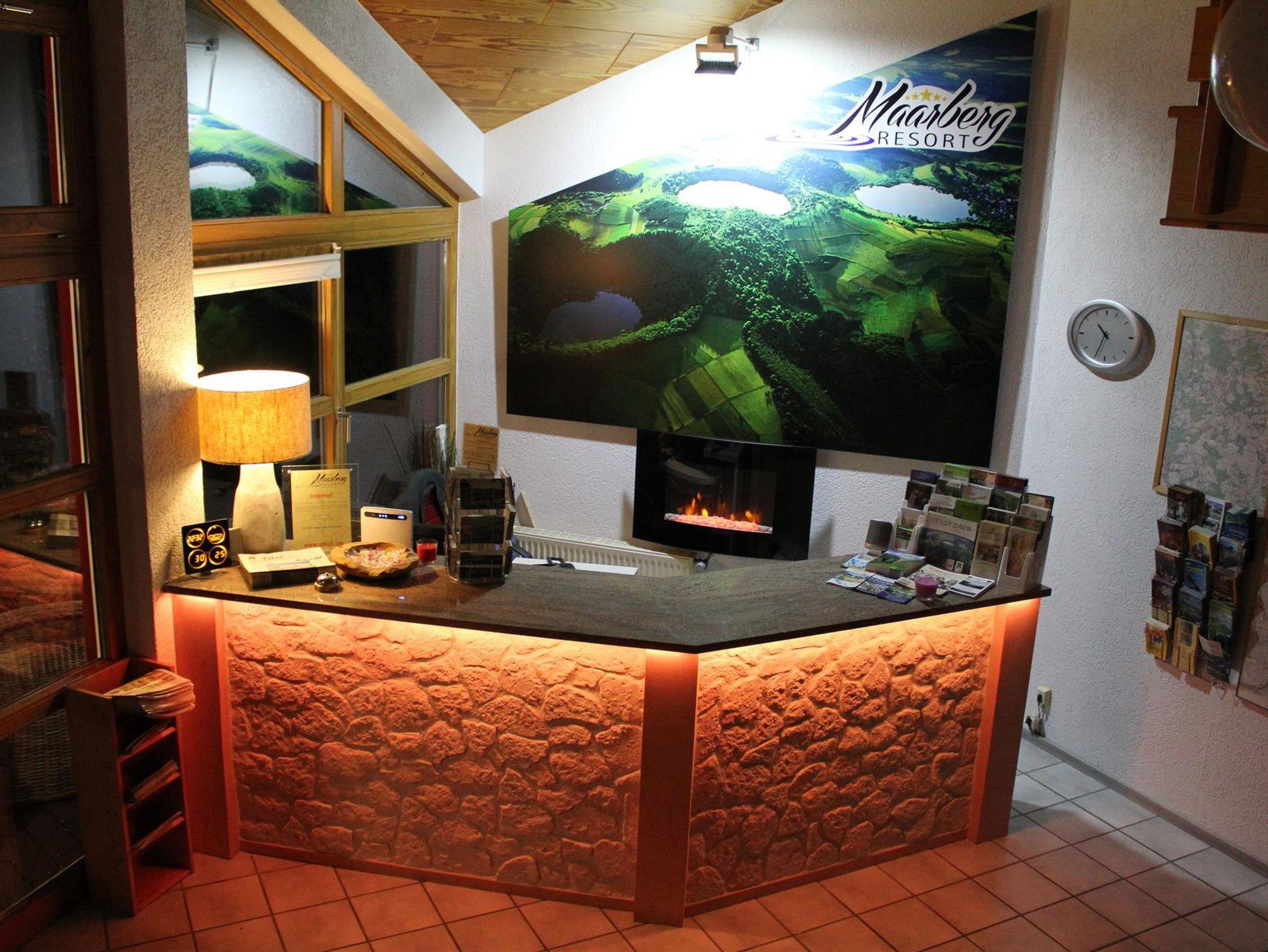 Im Haus: Empfangshalle mit Reception. Sauna und Jacuzzi (Whirlpool) finden Sie im Untergeschoss des Maarberg Resorts. Sie können die Sauna auch alleine nutzen (abschließbar), Sauna neu und neu gestaltet. Zudem im Untergeschoss ein Raum mit Waschmaschine, Wäschetrockner, Bügeleisen und Bügelbrett.