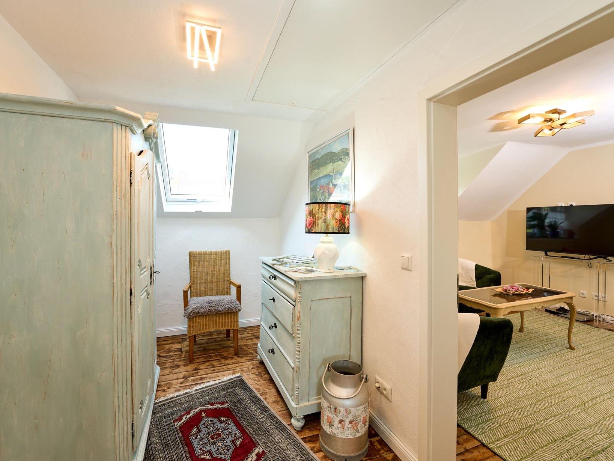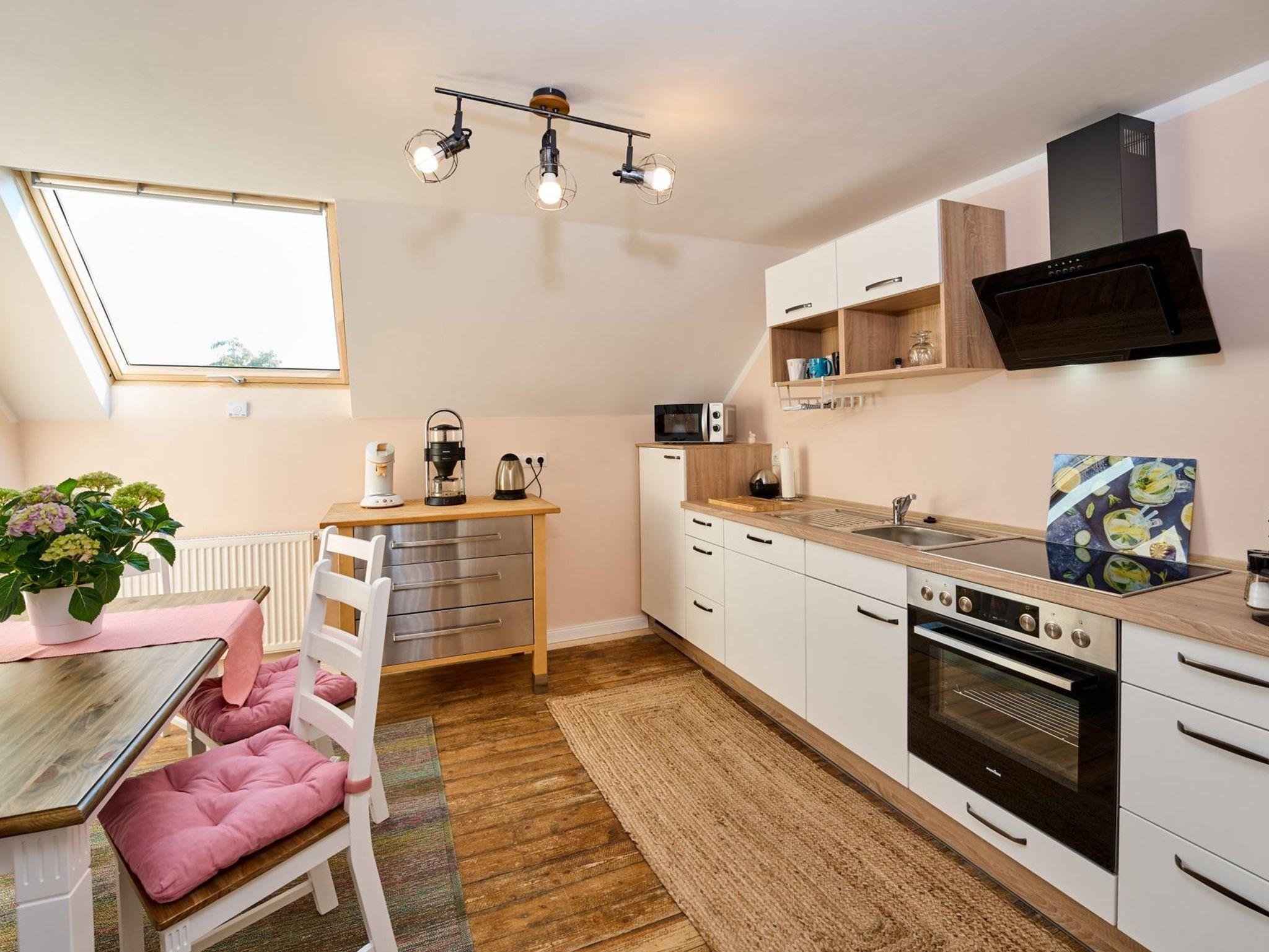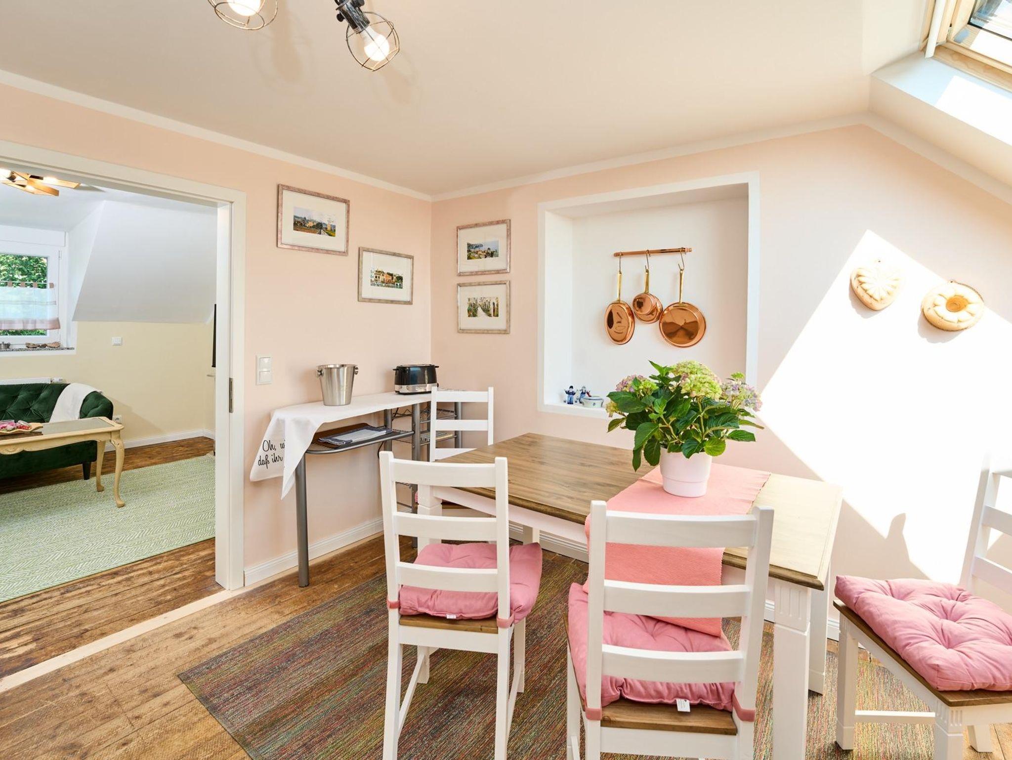 Die großzügige und gemütliche Ferienwohnung mit ca. 64m² Wohnfläche ist 2023 komplett neu entstanden und befindet sich im ersten OG. Sie umfasst einen Wohnraum, Schlafzimmer, Küche und Bad.